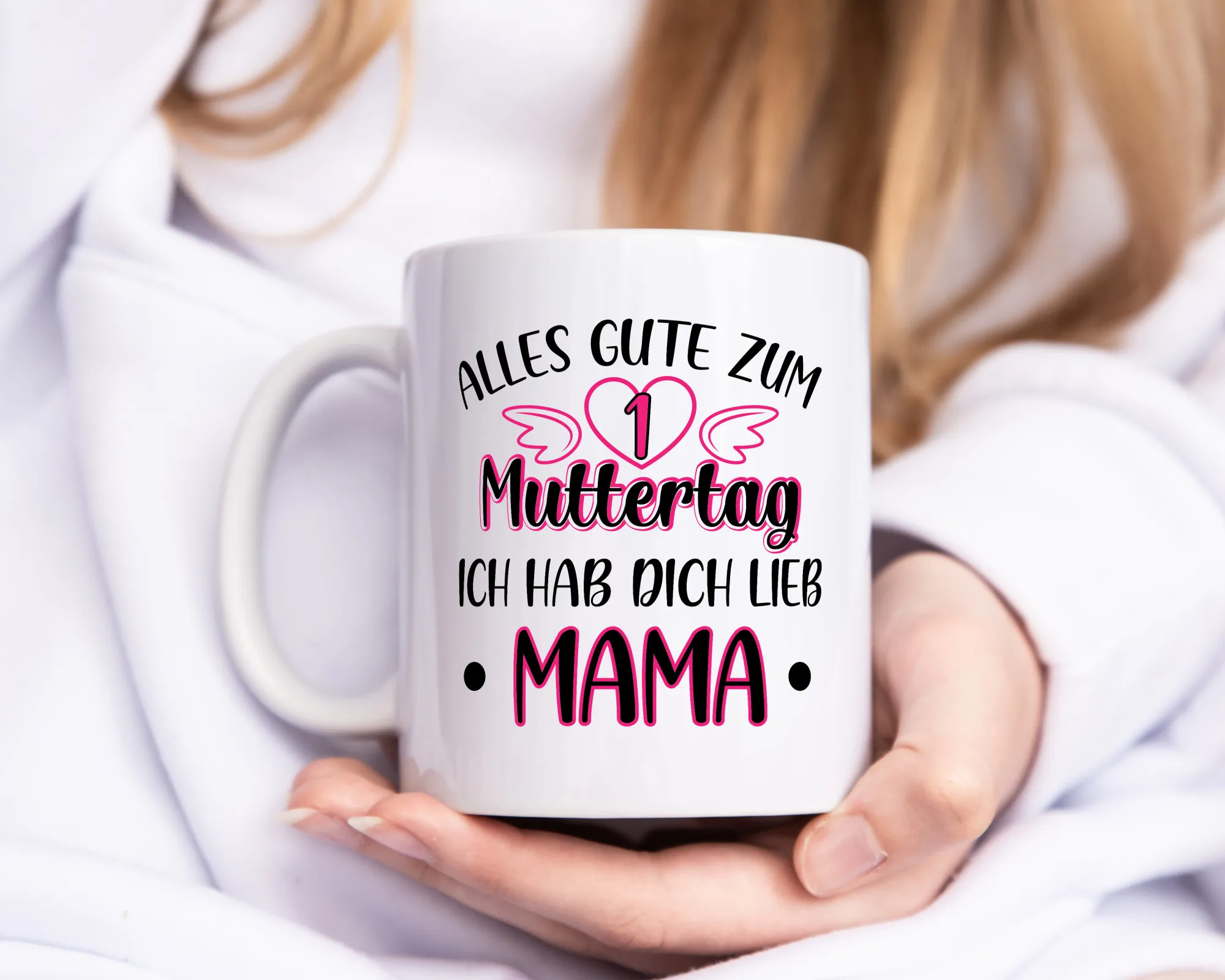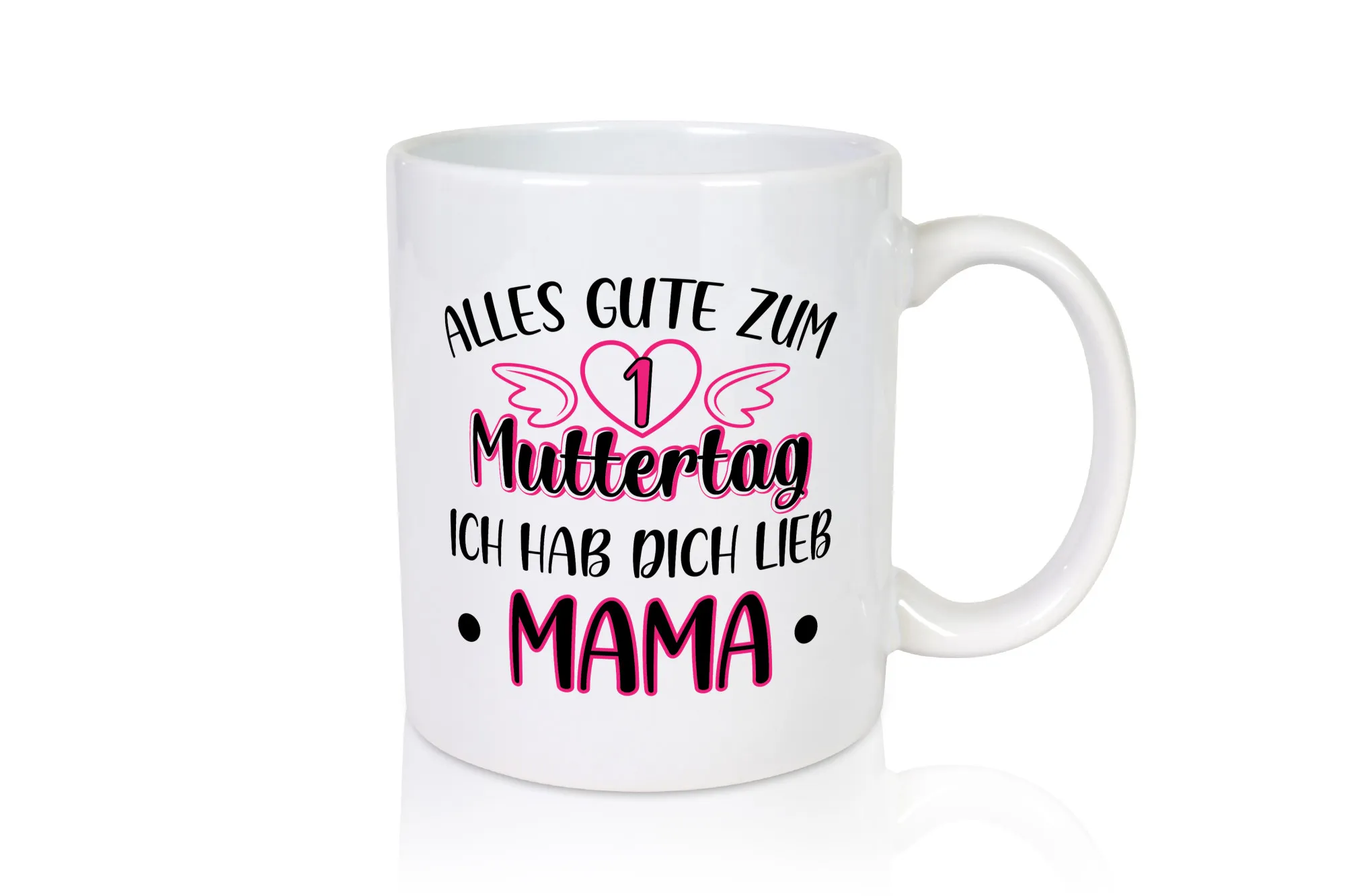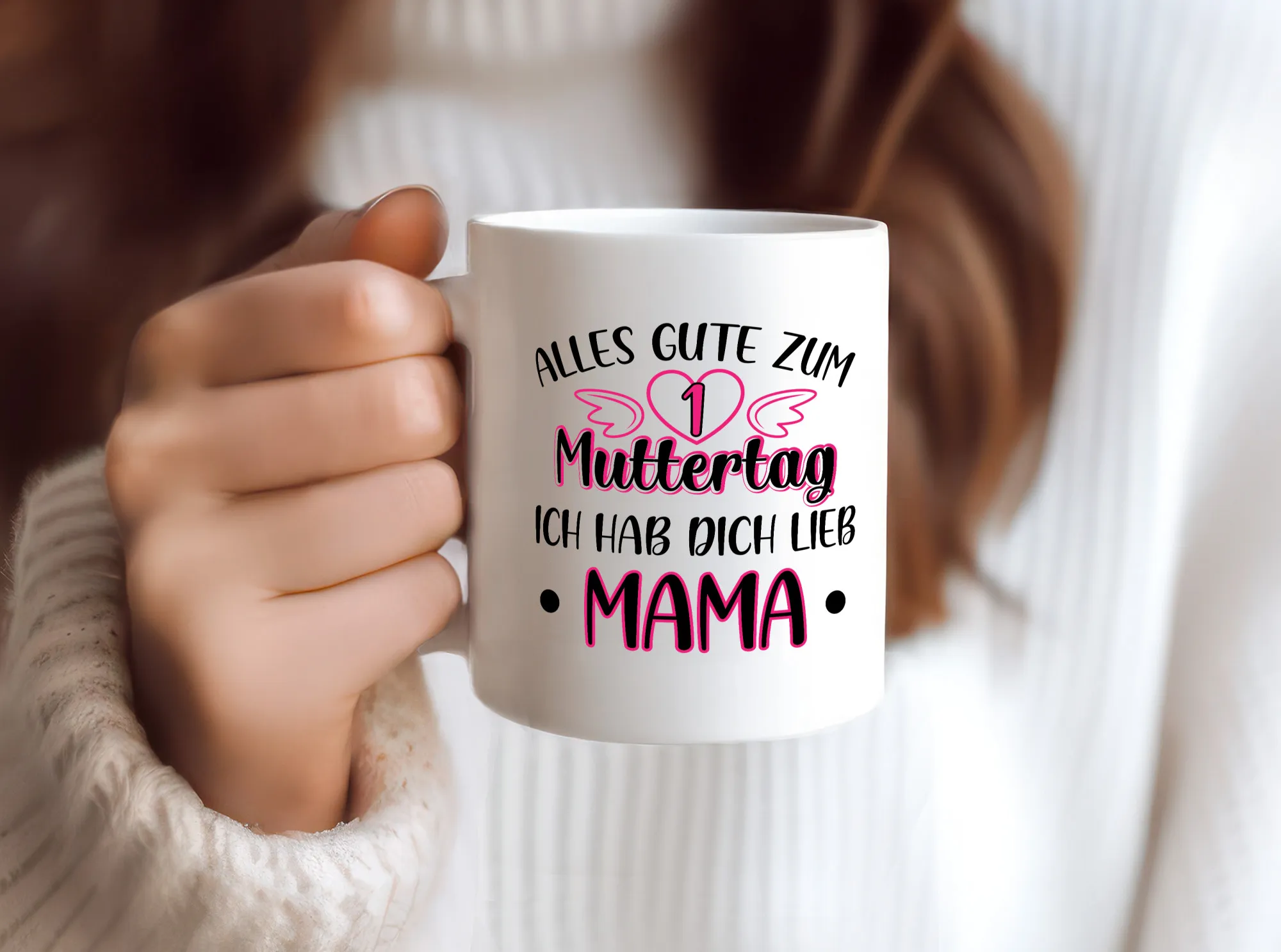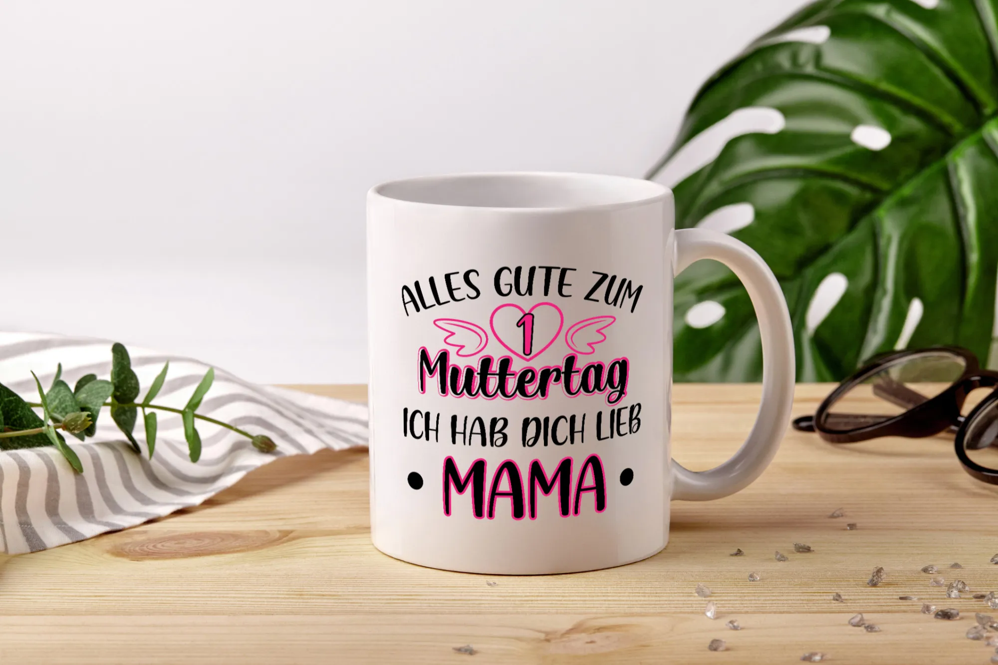 1. Muttertag, hab dich lieb, Mama | Herz | Flügel – Tasse Weiß – Kaffeetasse / Geschenk / Familie