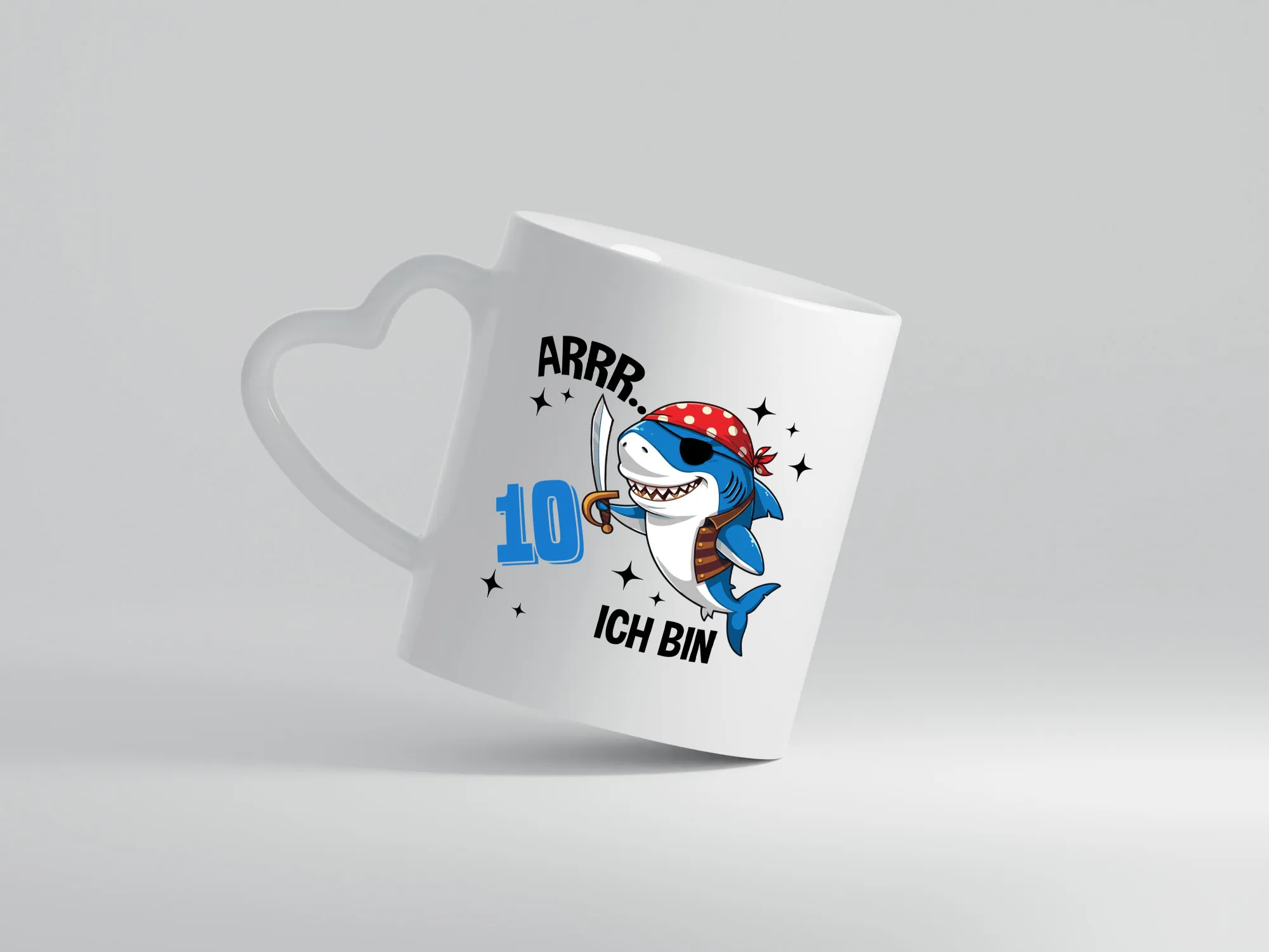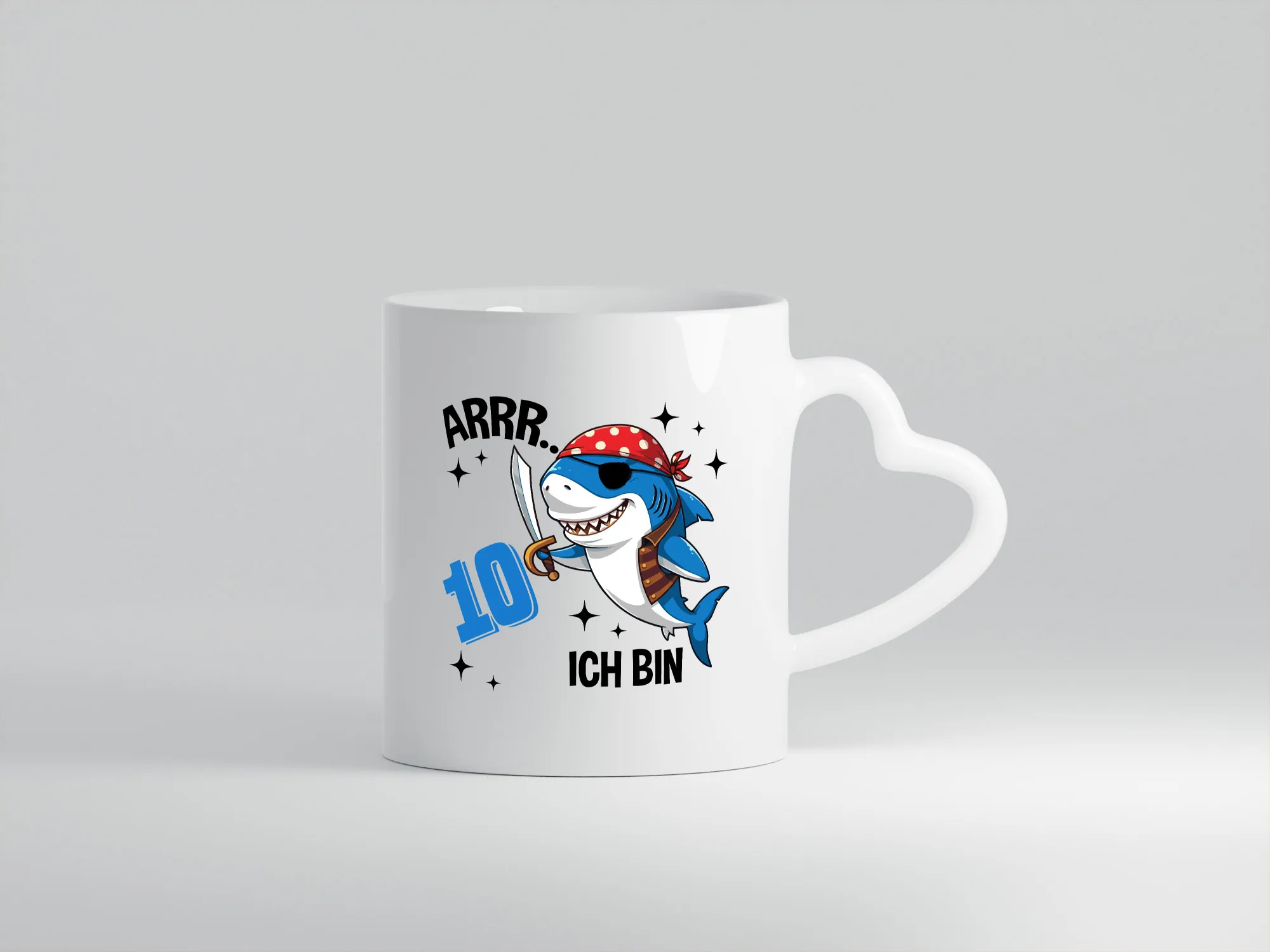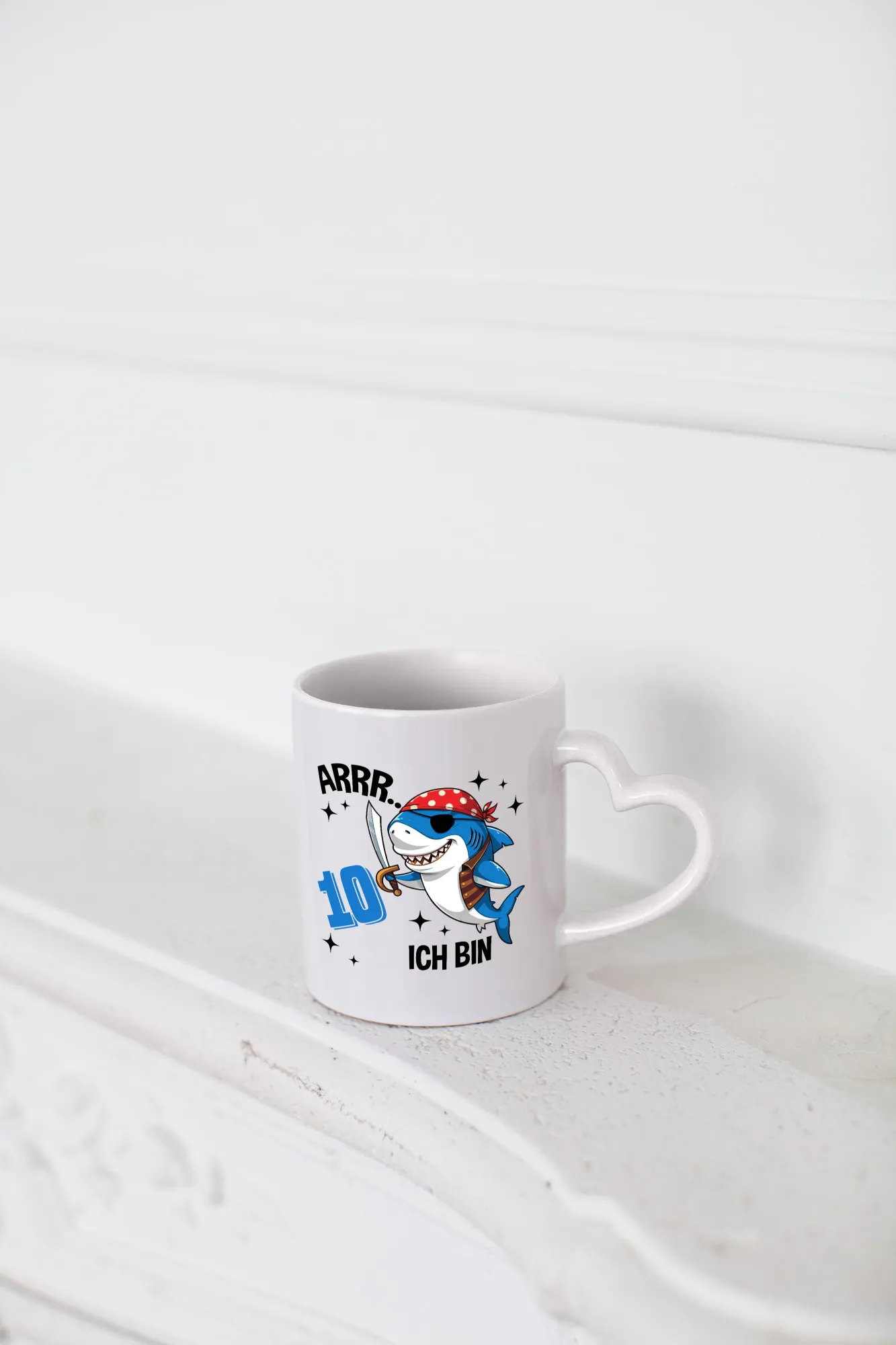 10. Geburtstag | 10 Jahre Arr Pirat | Hai | Piraten – Herzhenkel Tasse – Kaffeetasse / Geschenk / Familie