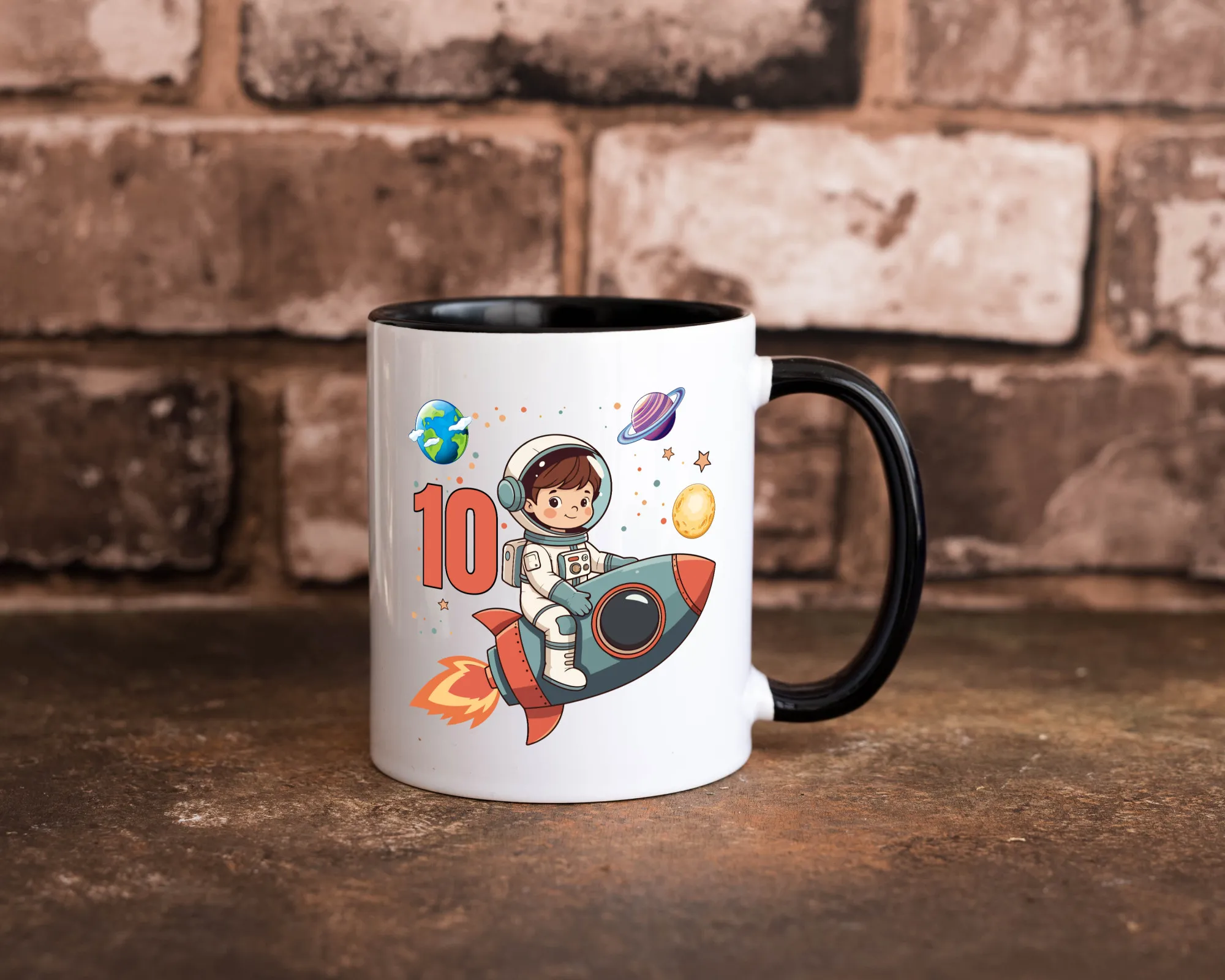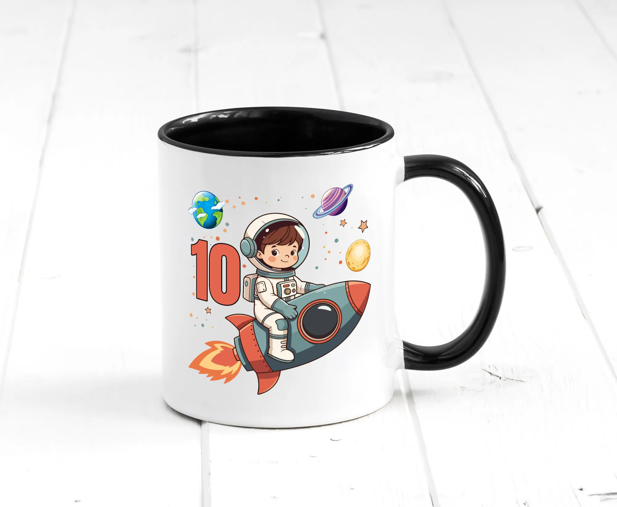 10. Geburtstag | 10 Jahre | Astronaut | Weltraum Farbige Tasse – Kaffeetasse / Geschenk / Familie