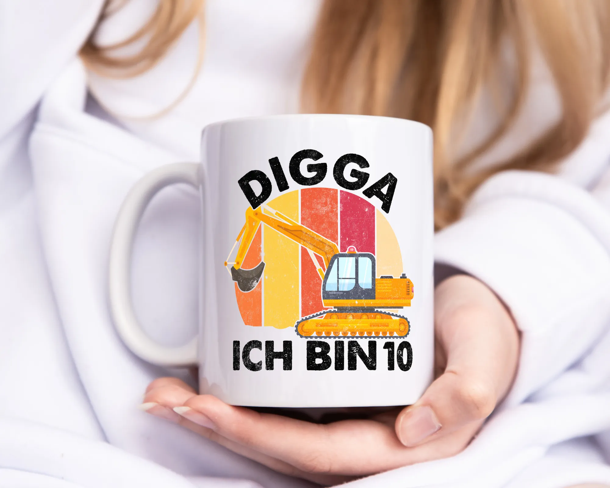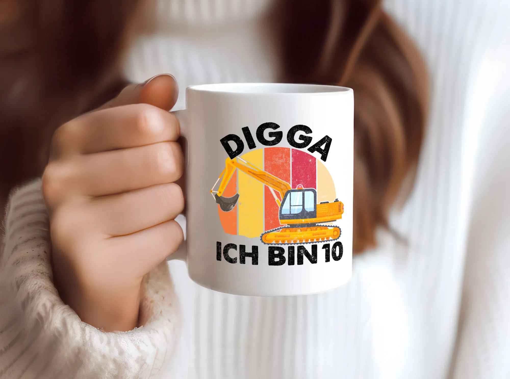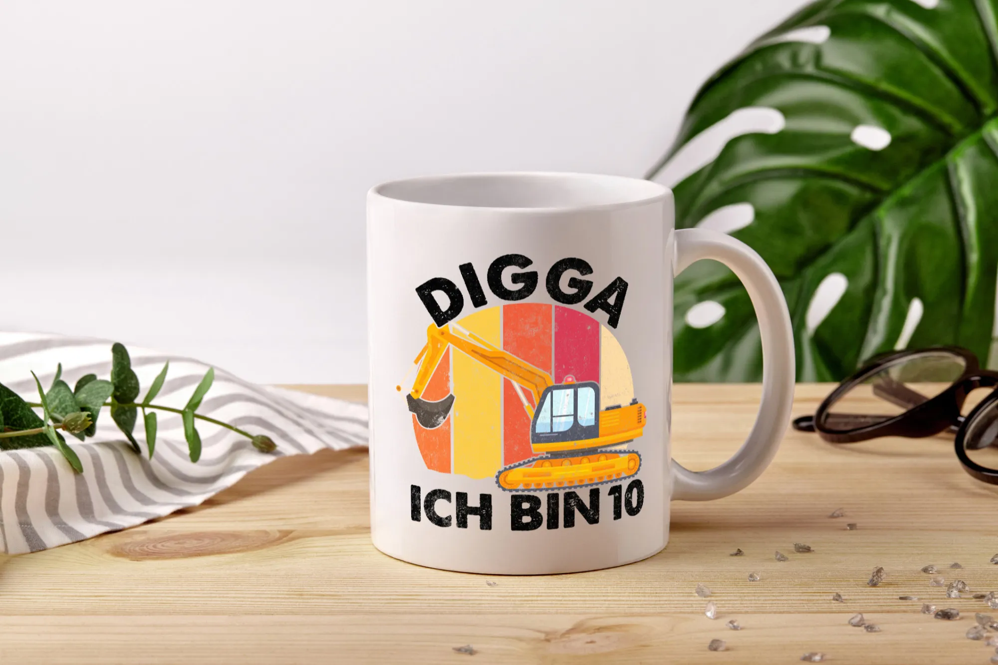 10. Geburtstag | 10 Jahre | Bagger | Digga – Tasse Weiß – Kaffeetasse / Geschenk / Familie