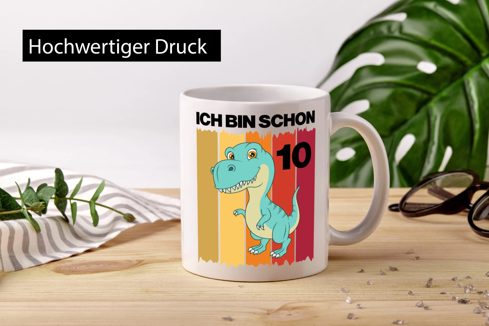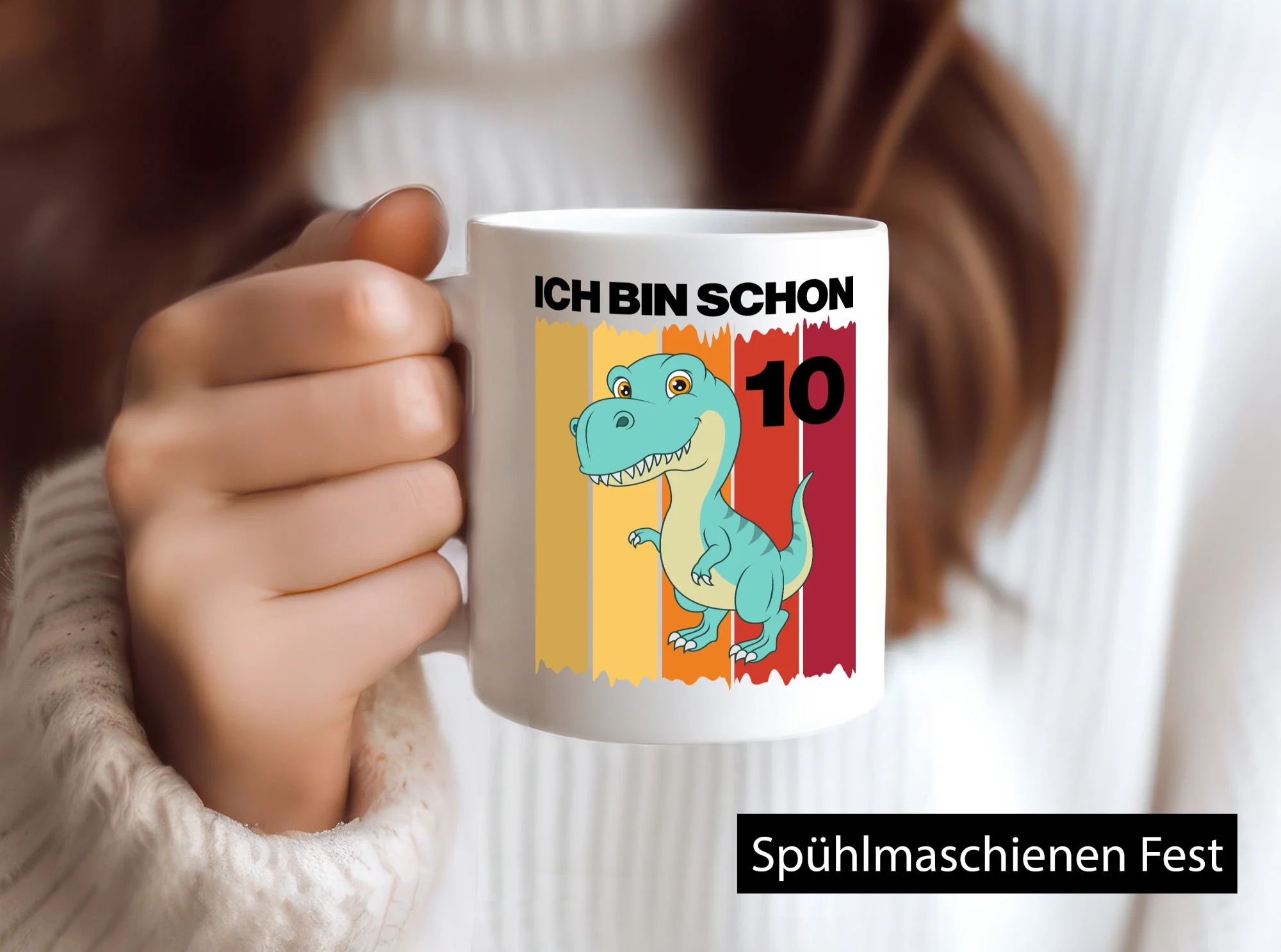 10. Geburtstag | 10 Jahre | Dinosaurier – Tasse Weiß – Kaffeetasse / Geschenk / Familie