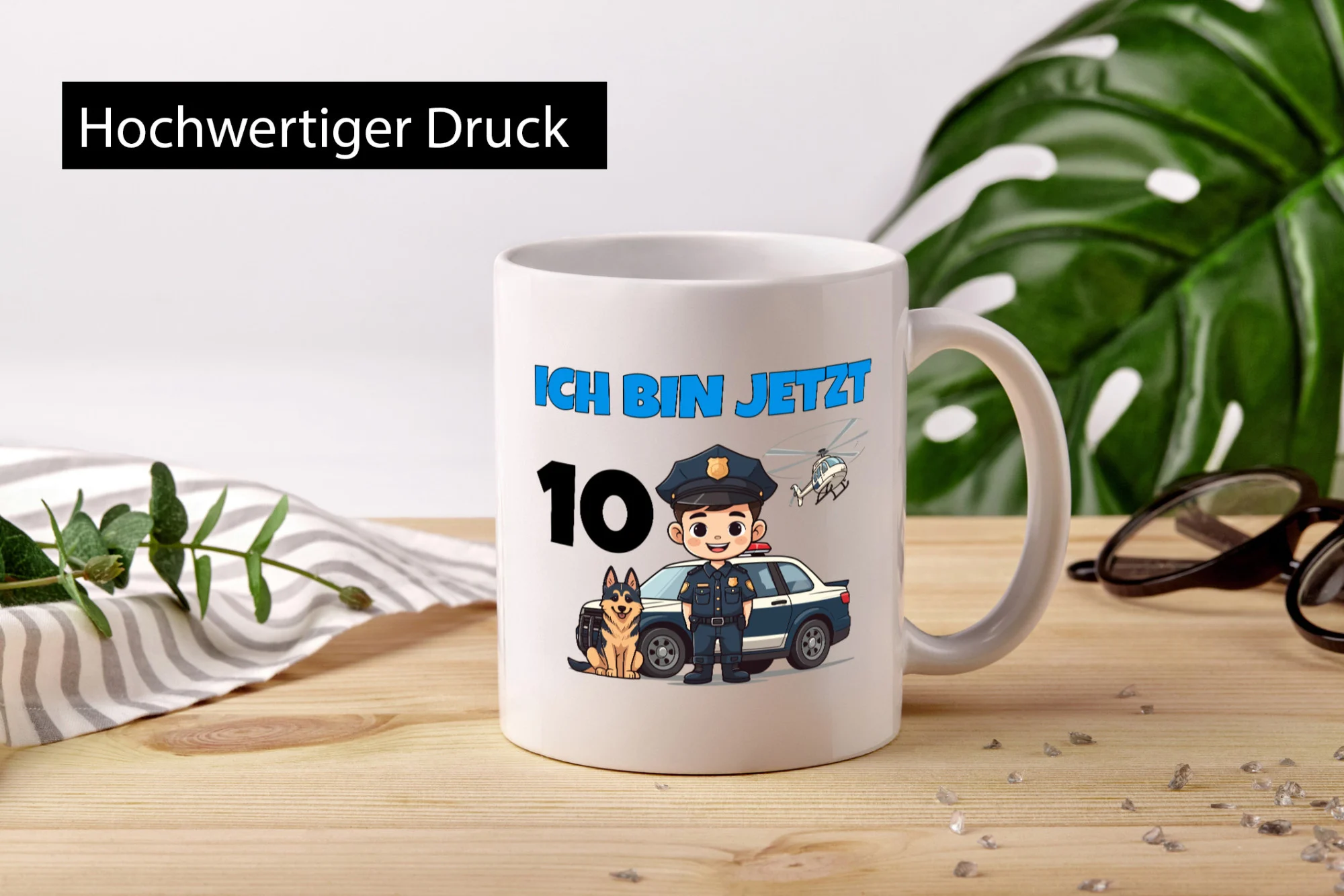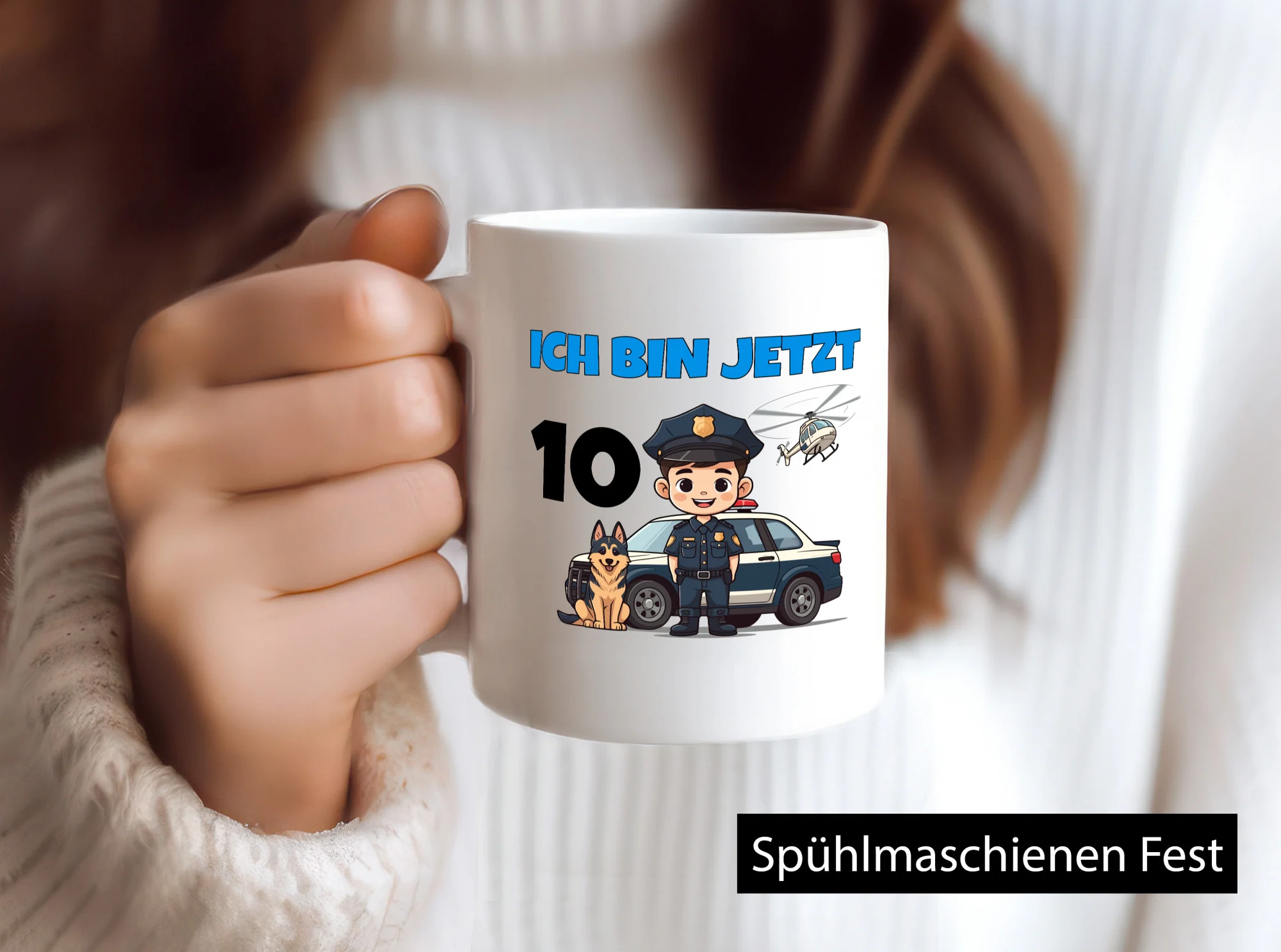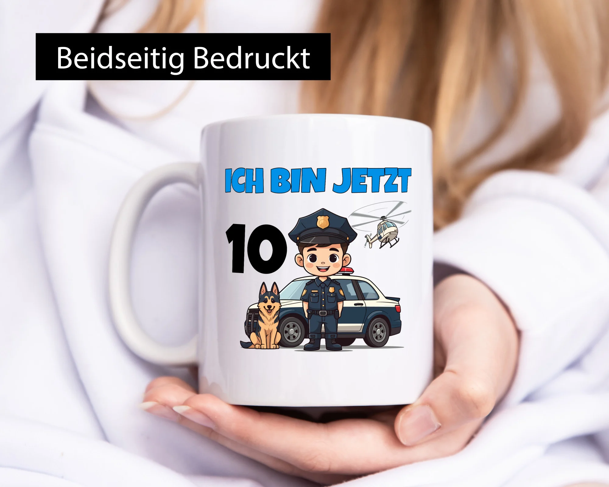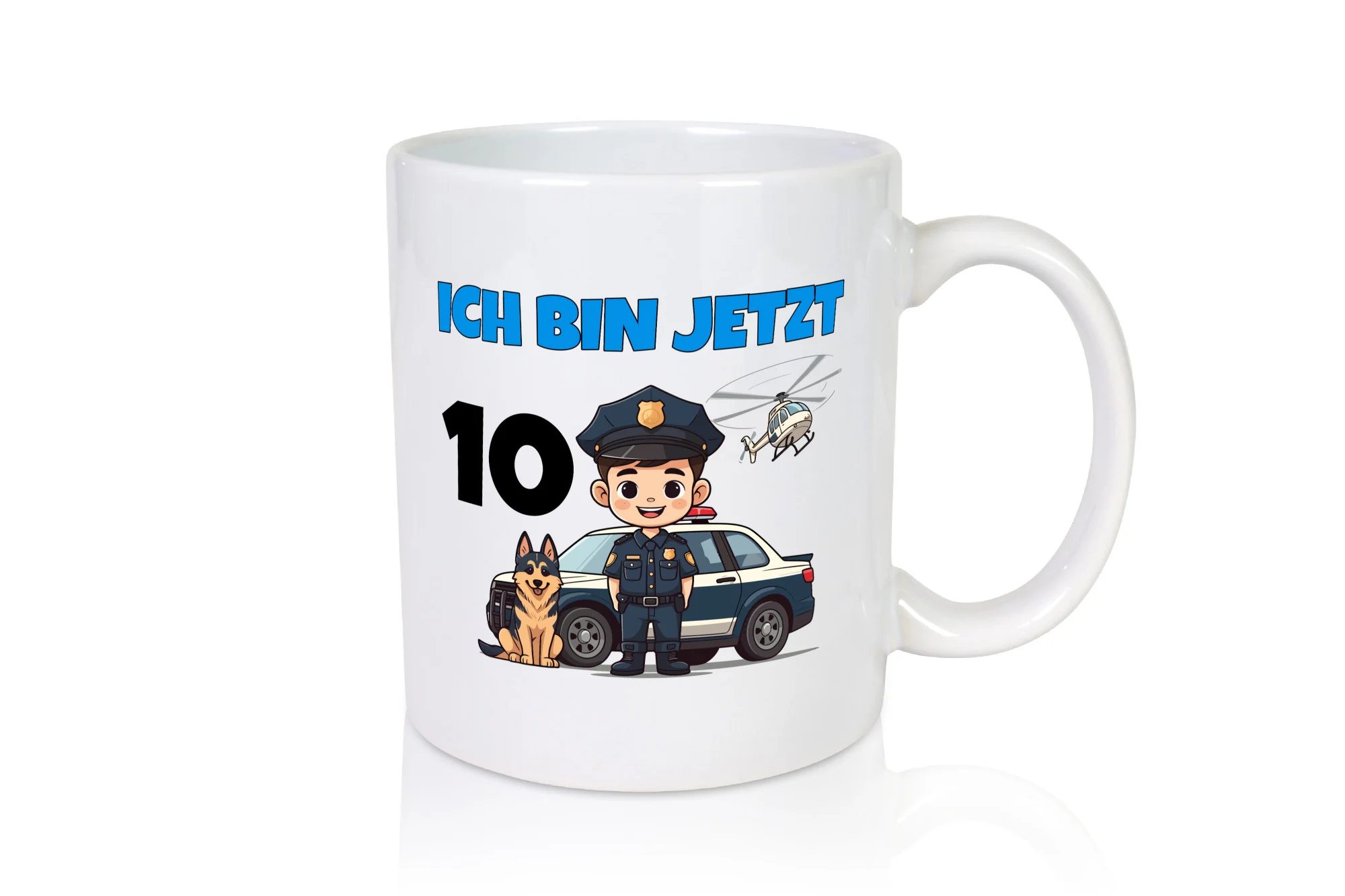 10. Geburtstag | 10 Jahre | Polizei Kind | Polizeiauto – Tasse Weiß – Kaffeetasse / Geschenk / Familie