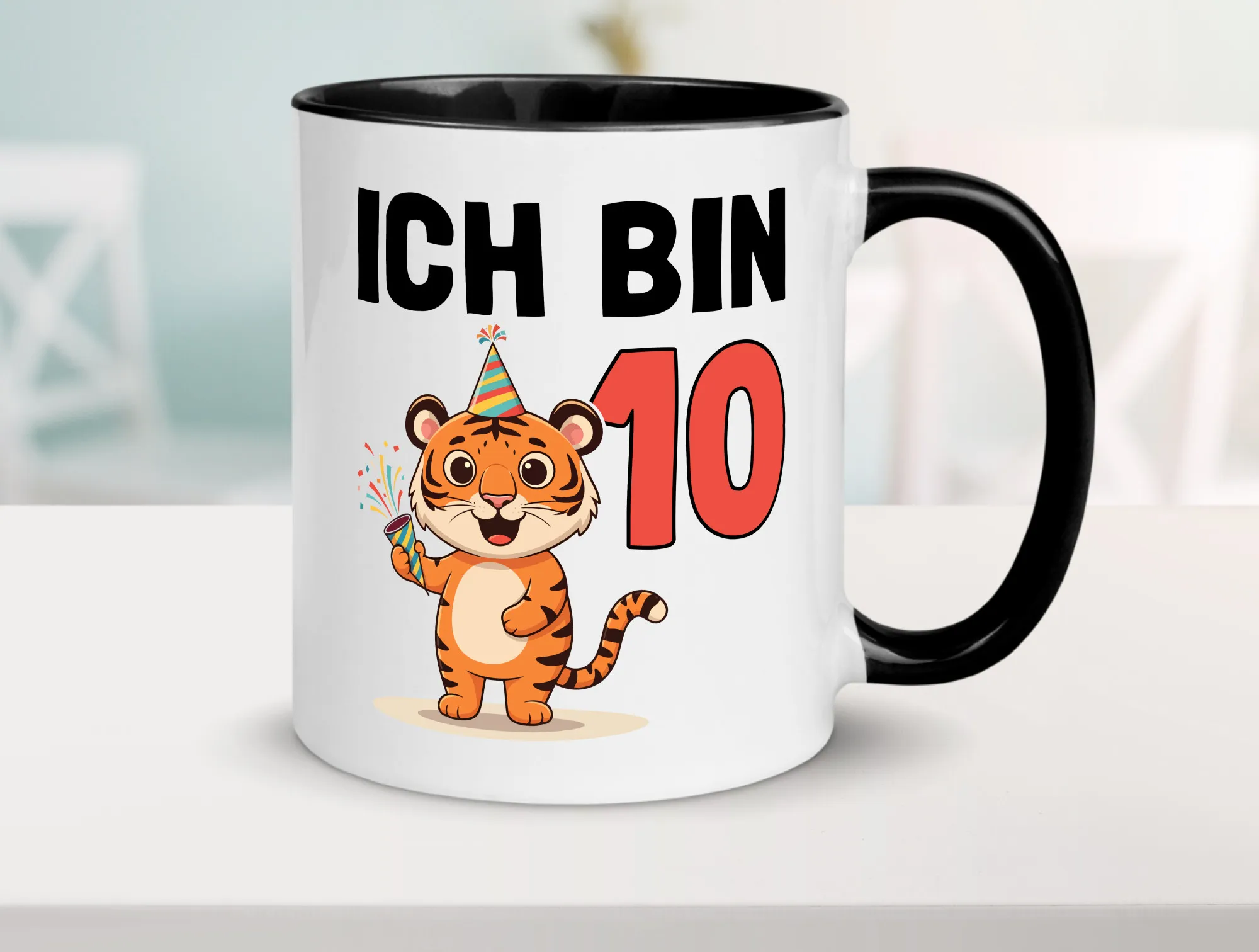 10. Geburtstag | 10 Jahre | Tiger | Geburtstag Farbige Tasse – Kaffeetasse / Geschenk / Familie