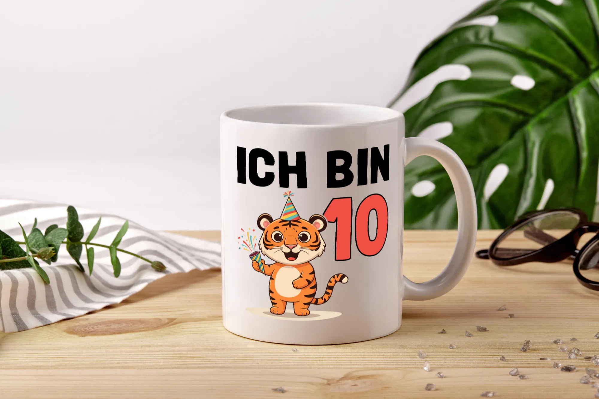 10. Geburtstag | 10 Jahre | Tiger | Geburtstag – Tasse Weiß – Kaffeetasse / Geschenk / Familie