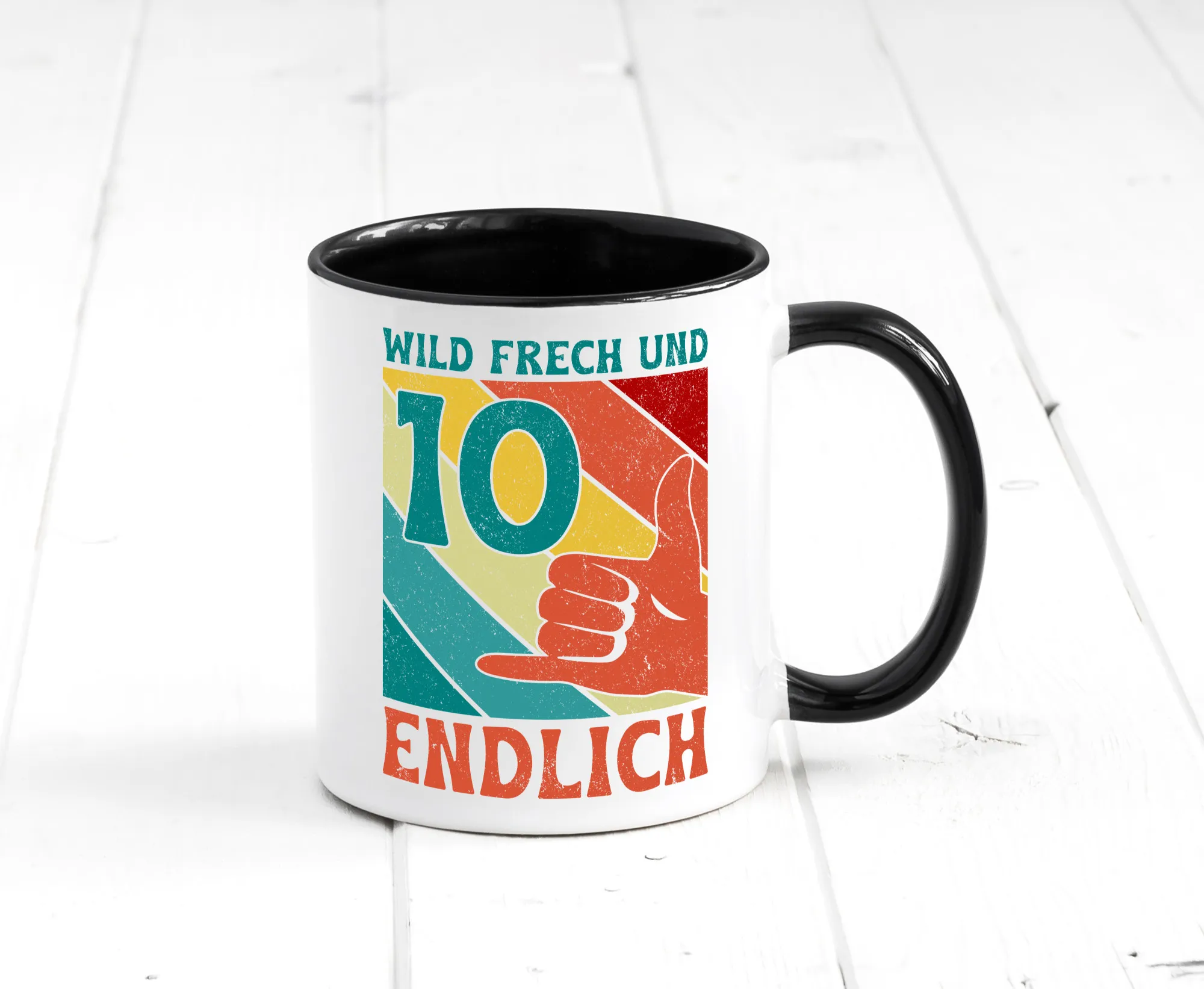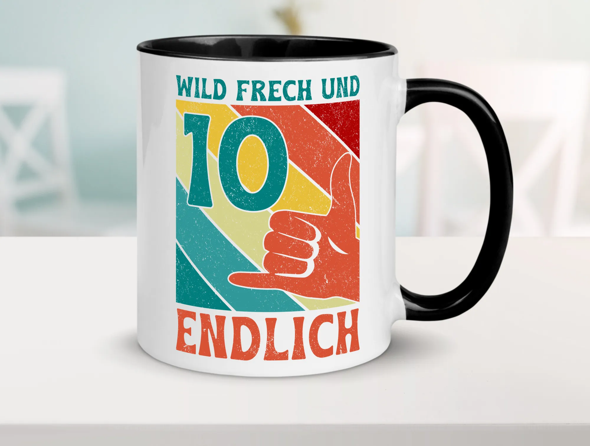 10. Geburtstag | 10 Jahre | Wild und Frech Farbige Tasse – Kaffeetasse / Geschenk / Familie
