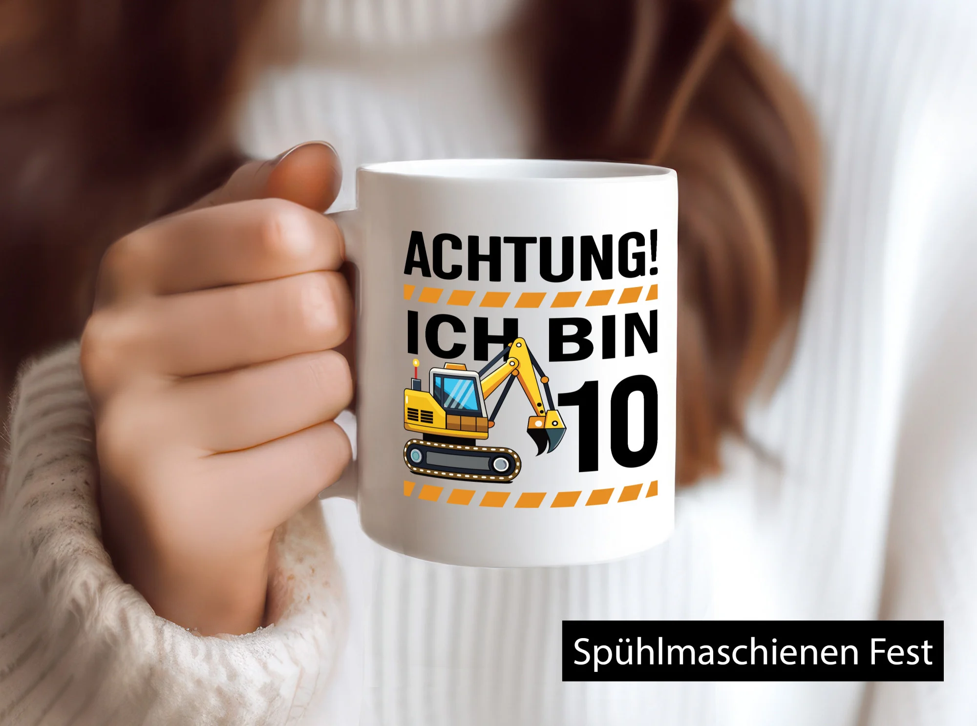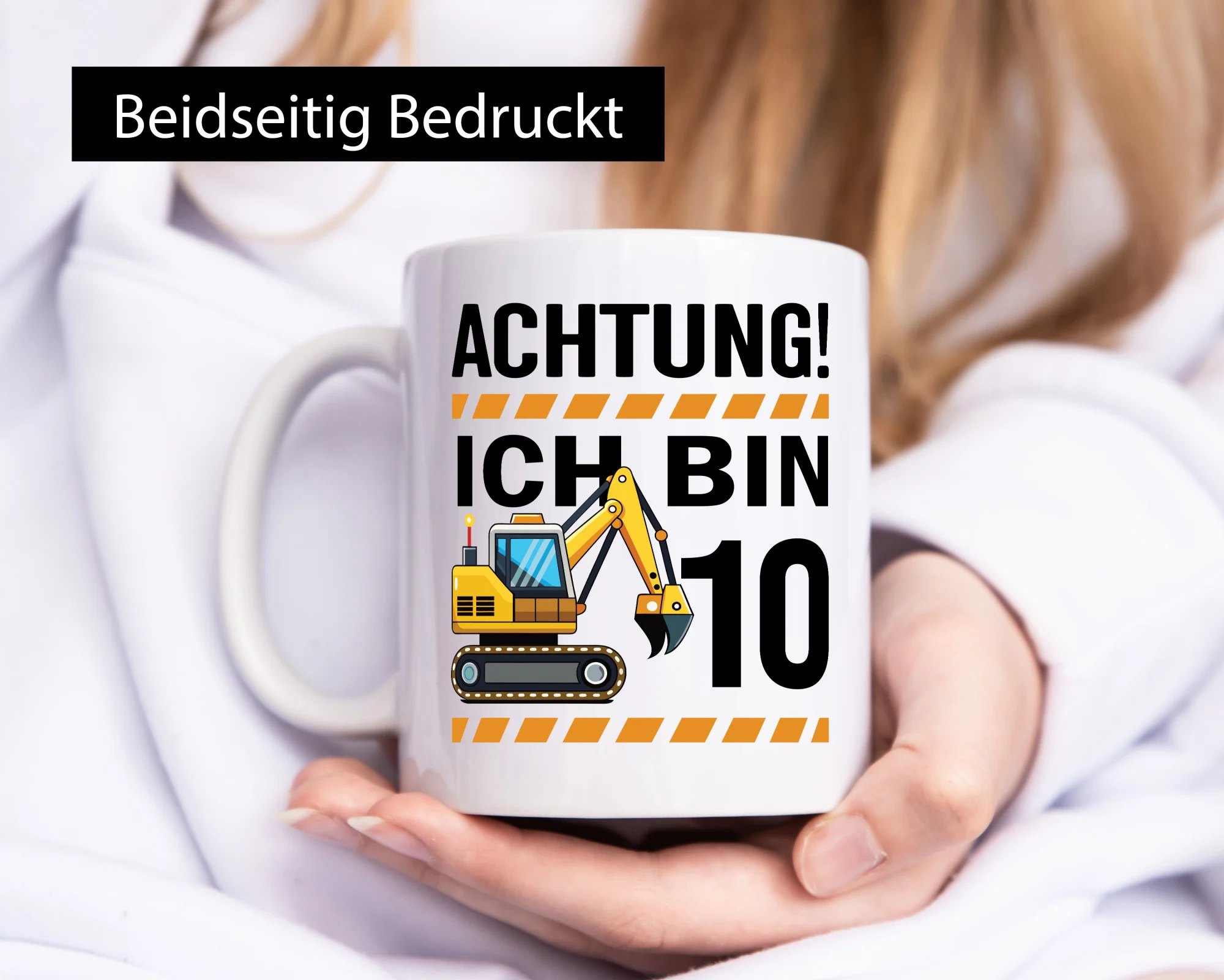 10 Geburtstag Ich bin 10 | Bagger | Bagger Junge – Tasse Weiß – Kaffeetasse / Geschenk / Familie