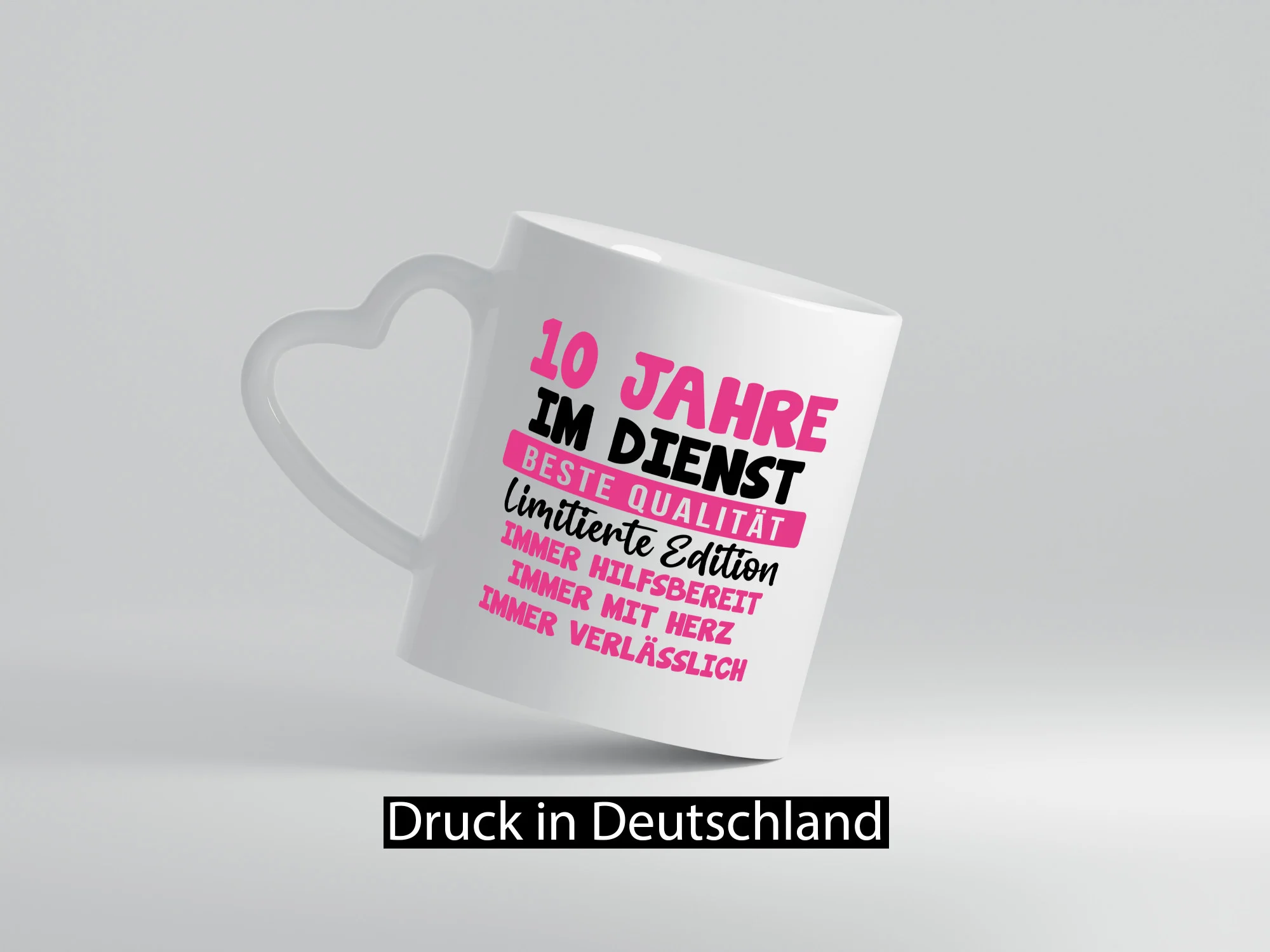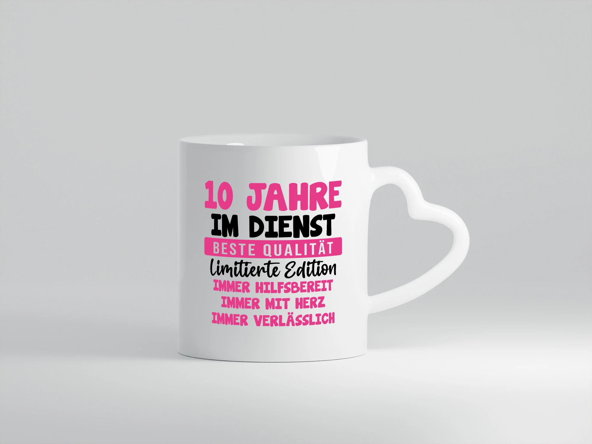 10 Jahre im Dienst | Jubiläum | Arbeit v10 – Herzhenkel Tasse – Kaffeetasse / Geschenk / Familie