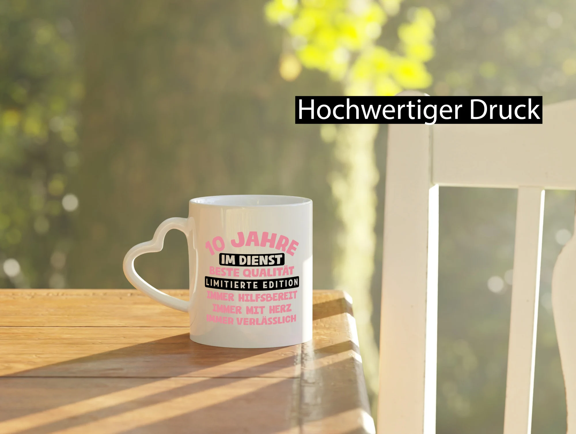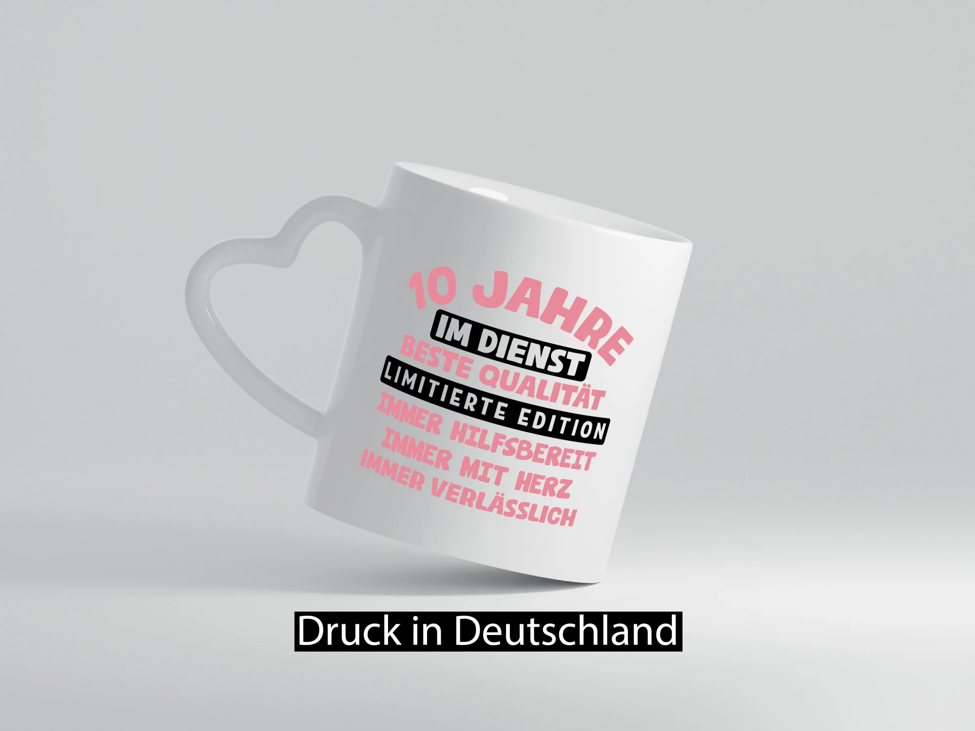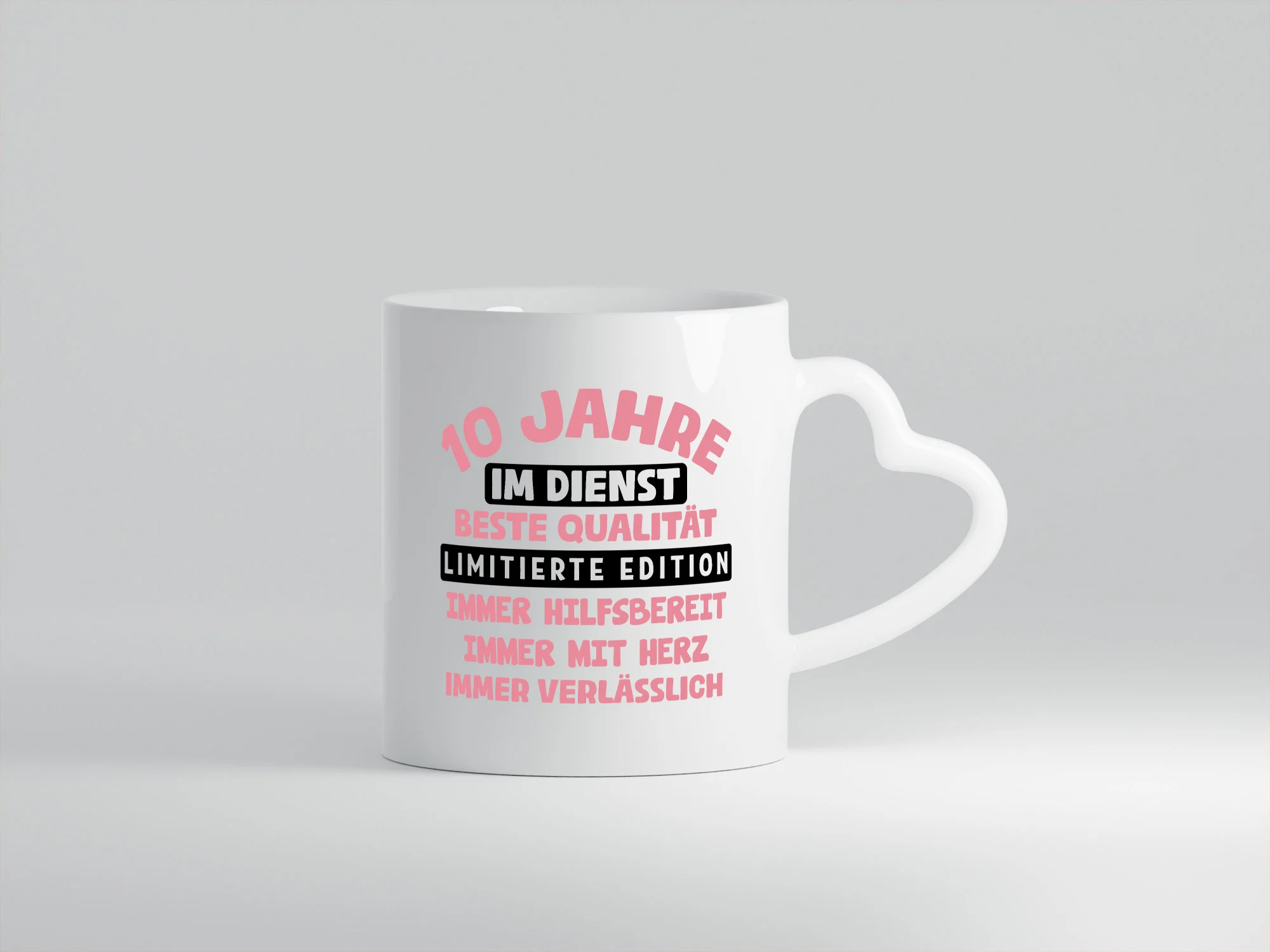 10 Jahre im Dienst | Jubiläum | Arbeit v11 – Herzhenkel Tasse – Kaffeetasse / Geschenk / Familie