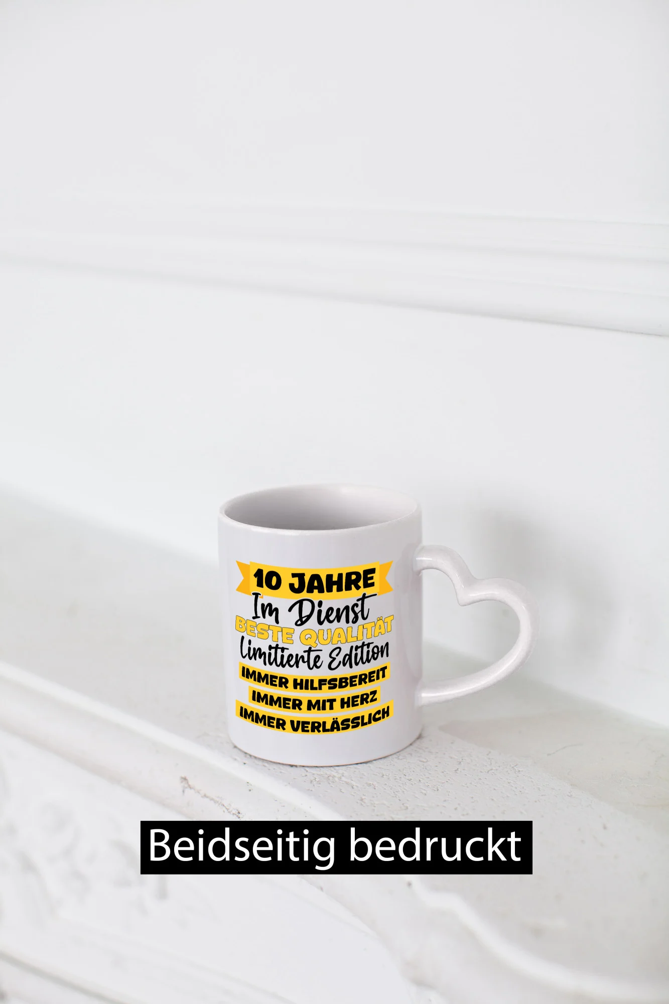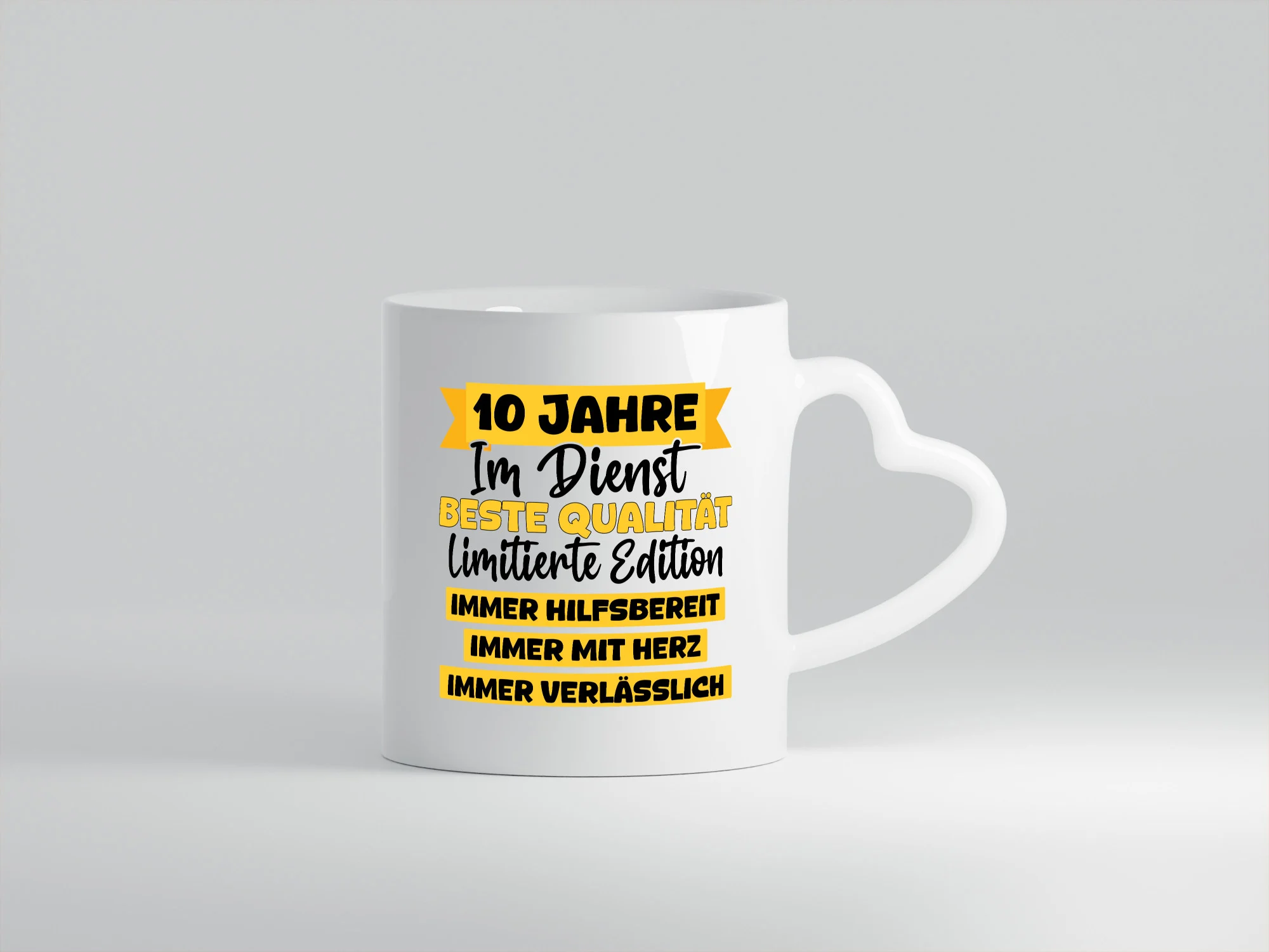 10 Jahre im Dienst | Jubiläum | Arbeit v8 – Herzhenkel Tasse – Kaffeetasse / Geschenk / Familie