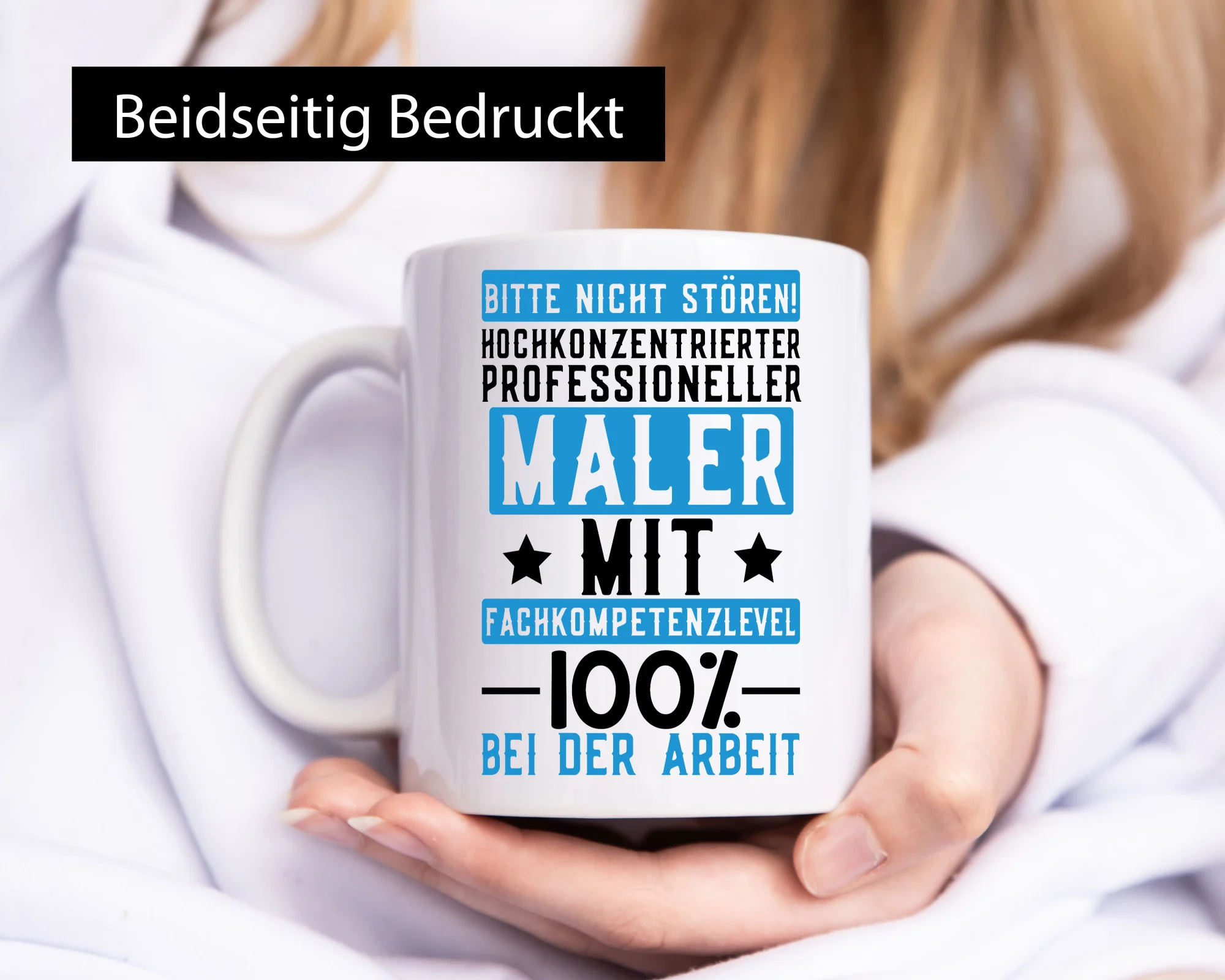 100% bei der Arbeit | Maler | Malermeister | lustiger Spruch – Tasse Weiß – Kaffeetasse / Geschenk / Familie