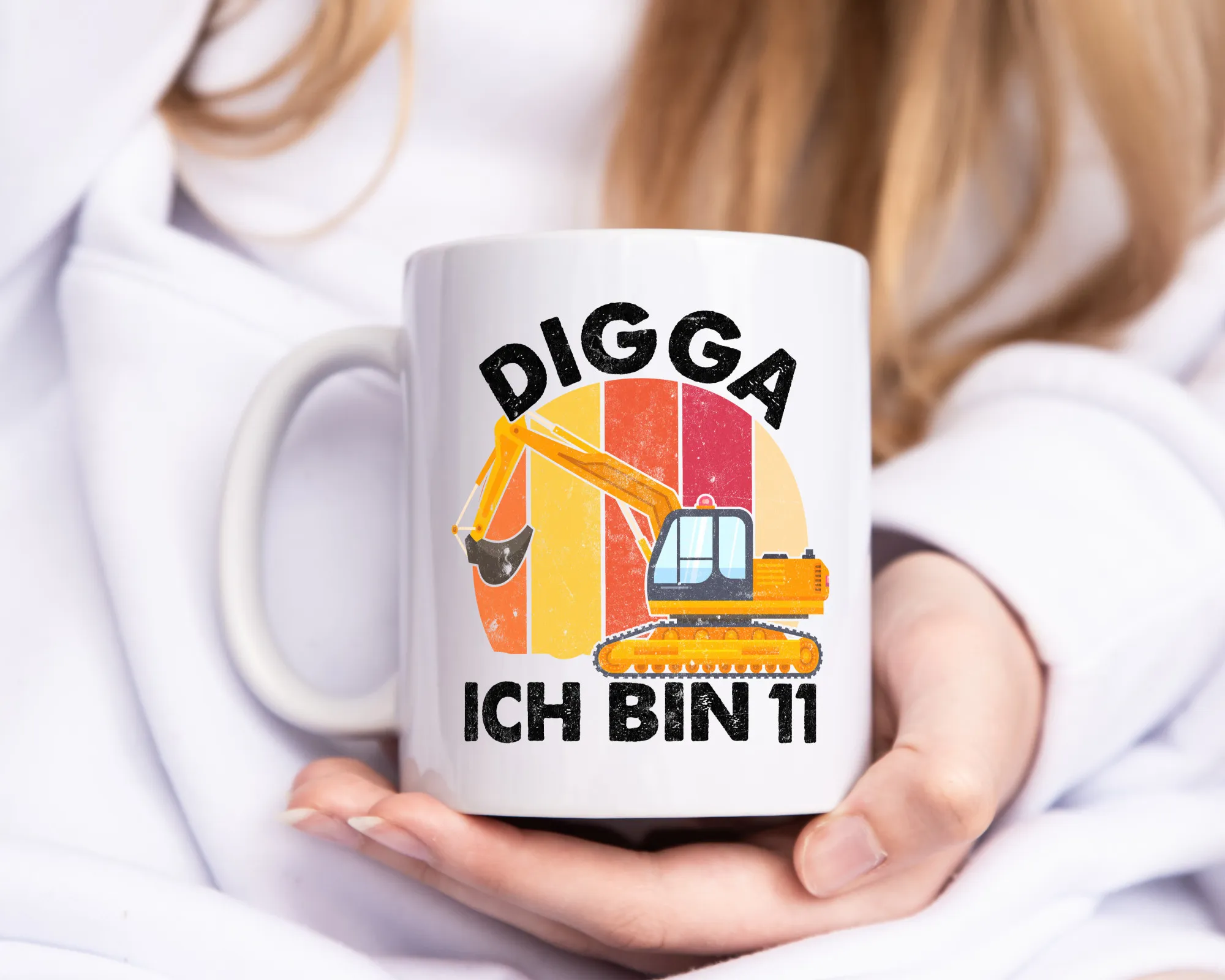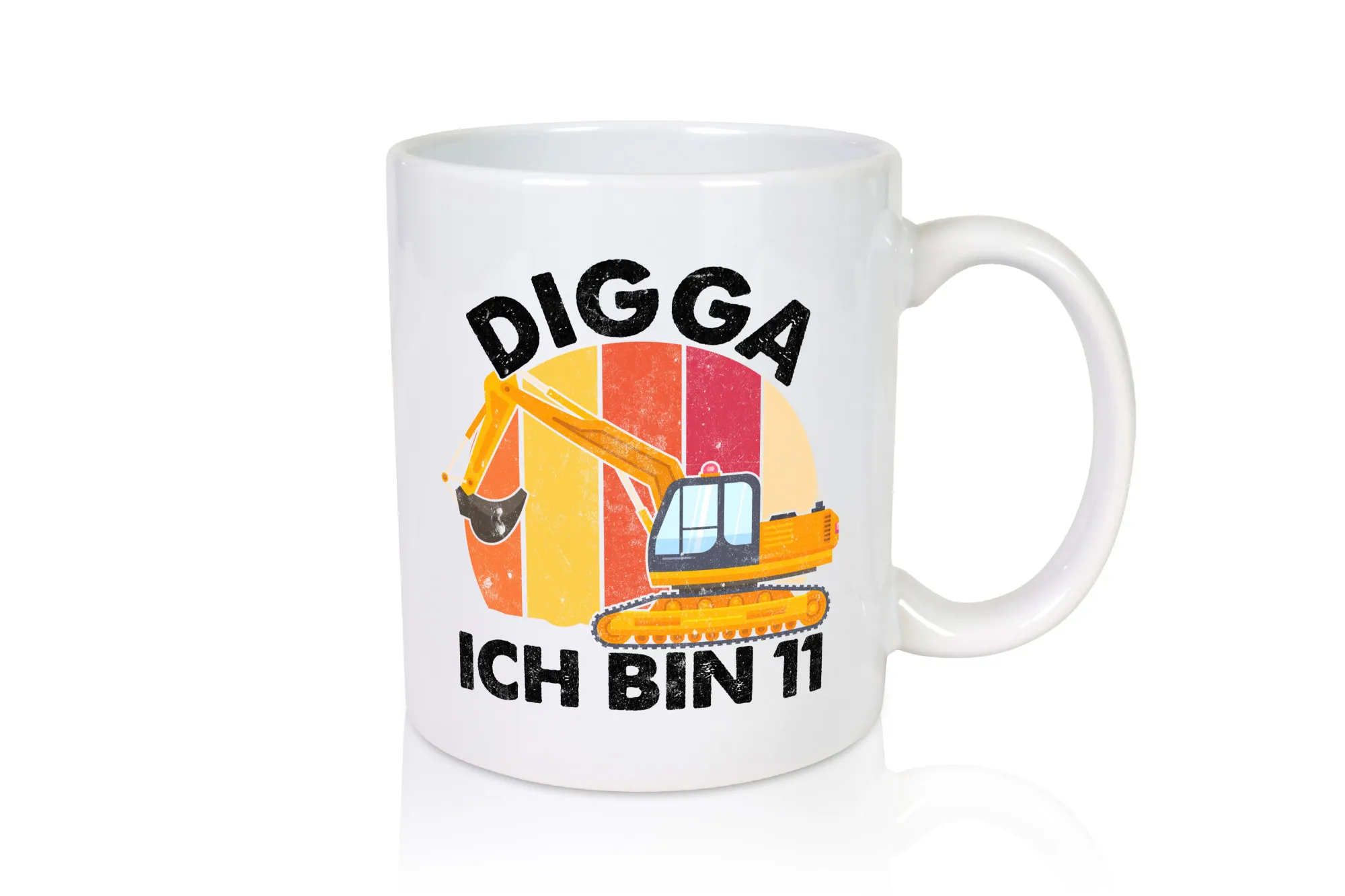 11. Geburtstag | 11 Jahre | Bagger | Digga – Tasse Weiß – Kaffeetasse / Geschenk / Familie