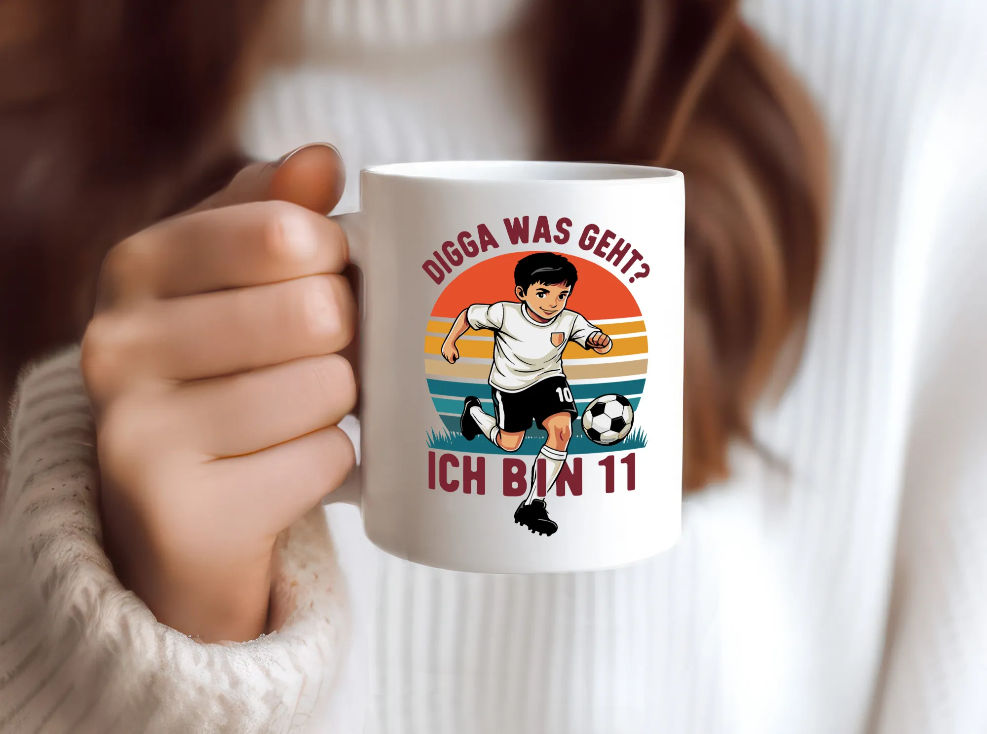 11 Geburtstag | 11 Jahre | Digga was geht ab | Fußball – Tasse Weiß – Kaffeetasse / Geschenk / Familie