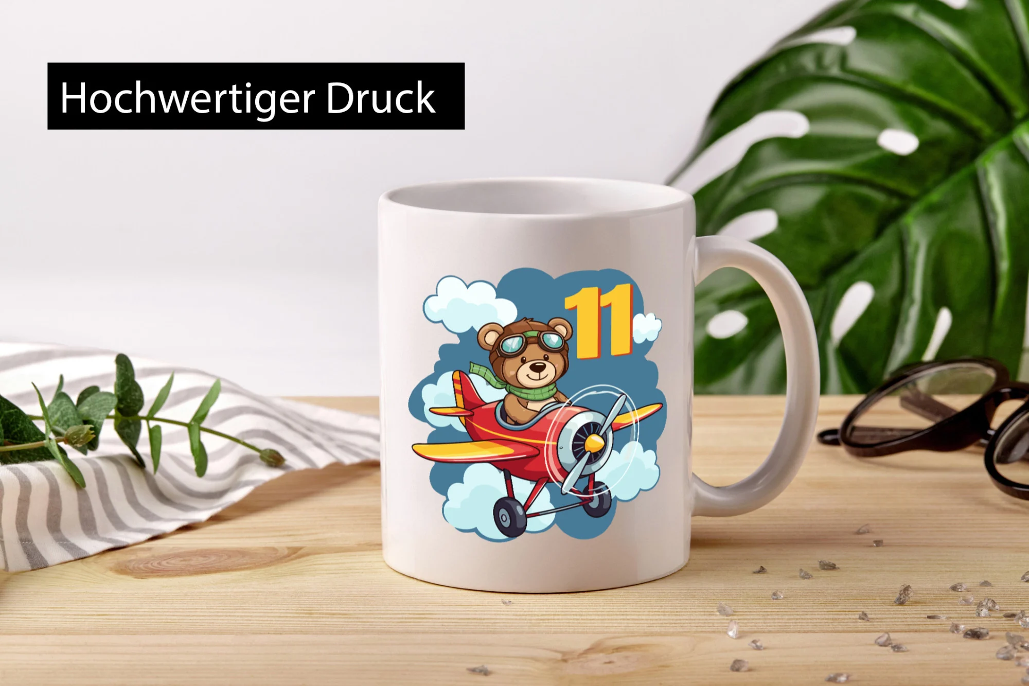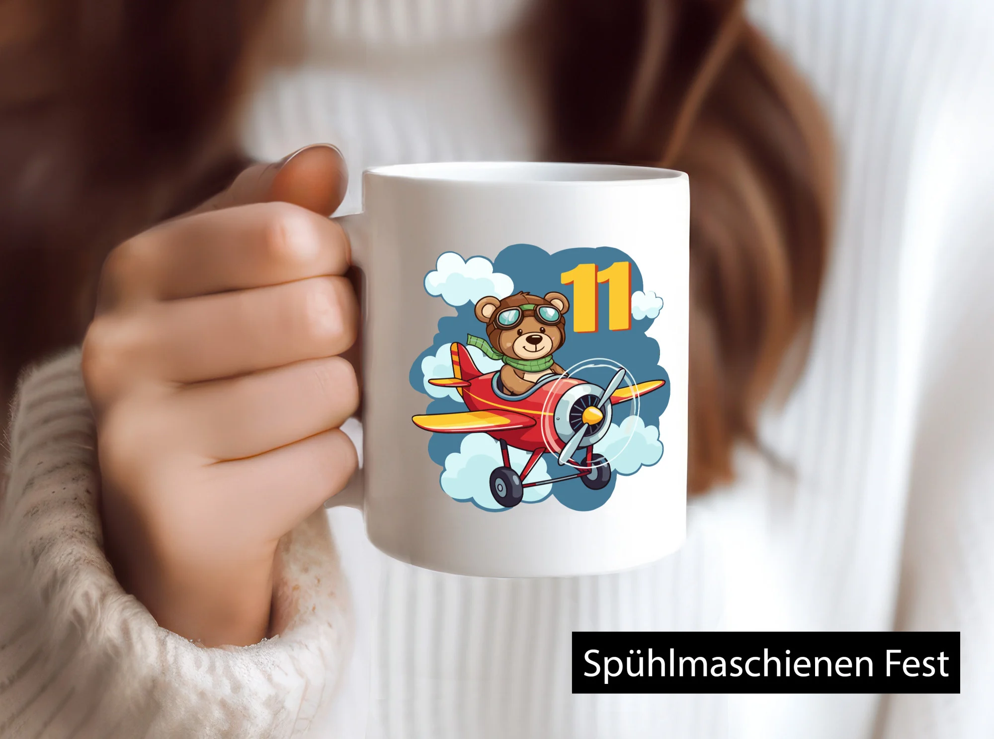 11. Geburtstag | 11 Jahre | Kinder Pilot | Flugzeug – Tasse Weiß – Kaffeetasse / Geschenk / Familie
