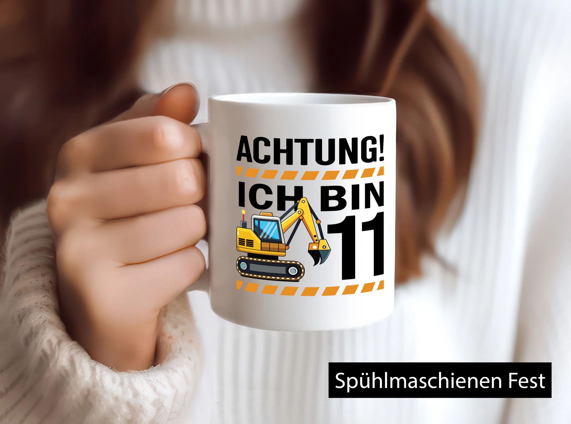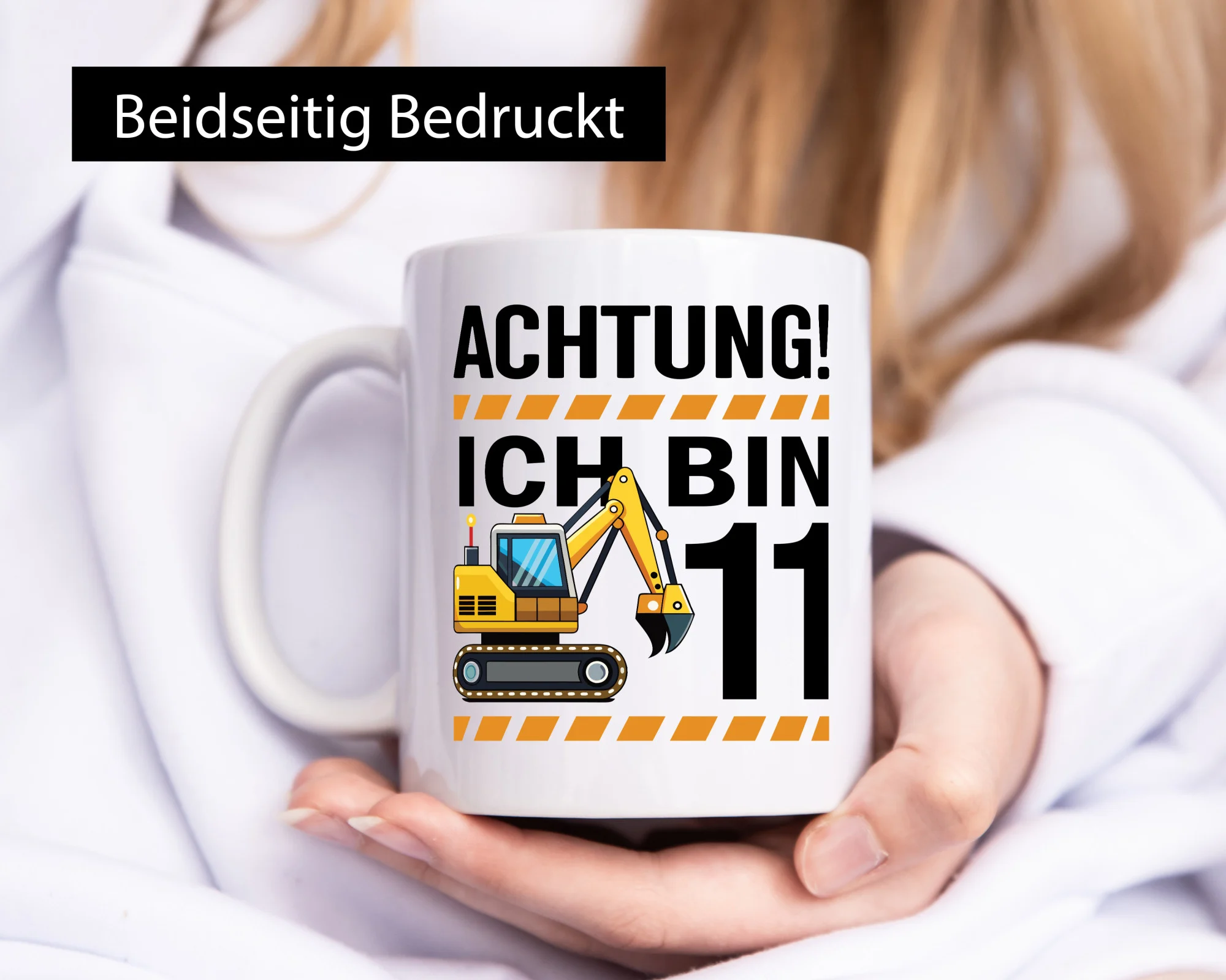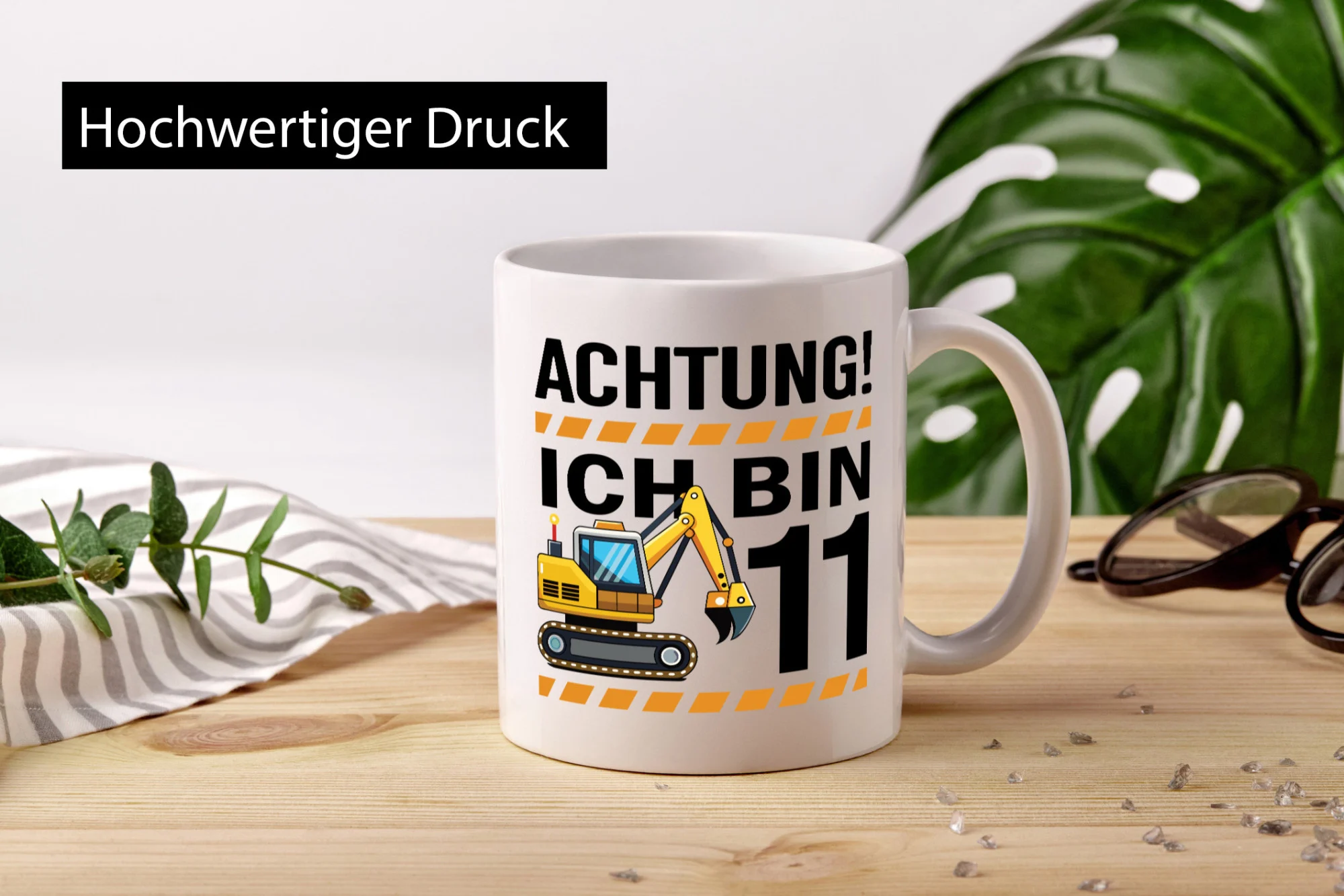 11 Geburtstag Ich bin 11 | Bagger | Bagger Junge – Tasse Weiß – Kaffeetasse / Geschenk / Familie