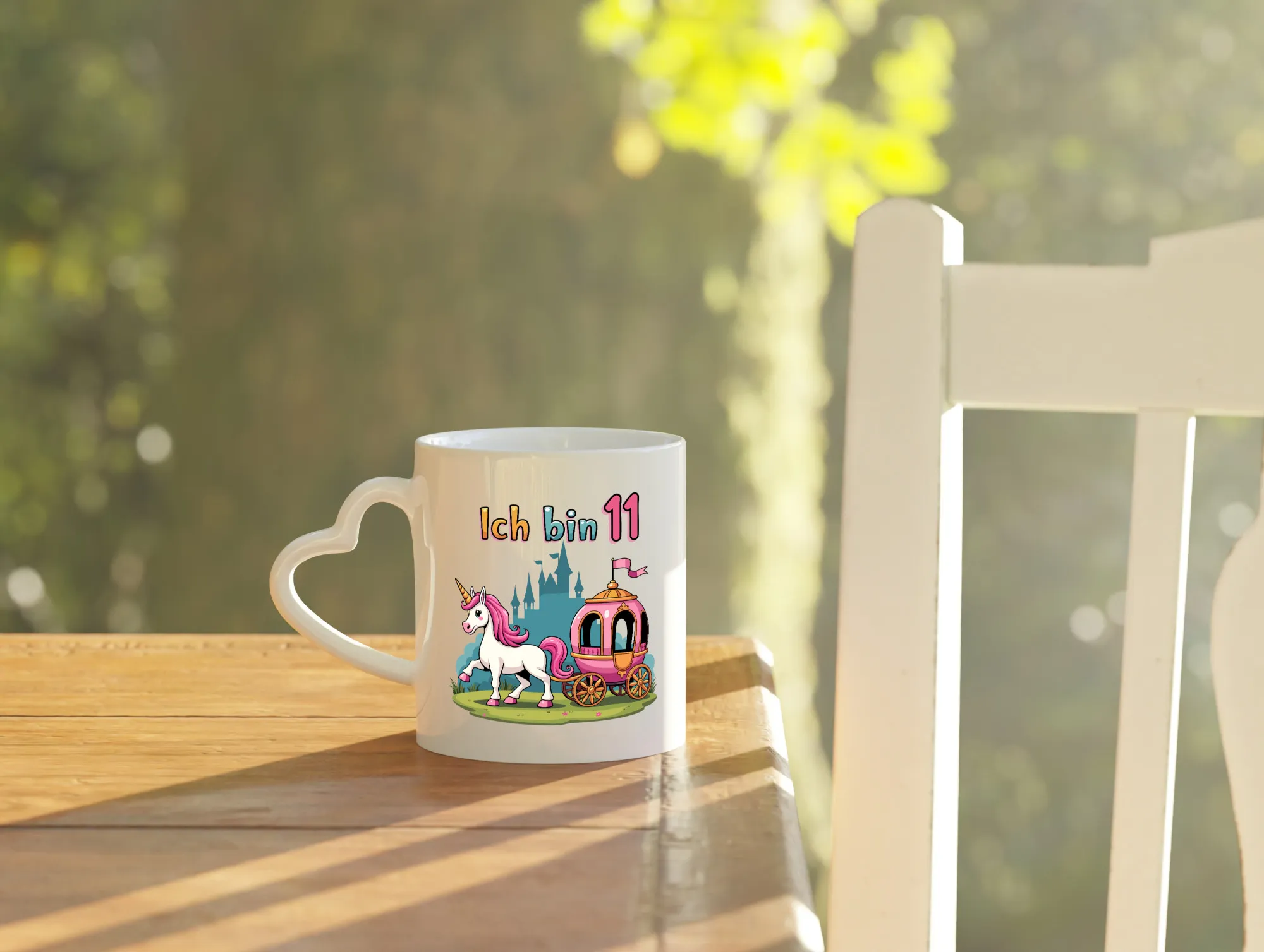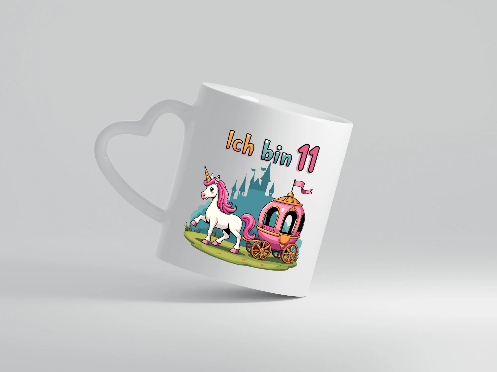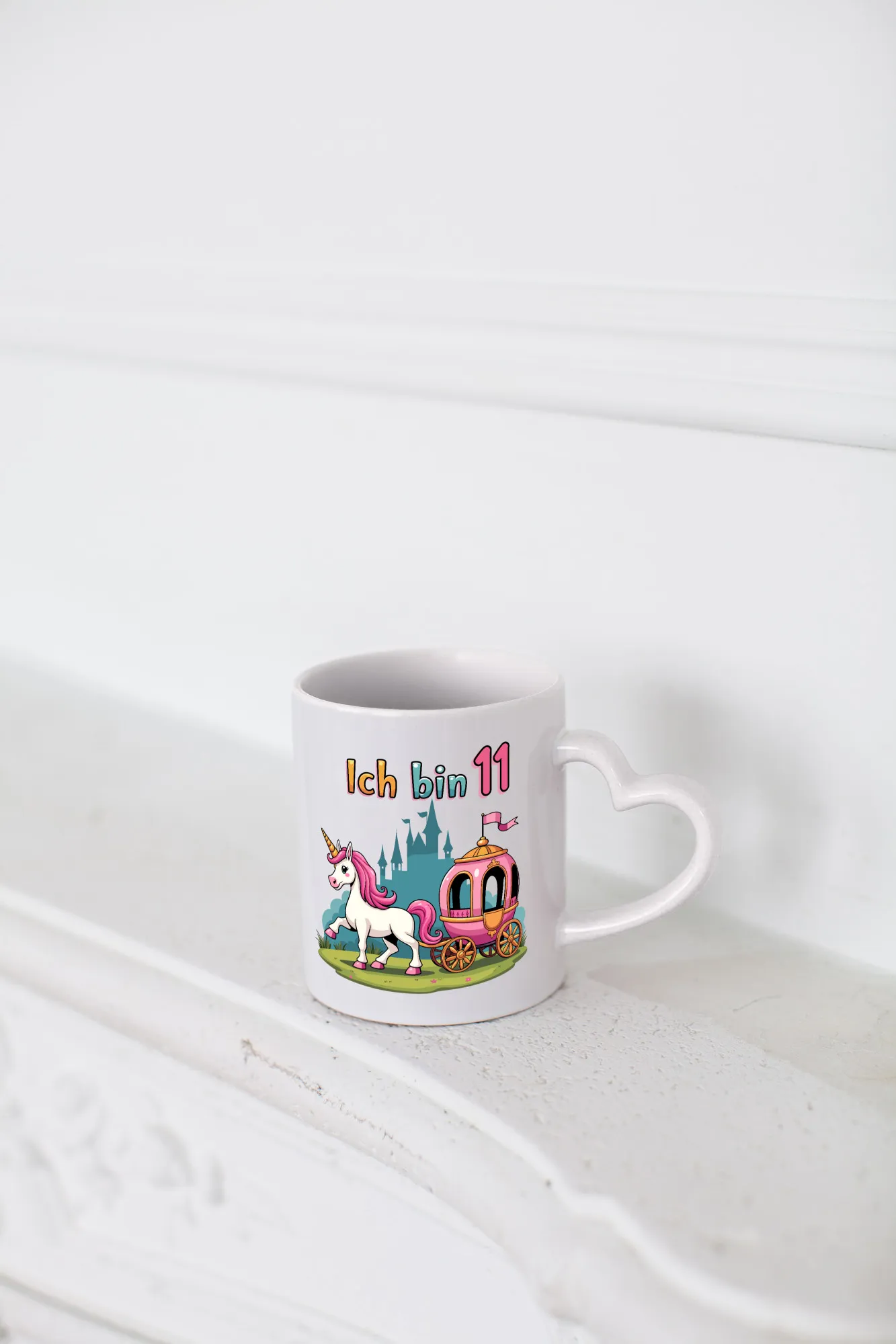 11. Geburtstag | Prinzessin in Kutsche | Einhorn – Herzhenkel Tasse – Kaffeetasse / Geschenk / Familie