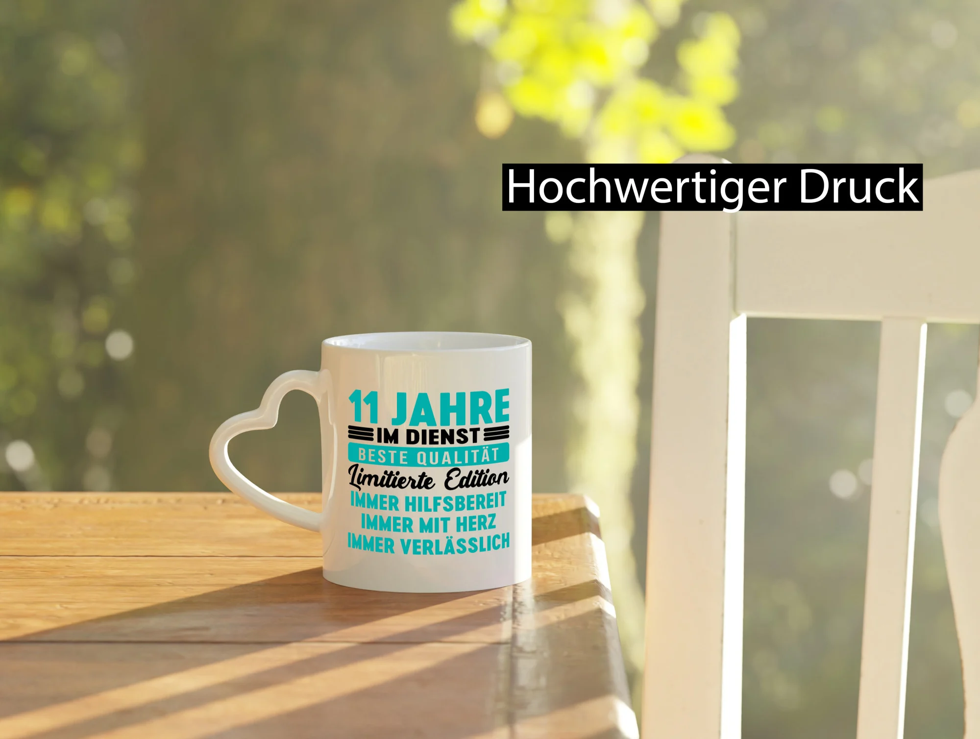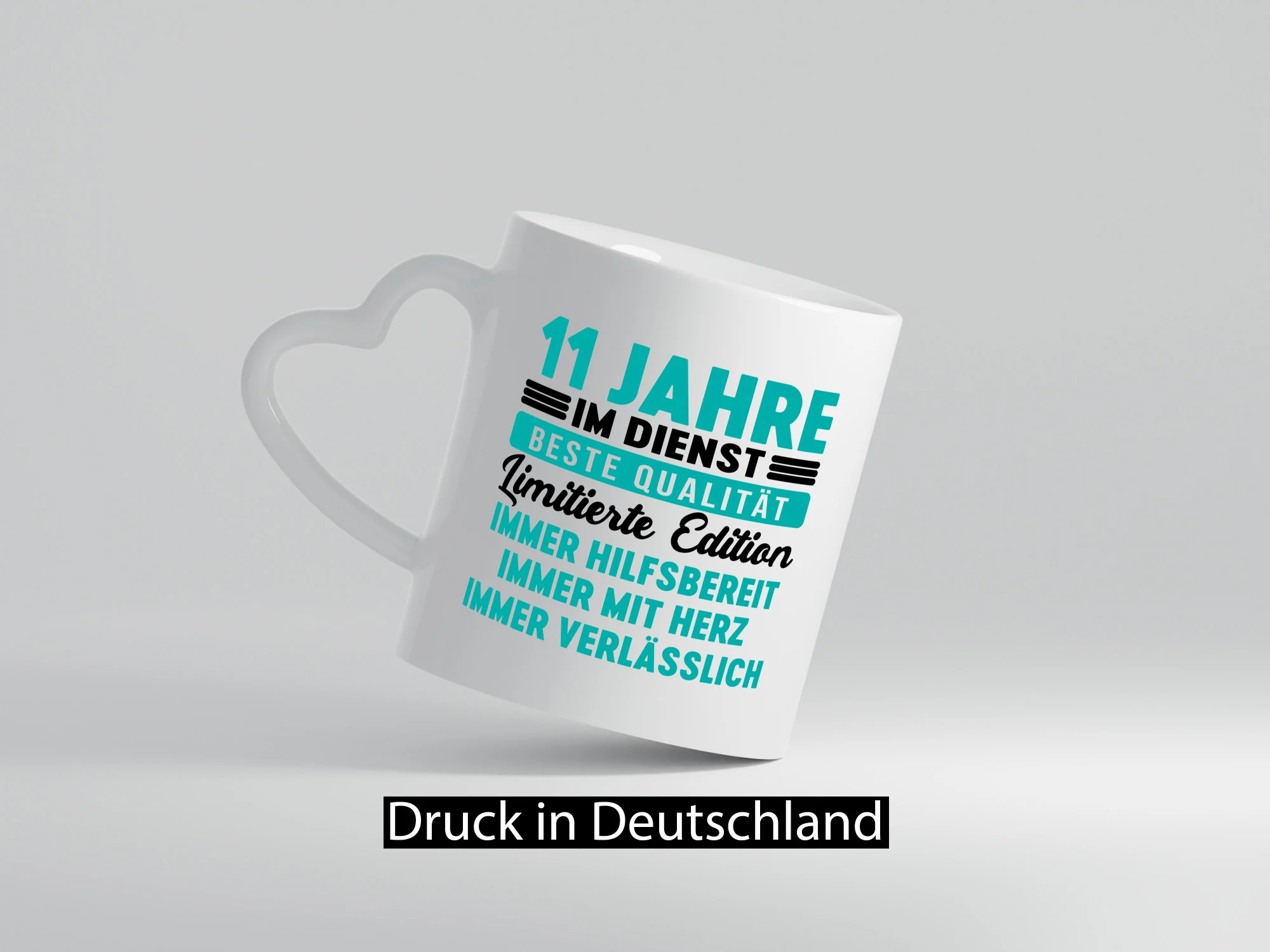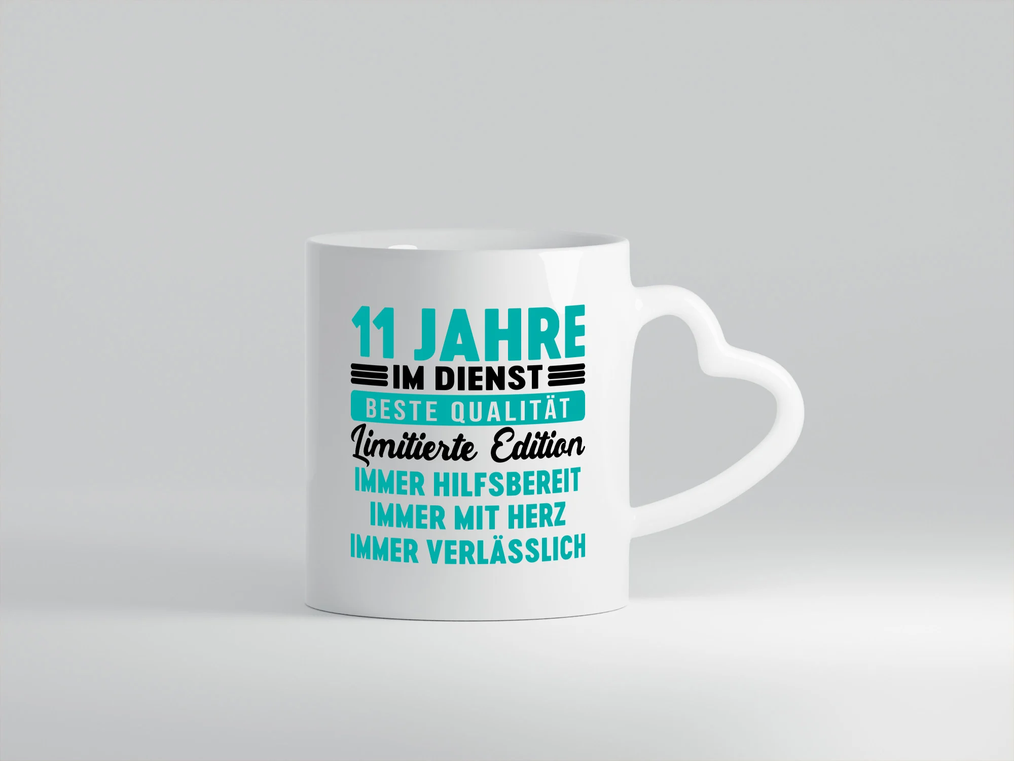 11 Jahre im Dienst | Jubiläum | Arbeit v5 – Herzhenkel Tasse – Kaffeetasse / Geschenk / Familie