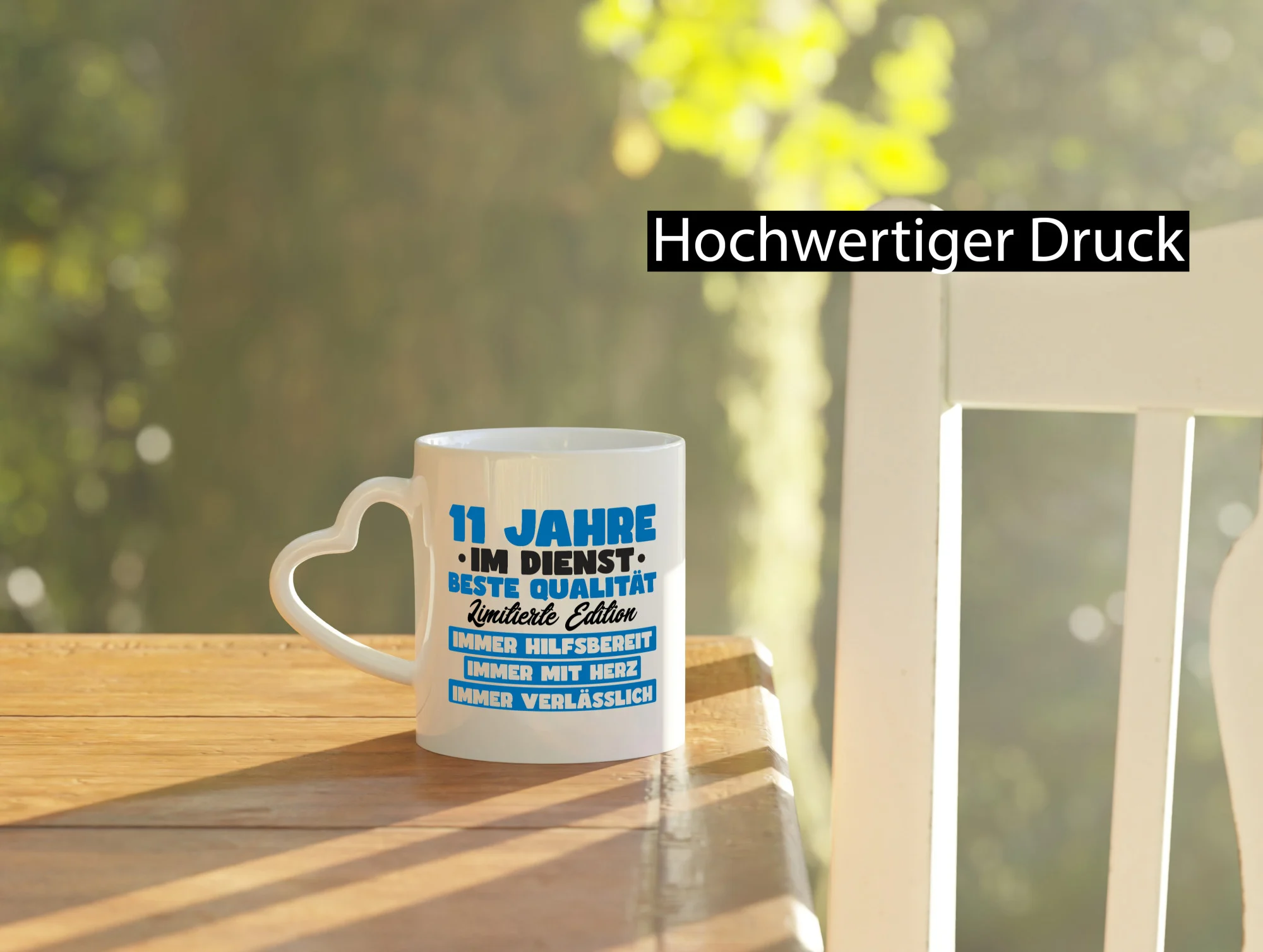 11 Jahre im Dienst | Jubiläum | Arbeit v7 – Herzhenkel Tasse – Kaffeetasse / Geschenk / Familie