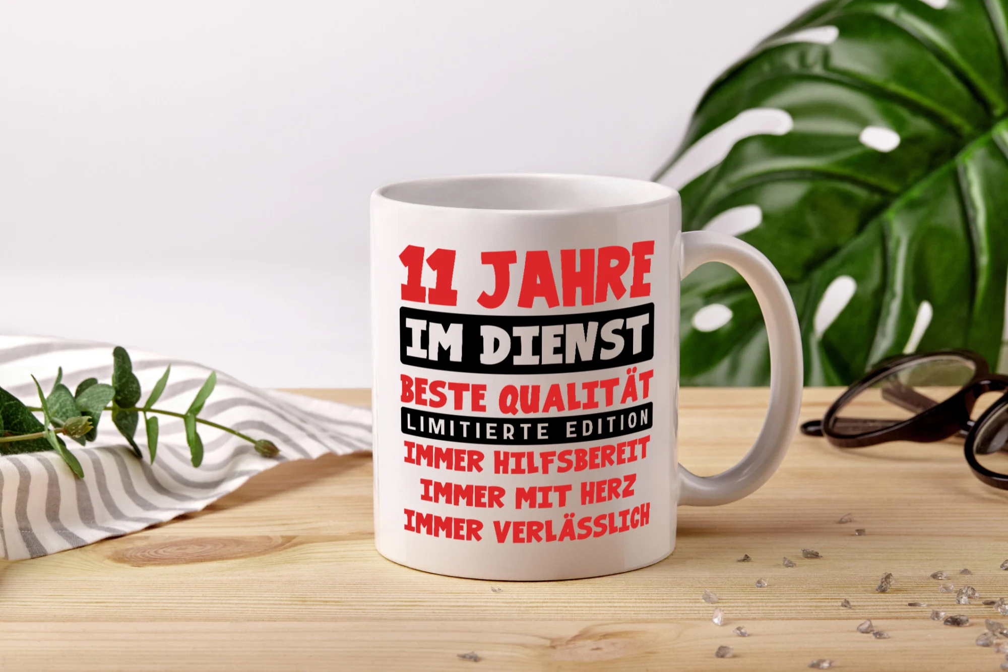 11 Jahre im Dienst | Jubiläum | Arbeit v9 – Tasse Weiß – Kaffeetasse / Geschenk / Familie