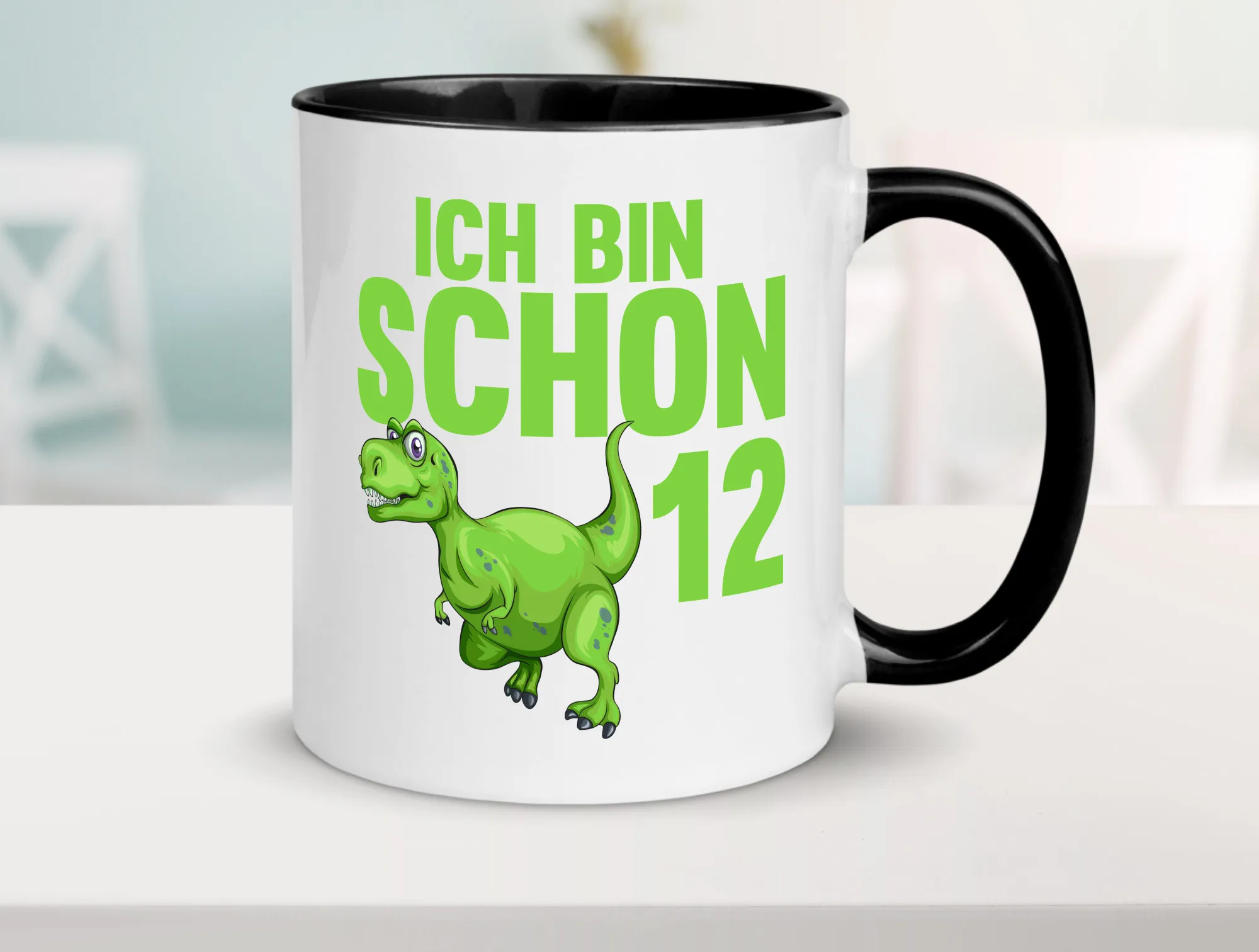 12. Geburtstag | 12 Jahre | Dino | Dinosaurier Farbige Tasse – Kaffeetasse / Geschenk / Familie