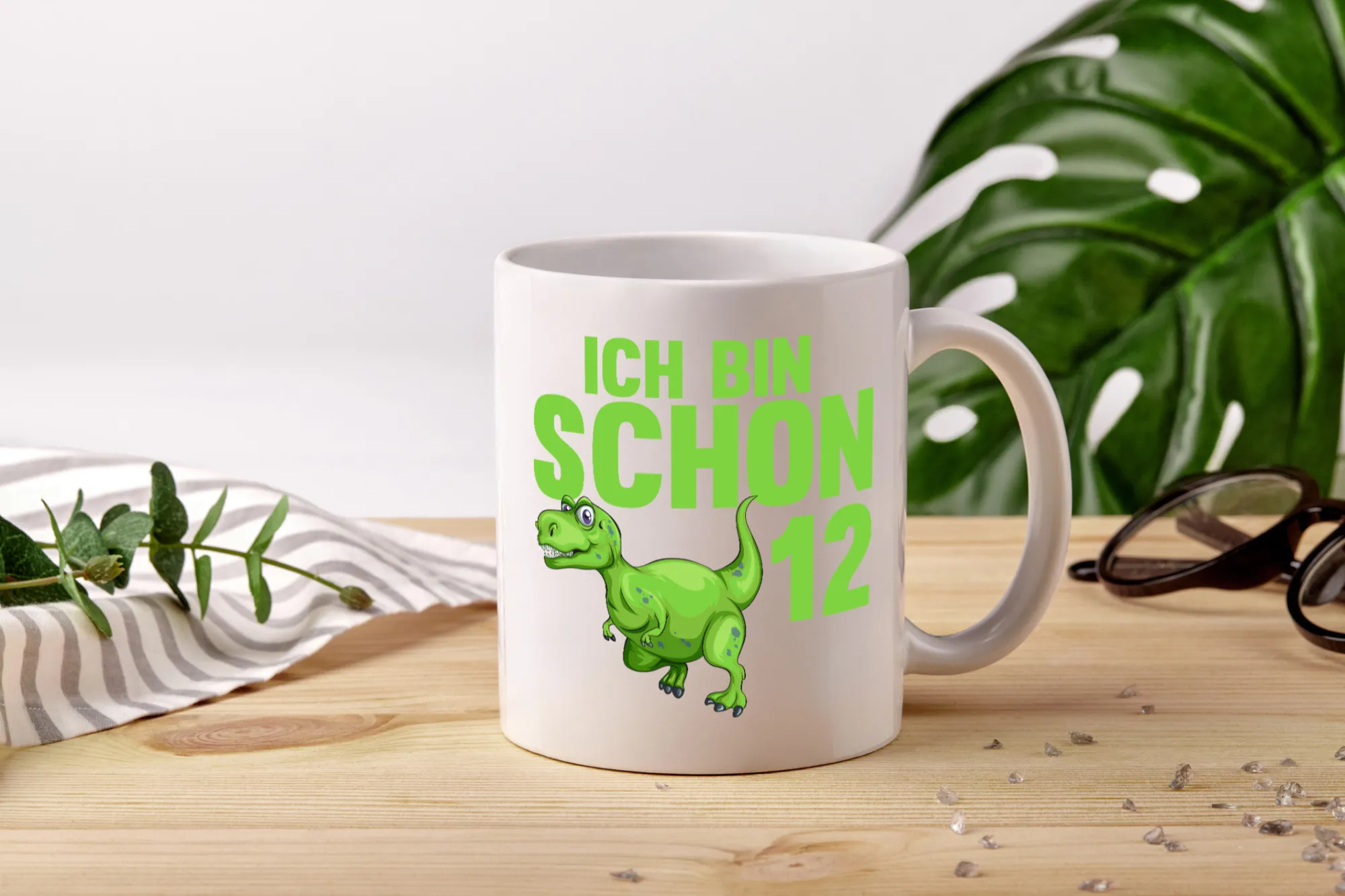 12. Geburtstag | 12 Jahre | Dino | Dinosaurier – Tasse Weiß – Kaffeetasse / Geschenk / Familie