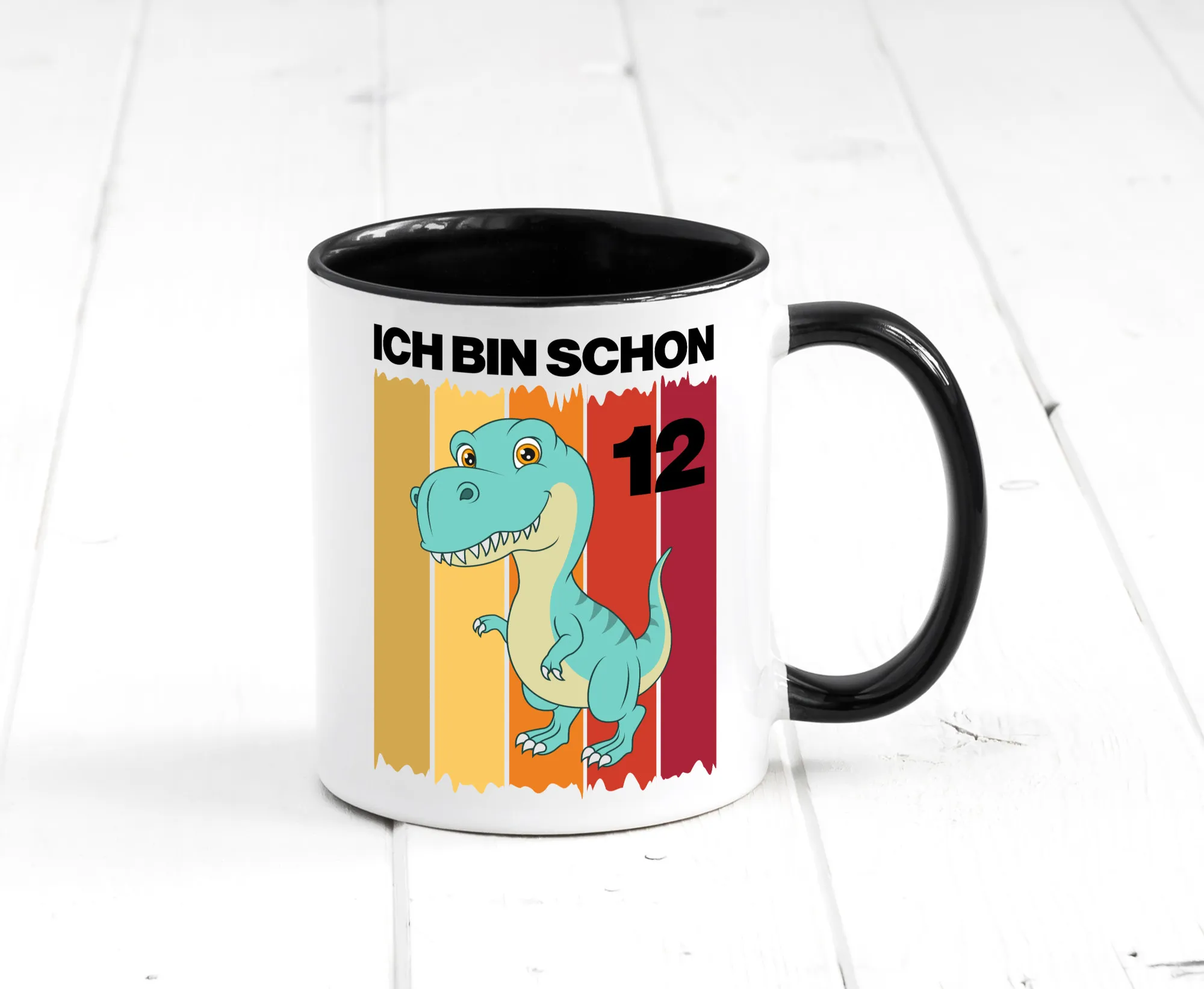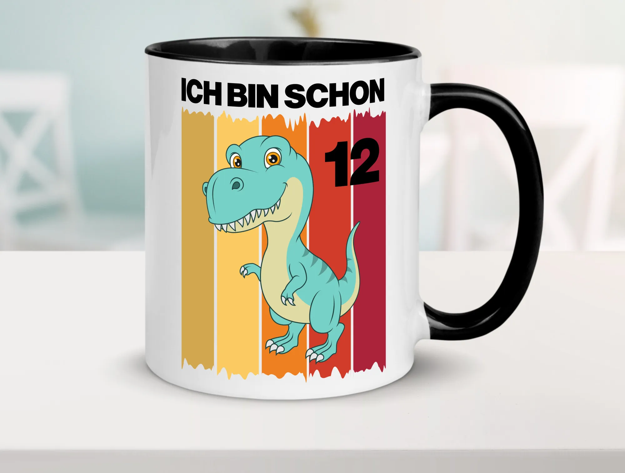 12. Geburtstag | 12 Jahre | Dinosaurier Farbige Tasse – Kaffeetasse / Geschenk / Familie