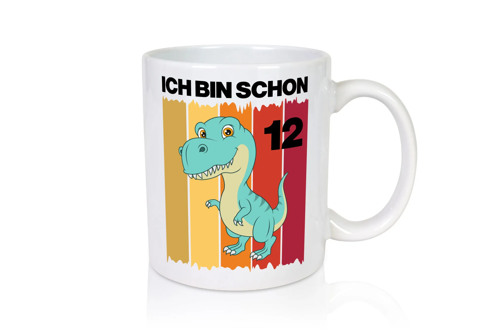 12. Geburtstag | 12 Jahre | Dinosaurier – Tasse Weiß – Kaffeetasse / Geschenk / Familie