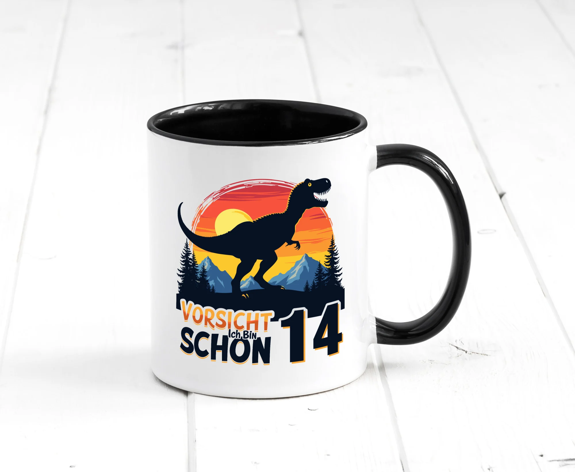 12. Geburtstag | 12 Jahre | Dinosaurier v2 Farbige Tasse – Kaffeetasse / Geschenk / Familie