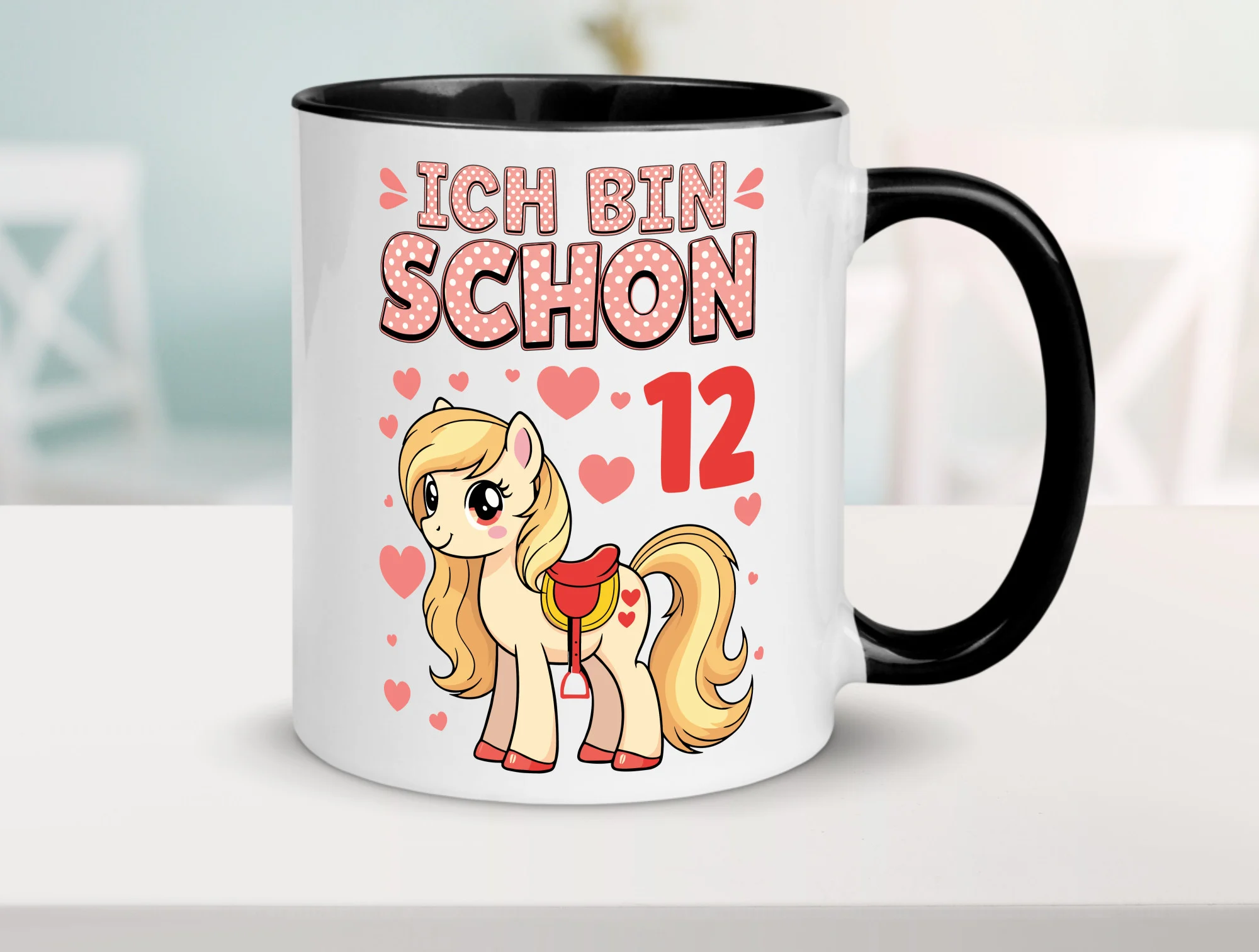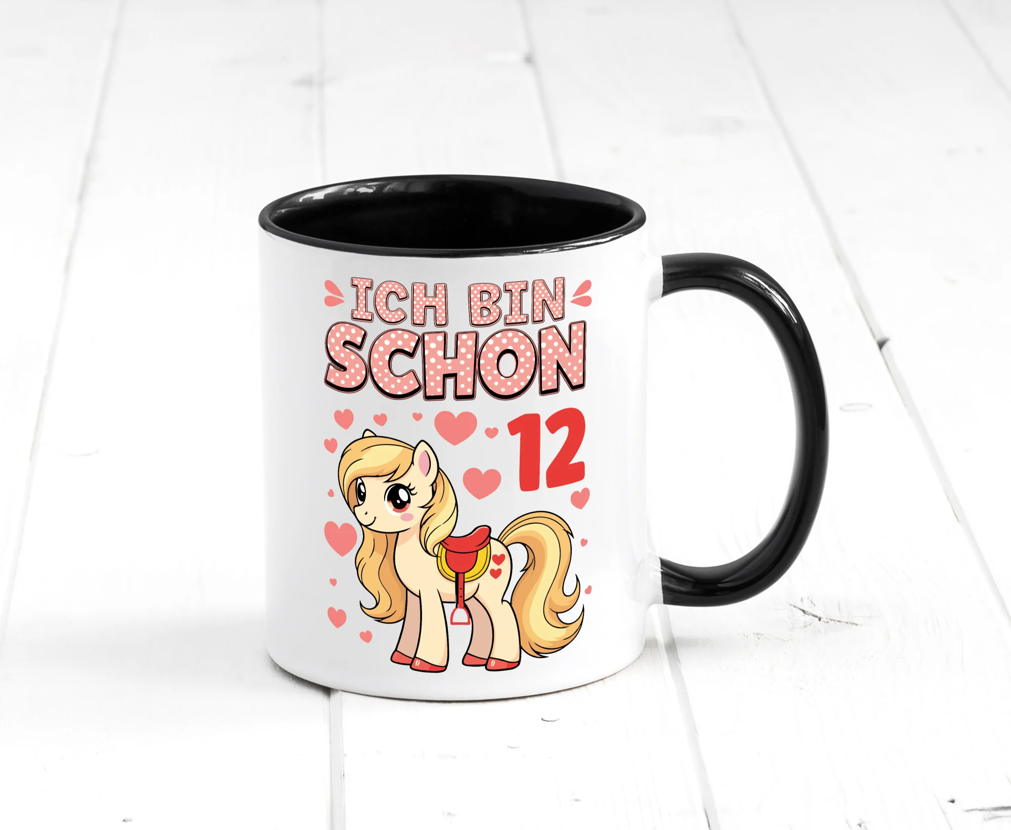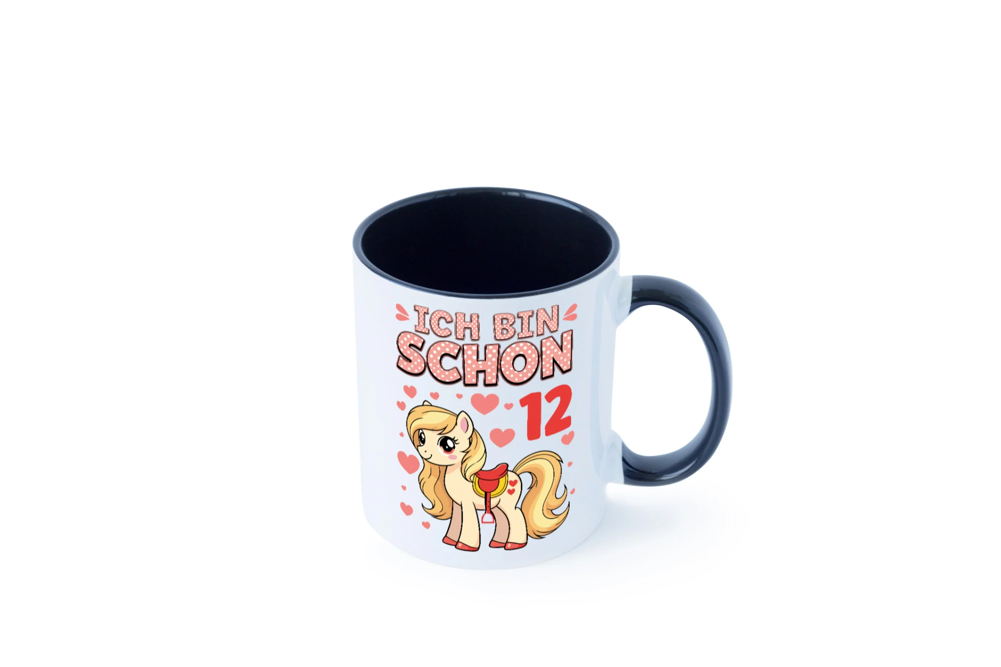 12. Geburtstag | 12 Jahre | Mädchen | Reiten | Pony Farbige Tasse – Kaffeetasse / Geschenk / Familie