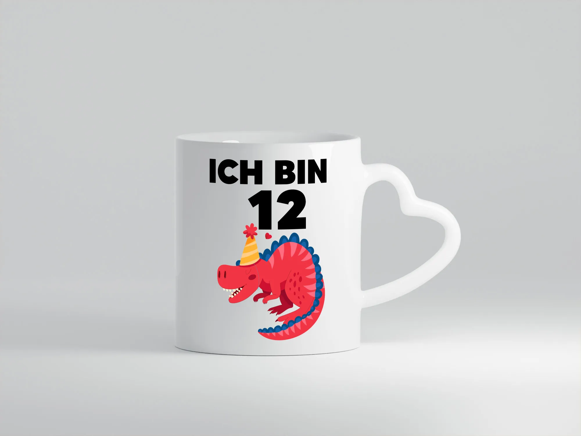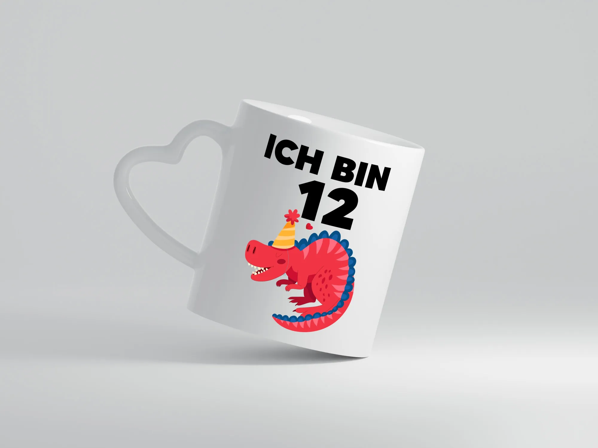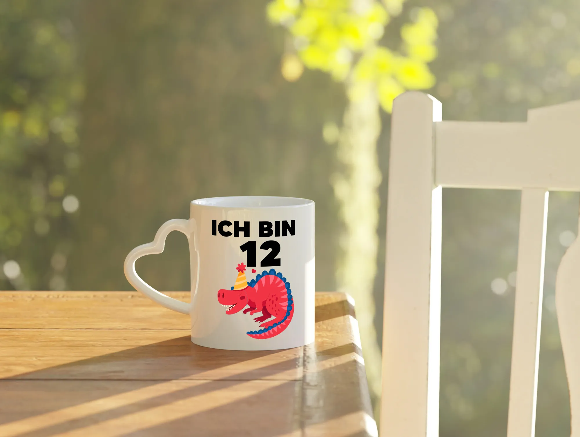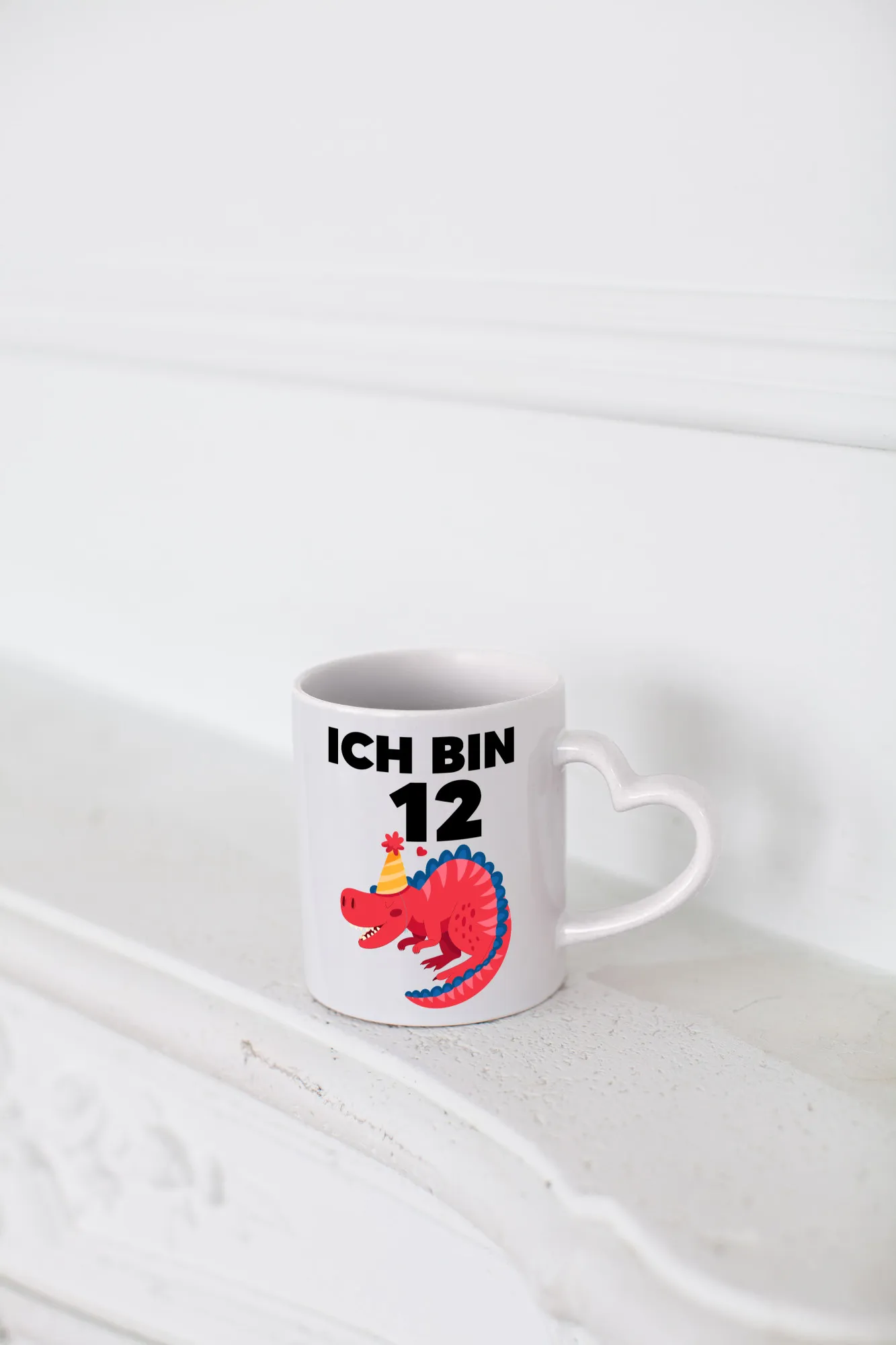 12. Geburtstag | Dino | Dinosaurier | 12 Jahre – Herzhenkel Tasse – Kaffeetasse / Geschenk / Familie