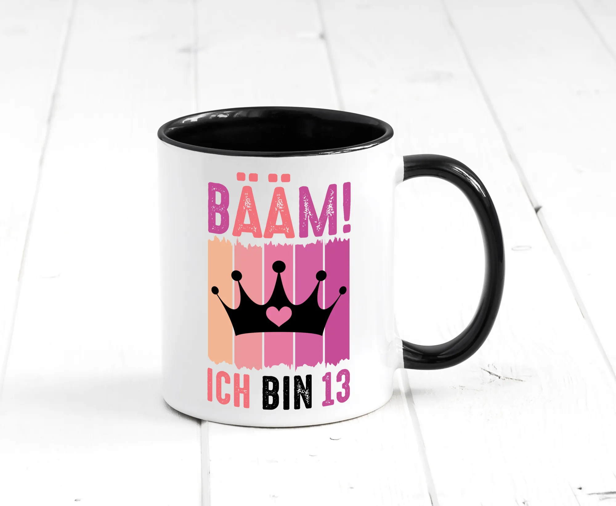 13. Geburtstag | 13 Jahre | Bääm ich bin 13 | Krone Farbige Tasse – Kaffeetasse / Geschenk / Familie