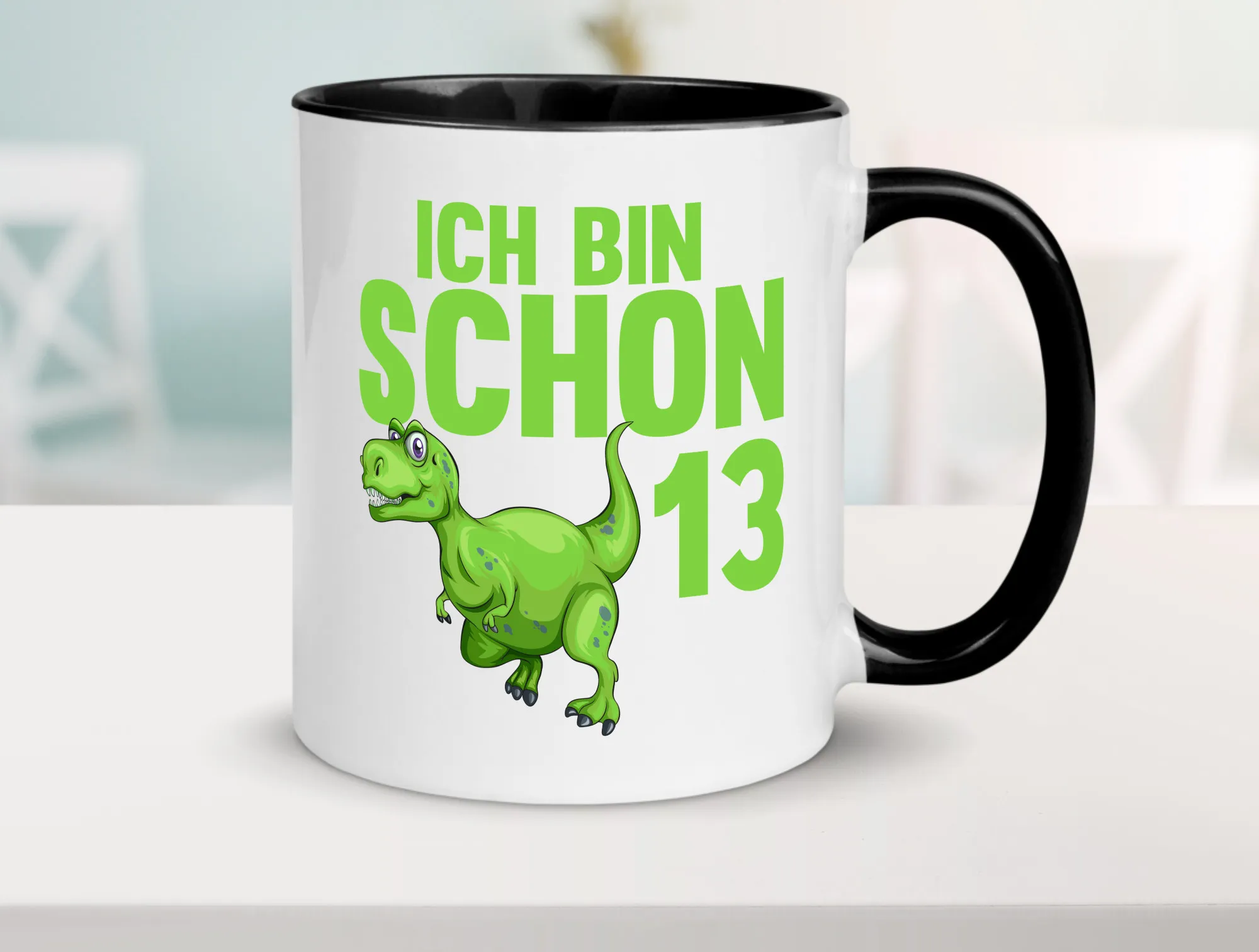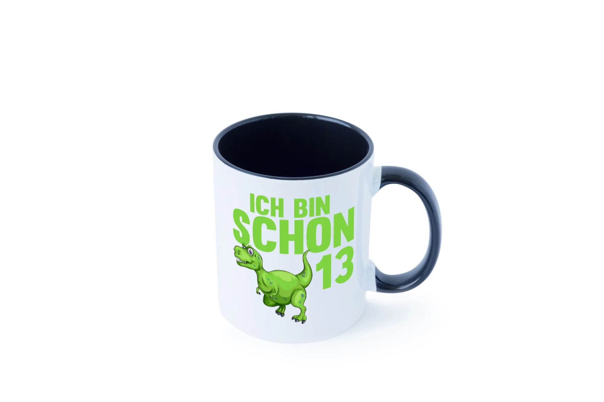 13. Geburtstag | 13 Jahre | Dino | Dinosaurier Farbige Tasse – Kaffeetasse / Geschenk / Familie