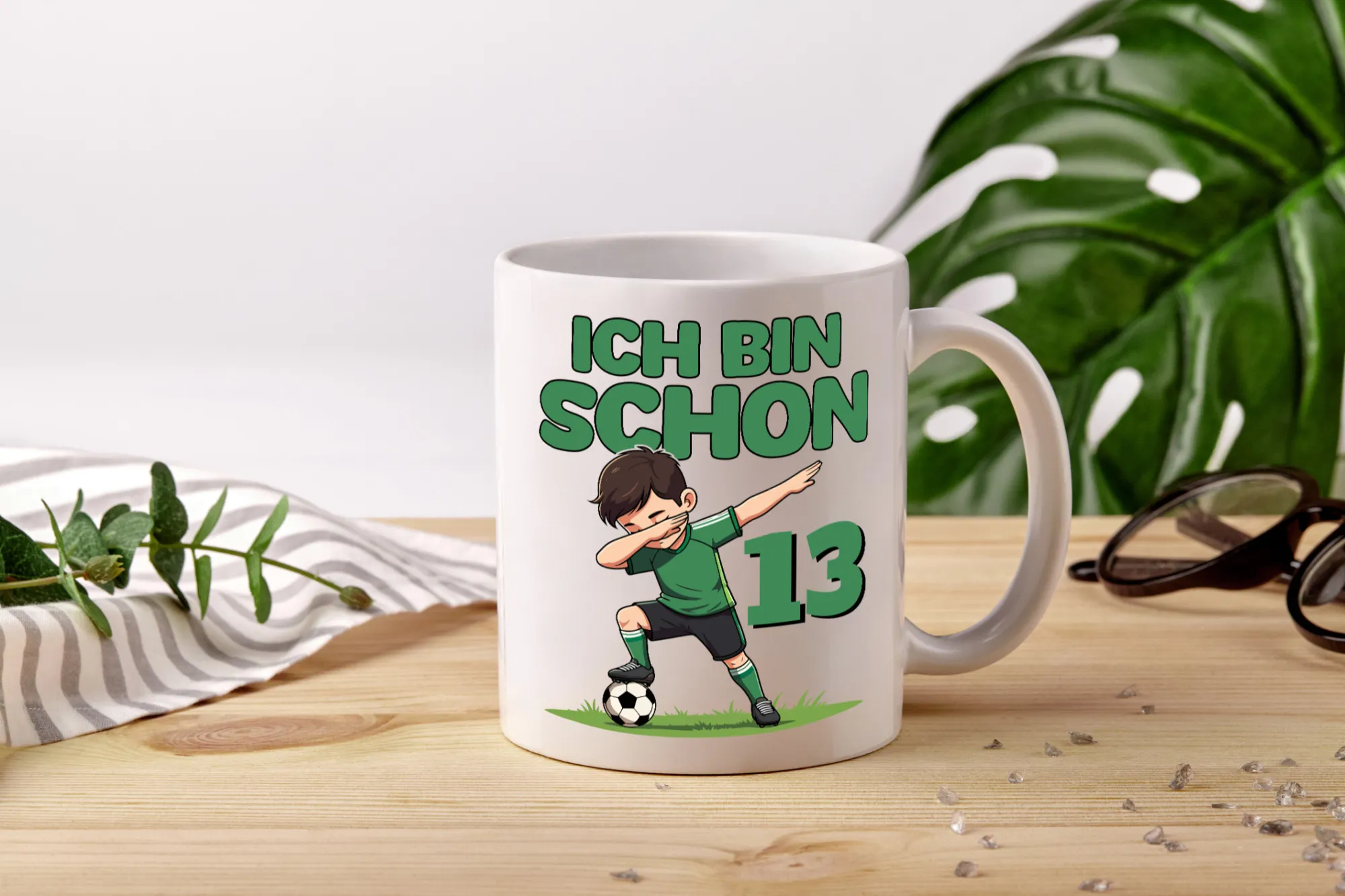 13. Geburtstag | 13 Jahre | Fußballer – Tasse Weiß – Kaffeetasse / Geschenk / Familie