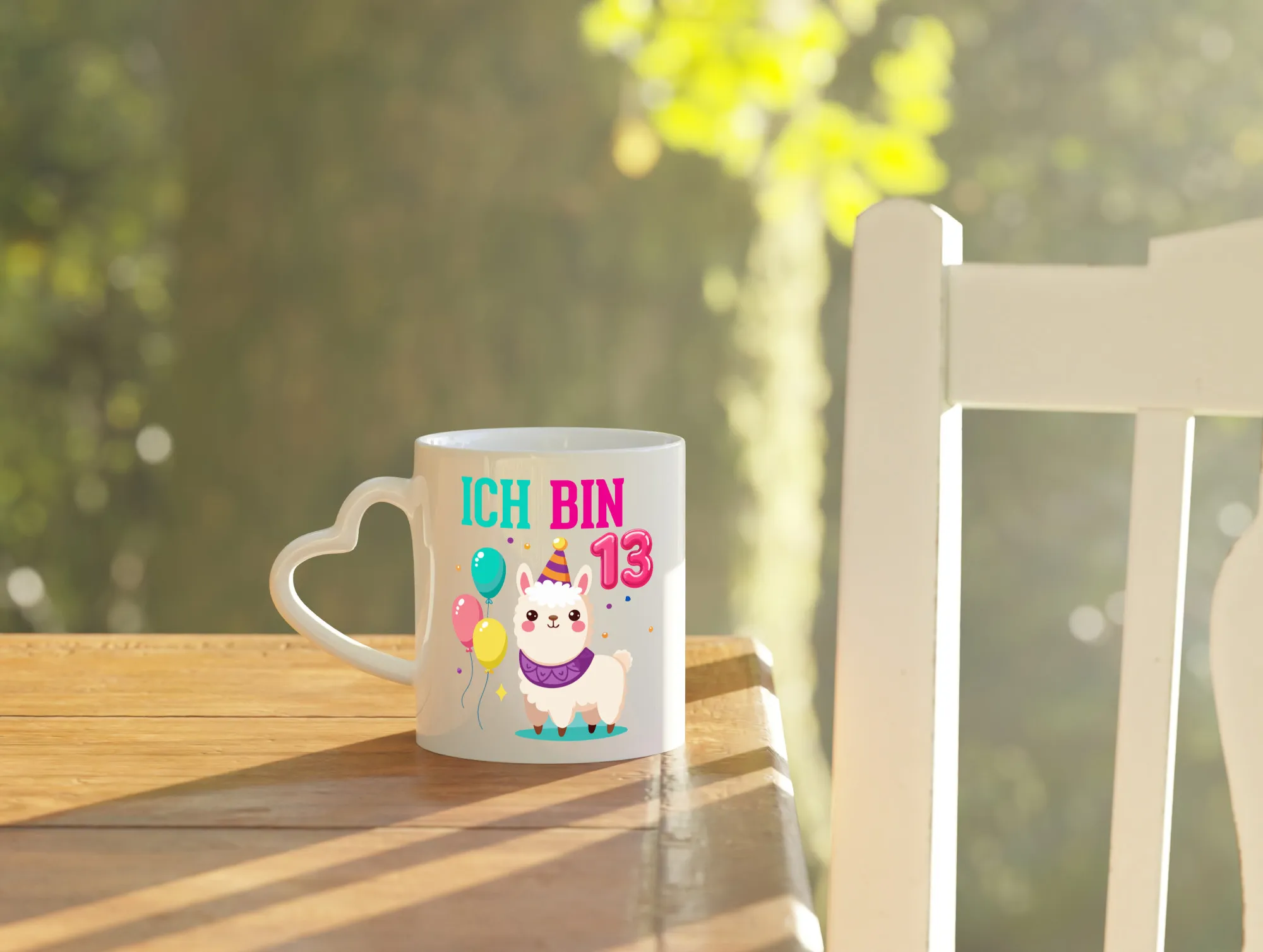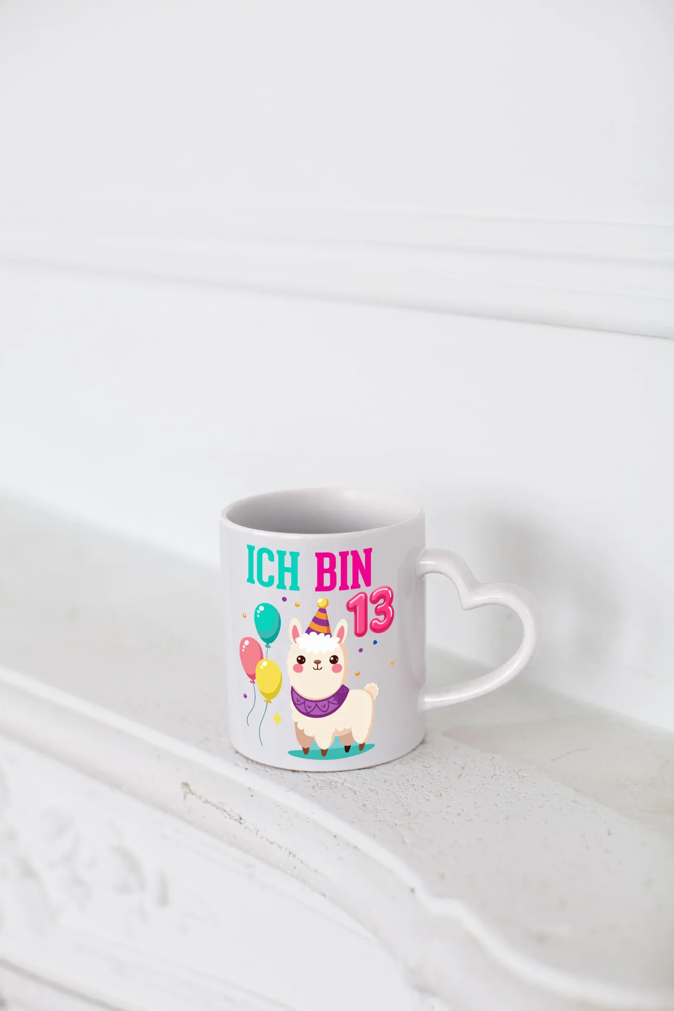 13. Geburtstag | 13 Jahre | Lama | Alpaka – Herzhenkel Tasse – Kaffeetasse / Geschenk / Familie