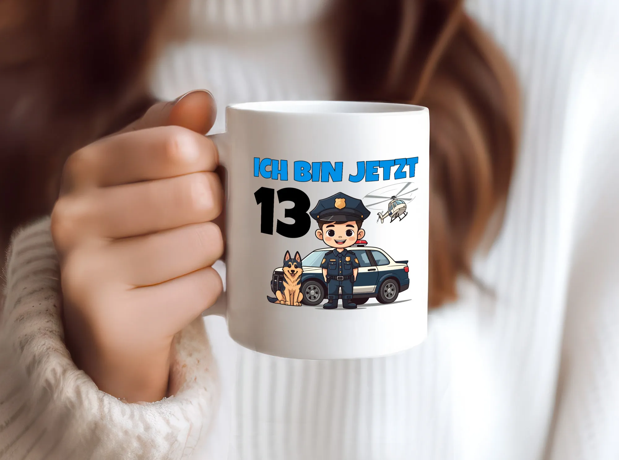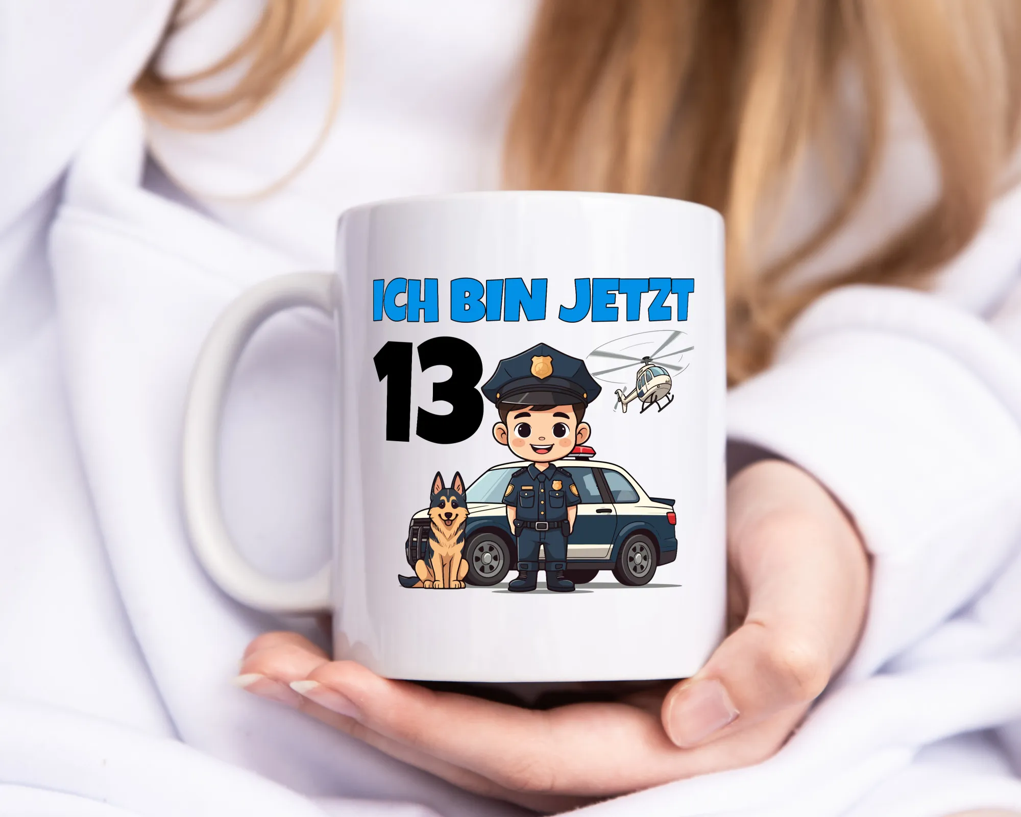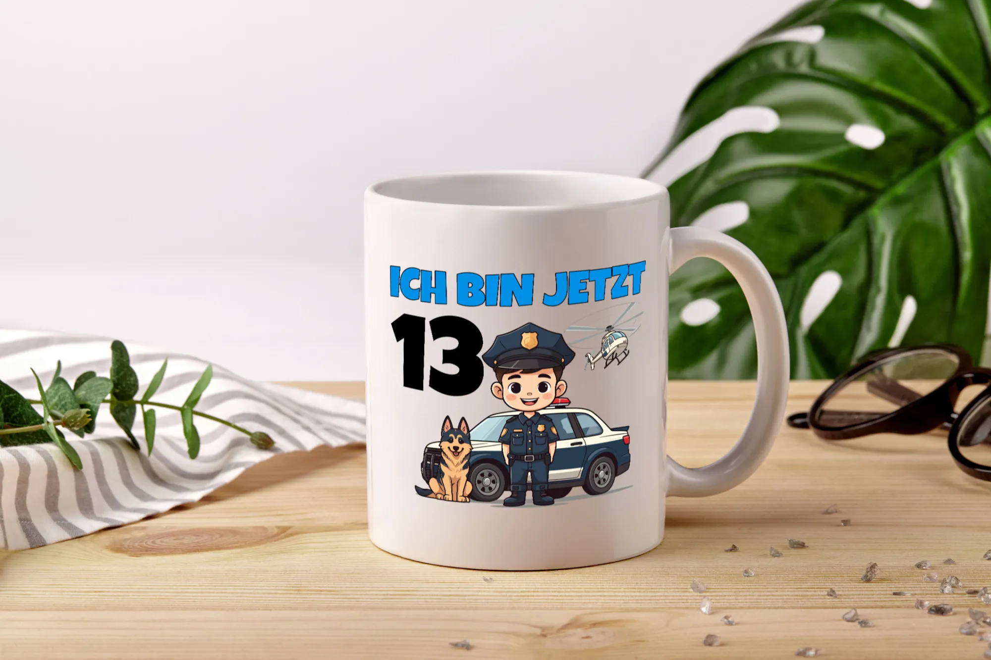 13. Geburtstag | 13 Jahre | Polizei Kind | Polizeiauto – Tasse Weiß – Kaffeetasse / Geschenk / Familie