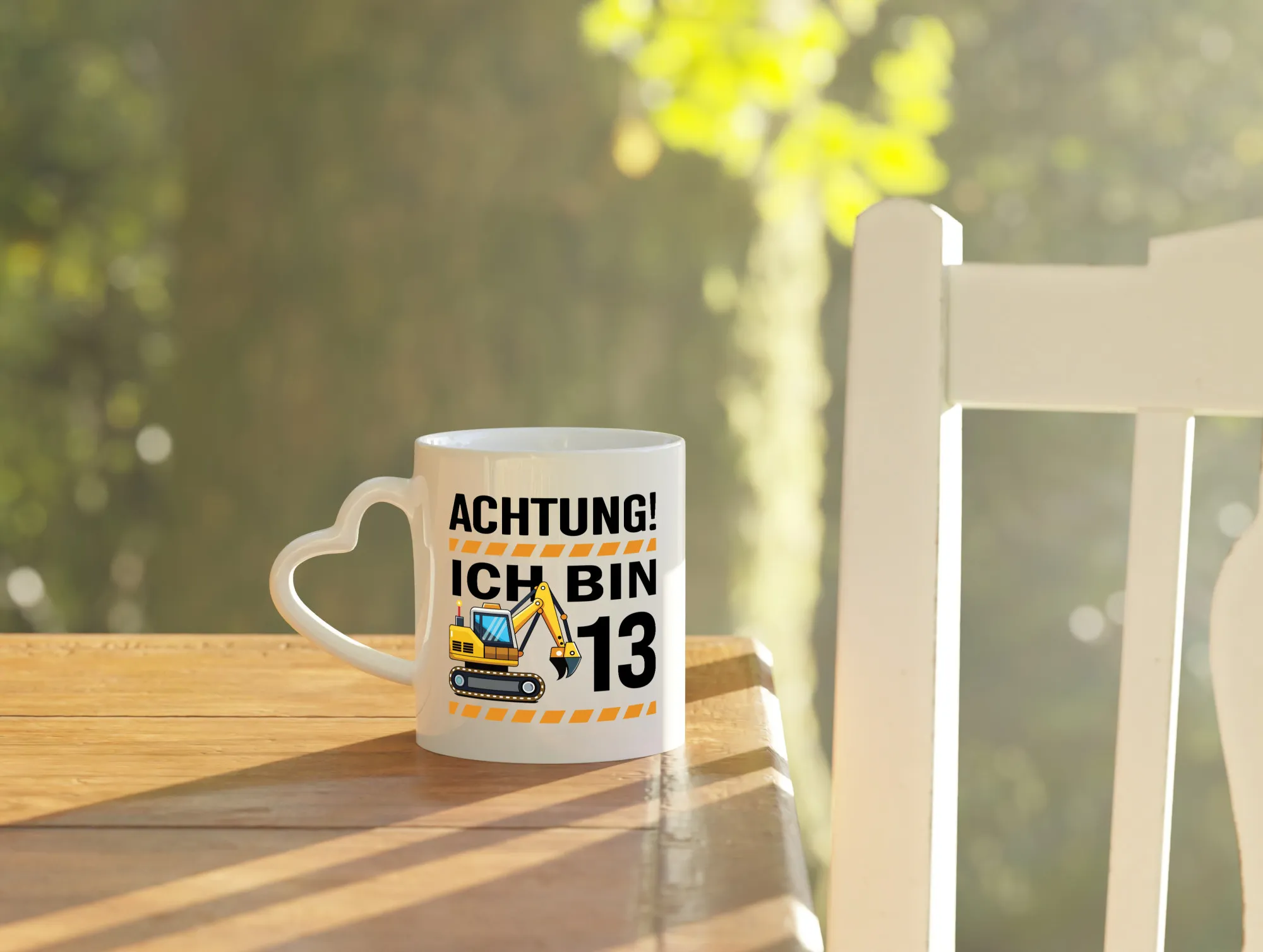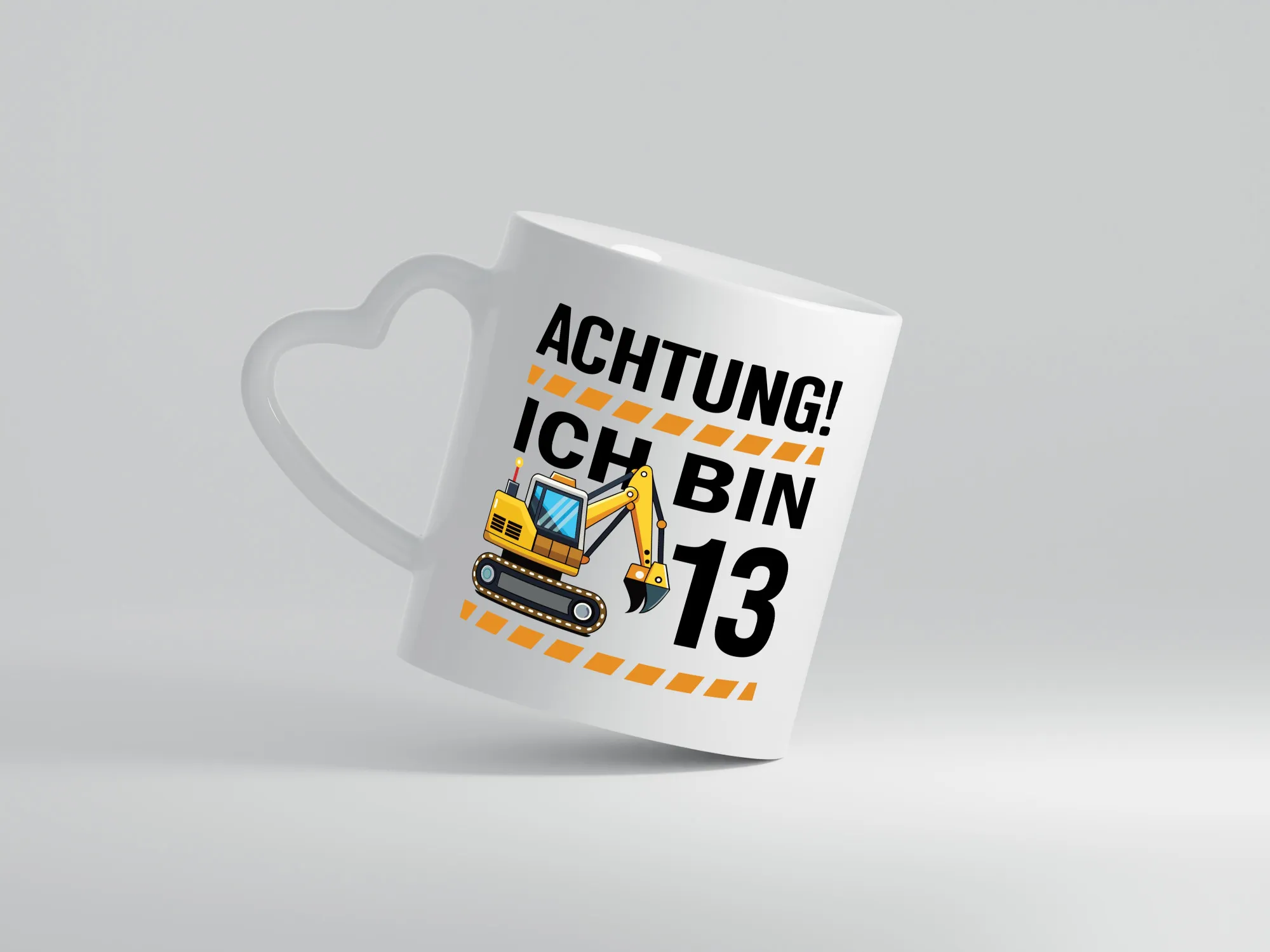 13 Geburtstag Ich bin 13 | Bagger | Bagger Junge – Herzhenkel Tasse – Kaffeetasse / Geschenk / Familie