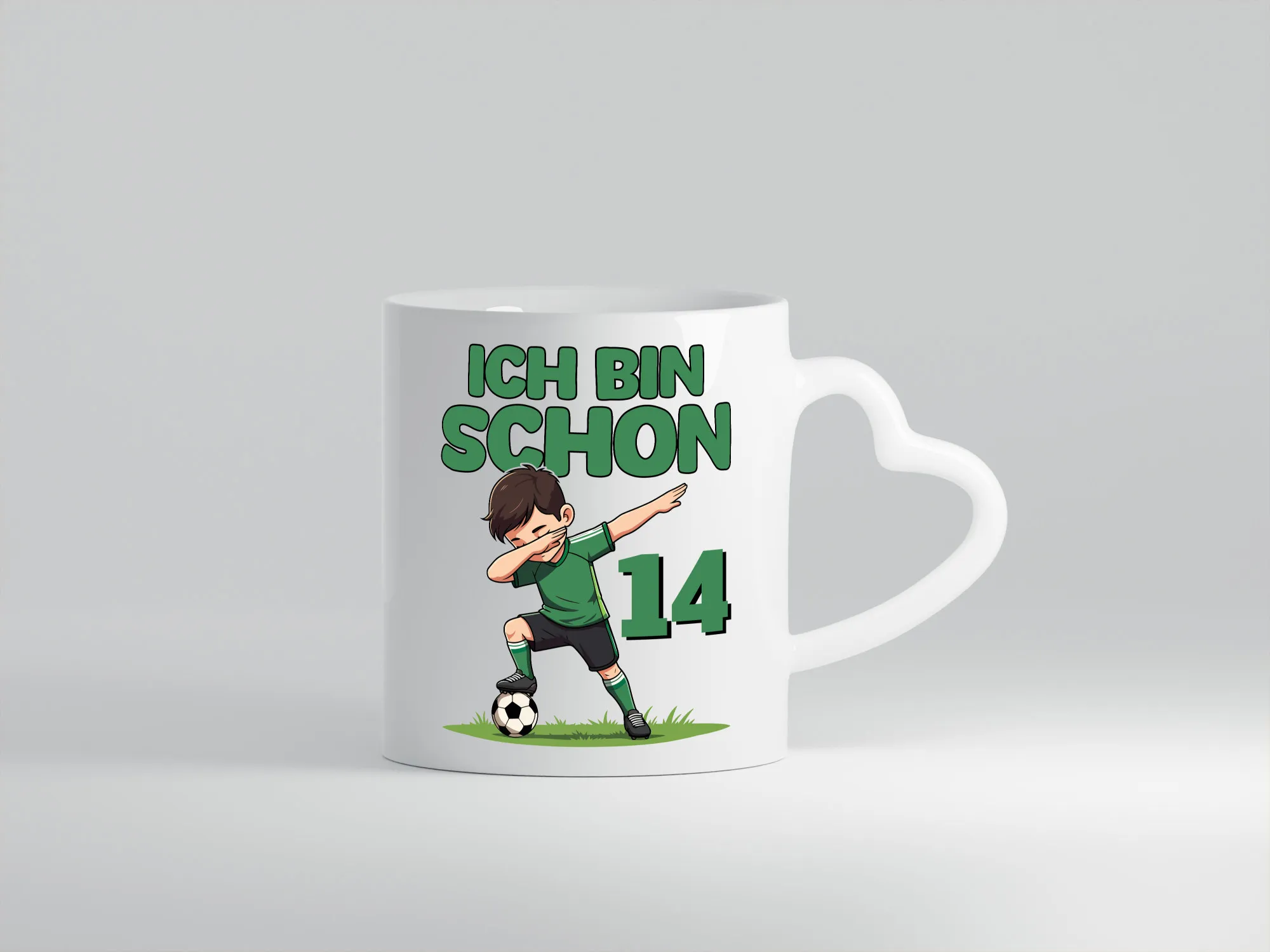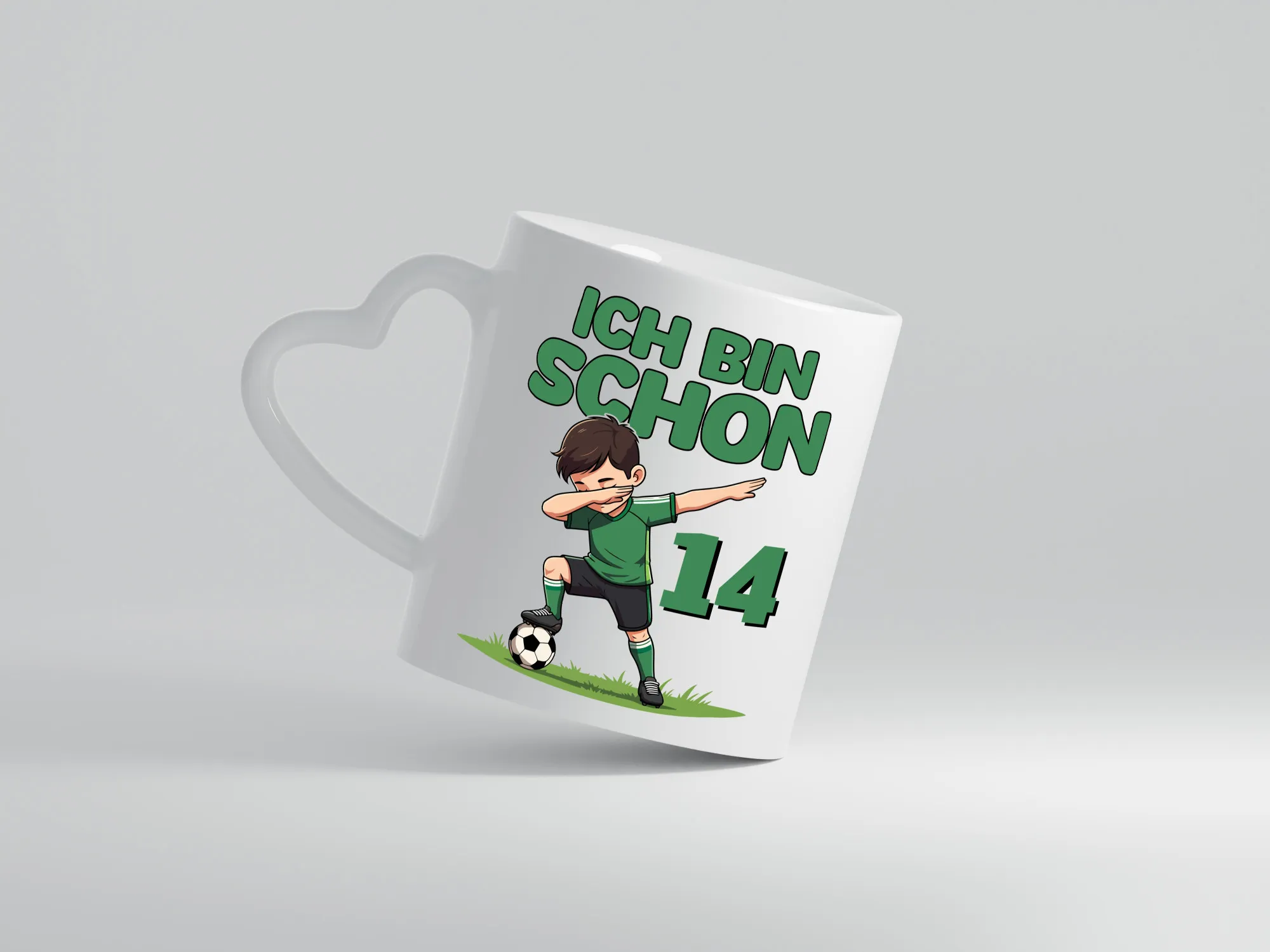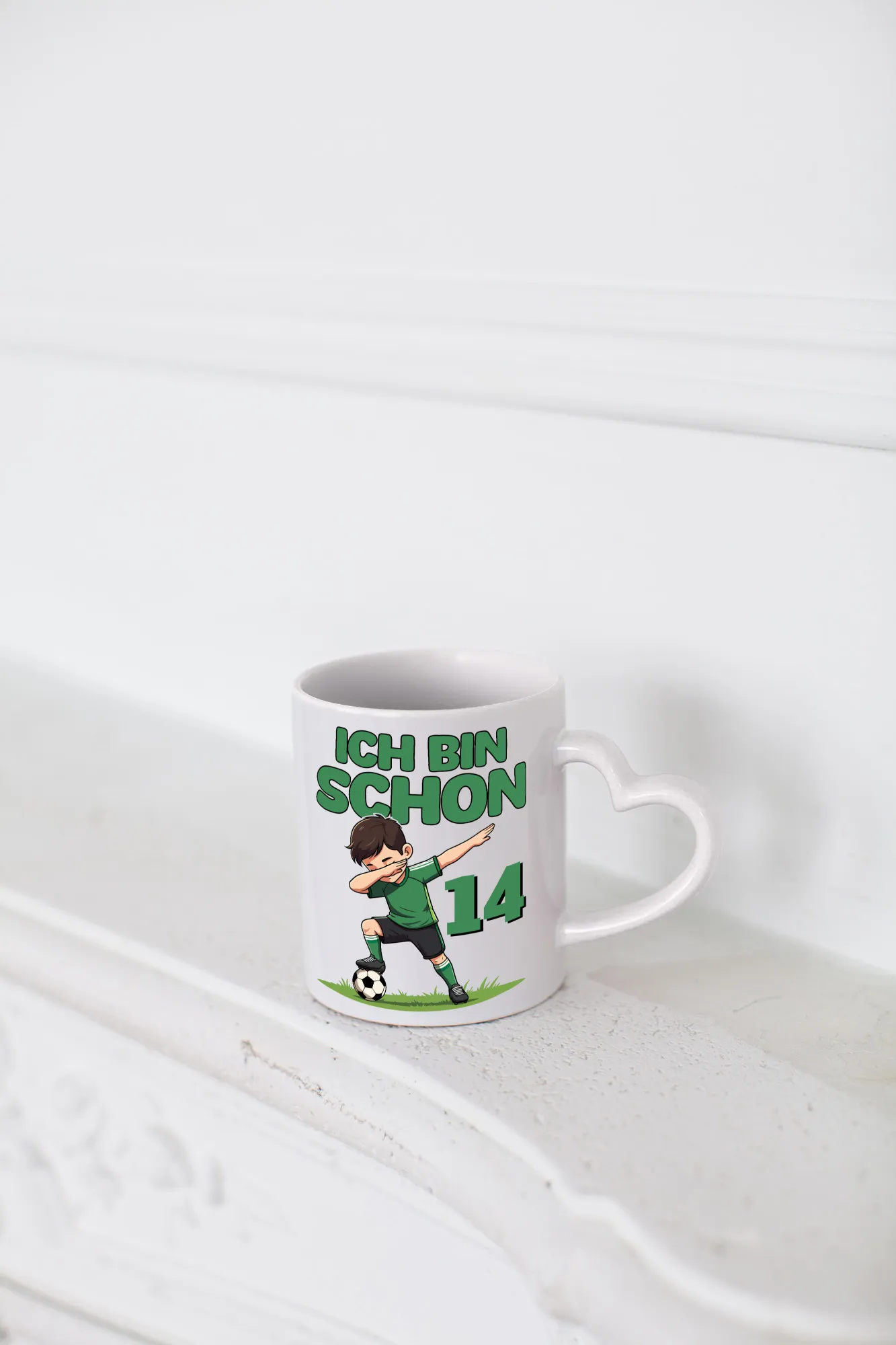 14. Geburtstag | 14 Jahre | Fußballer – Herzhenkel Tasse – Kaffeetasse / Geschenk / Familie