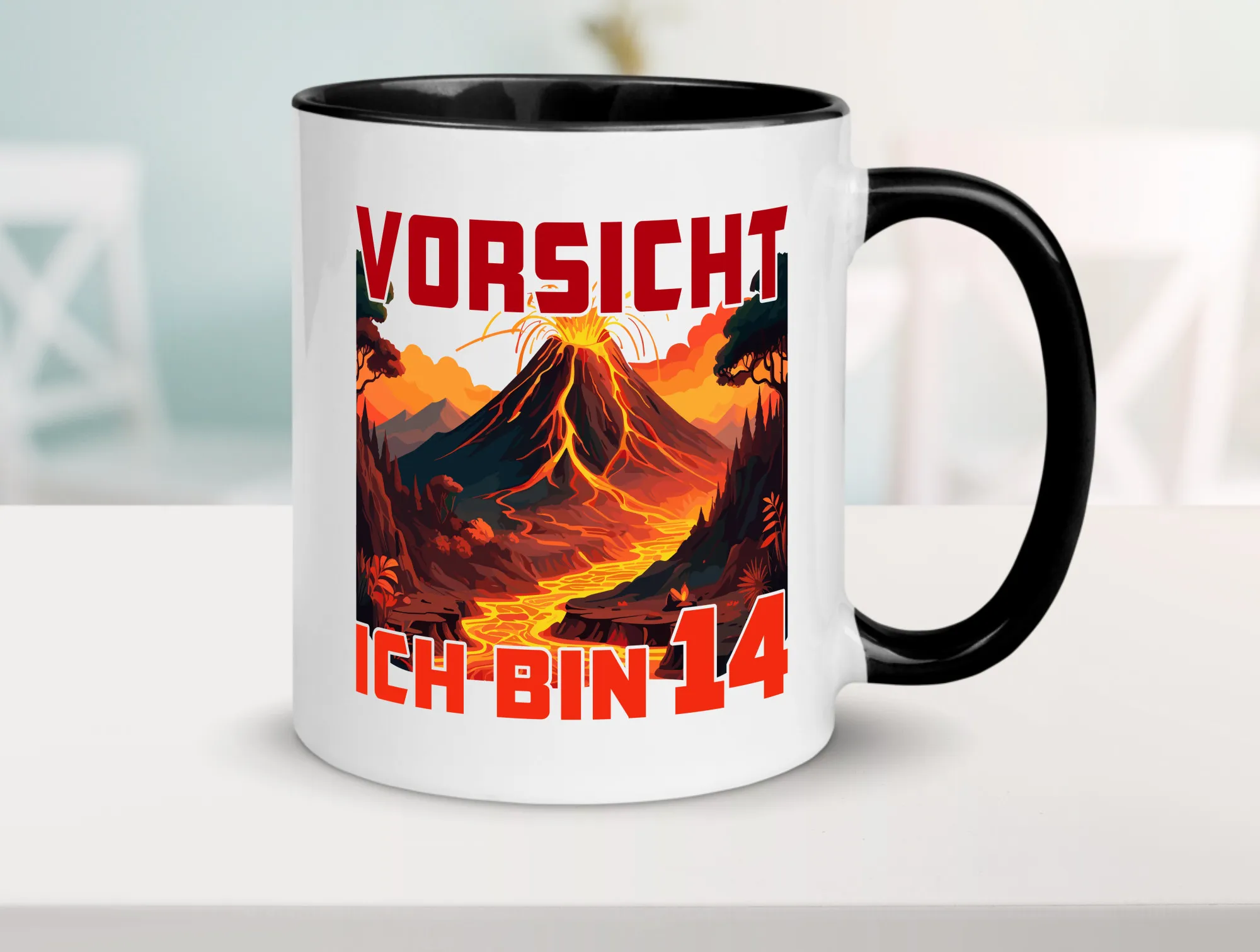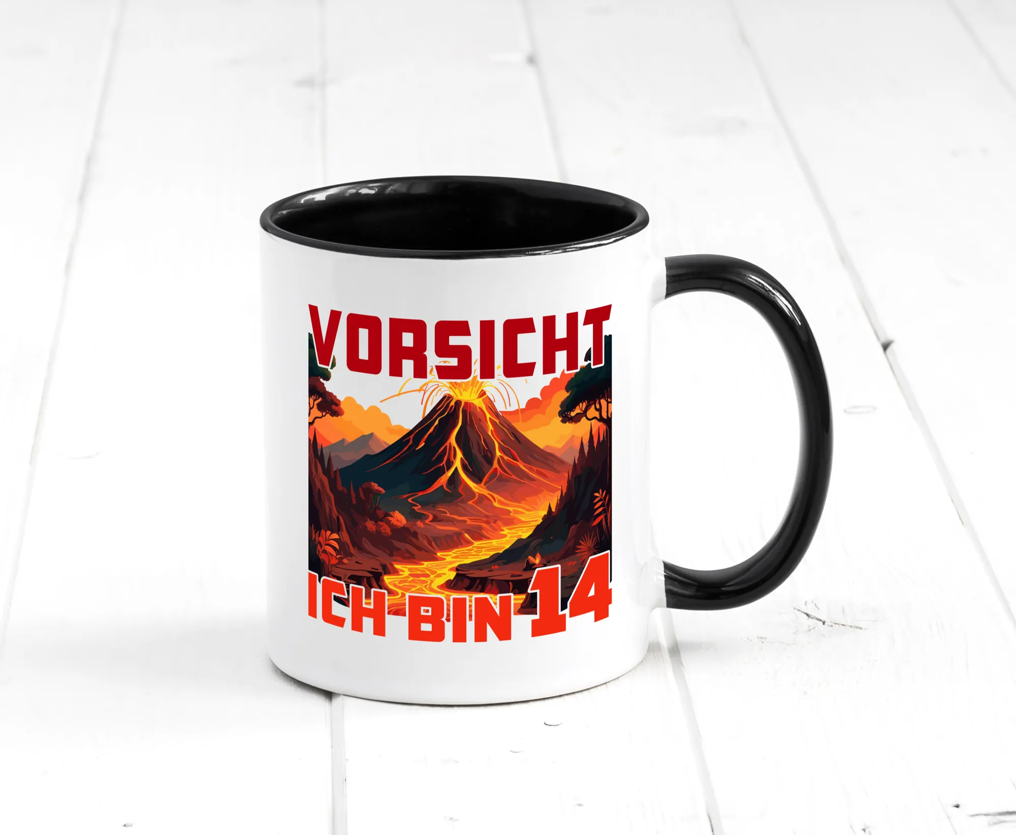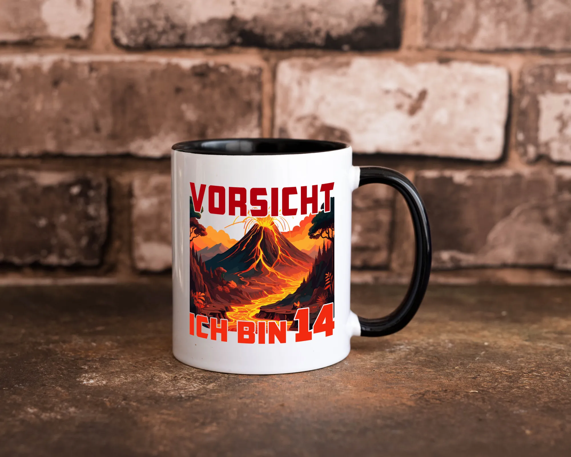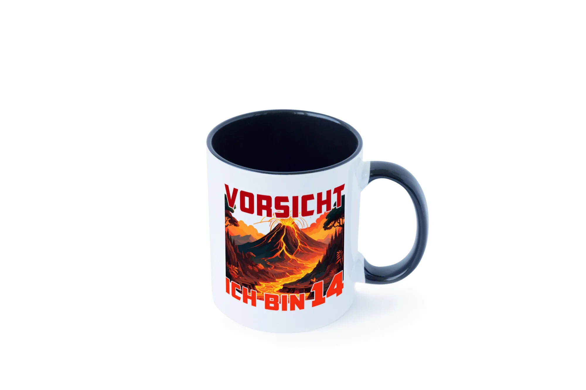 14. Geburtstag | 14 Jahre | Vulkanausbruch | Vulkan Farbige Tasse – Kaffeetasse / Geschenk / Familie