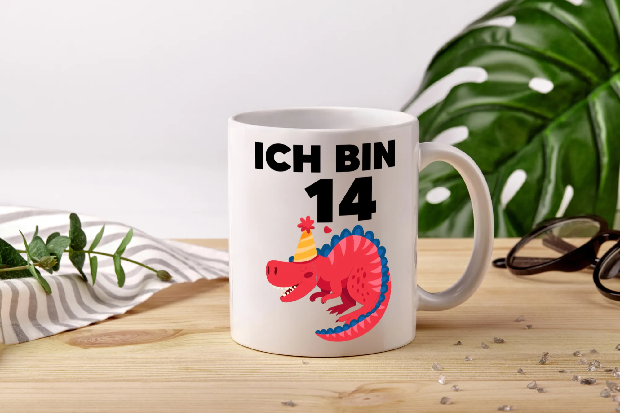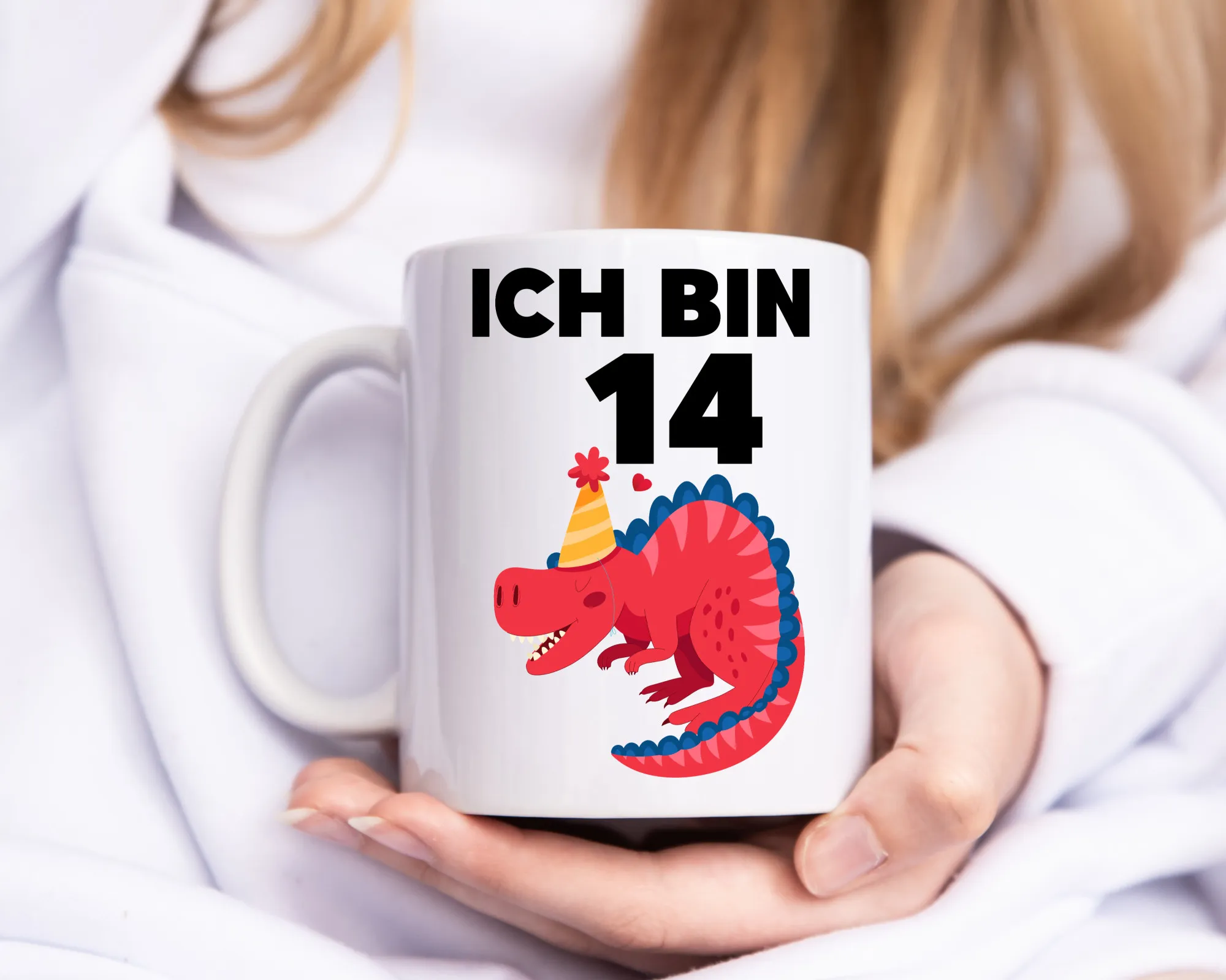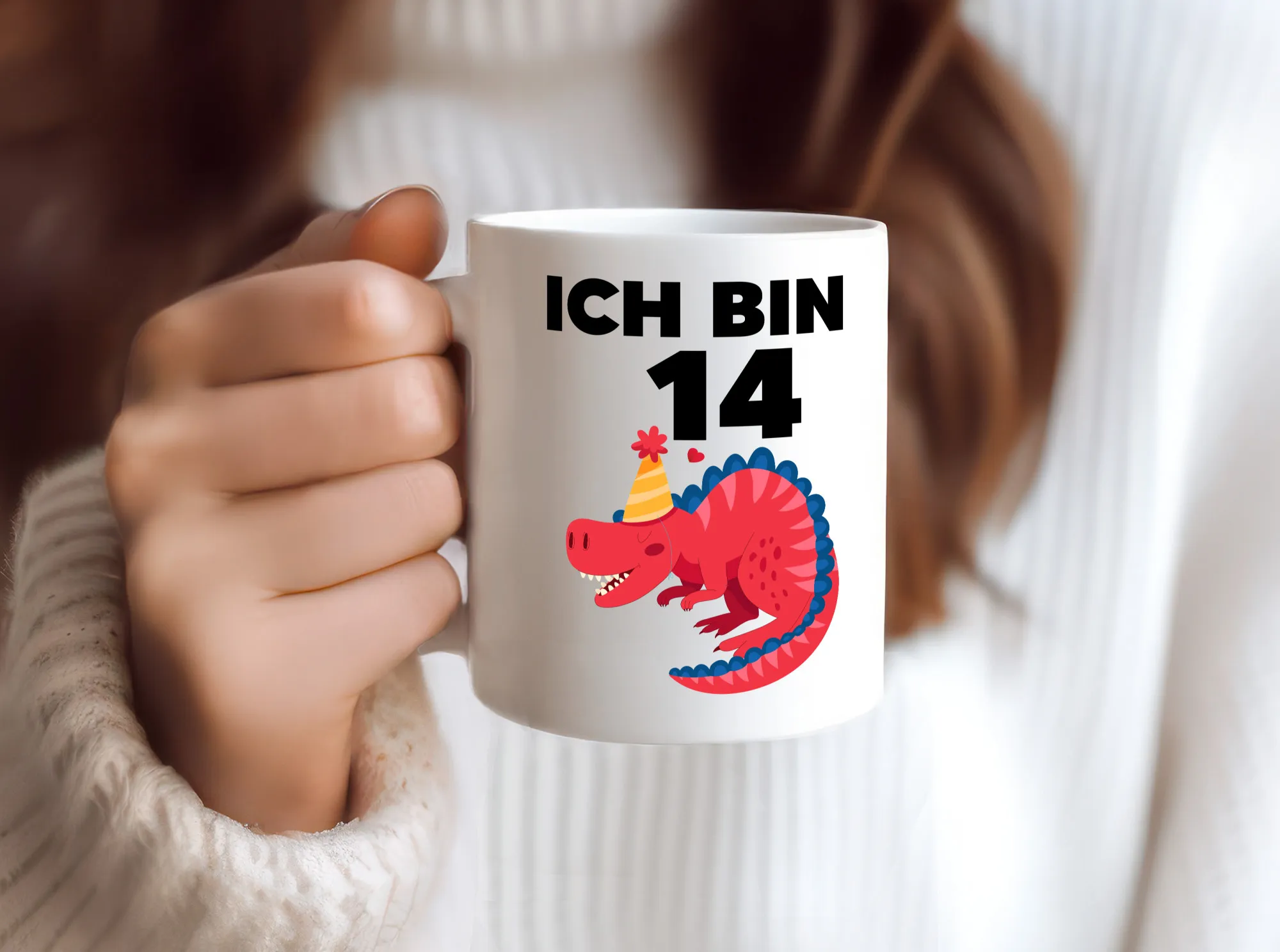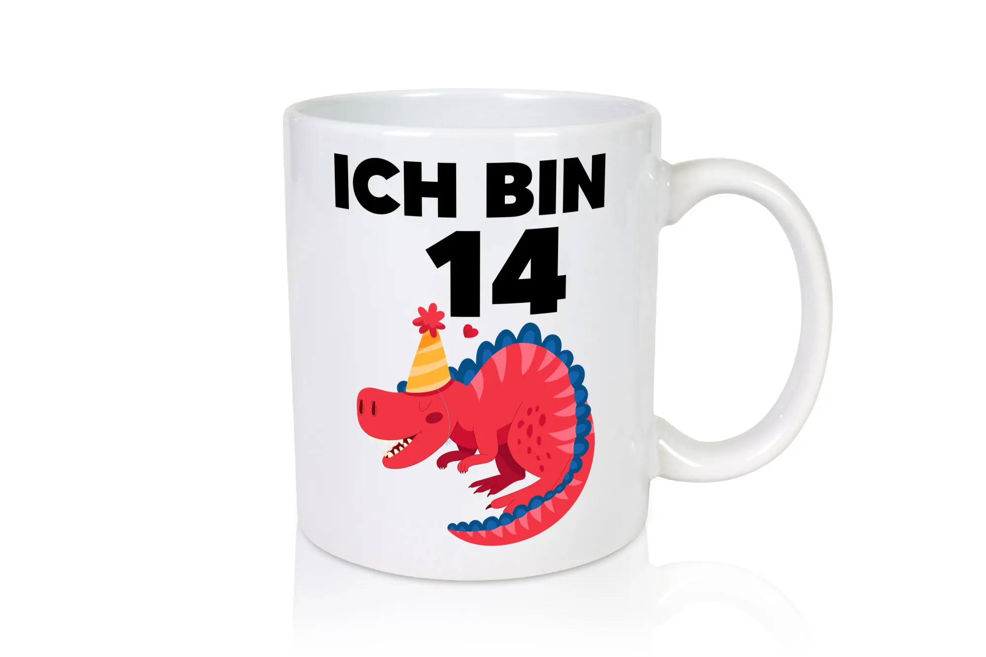 14. Geburtstag | Dino | Dinosaurier | 14 Jahre – Tasse Weiß – Kaffeetasse / Geschenk / Familie
