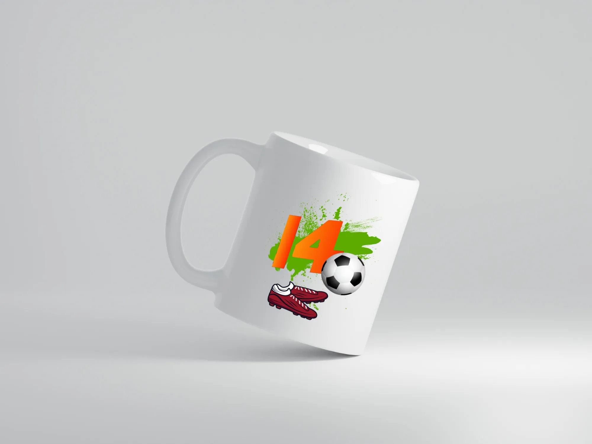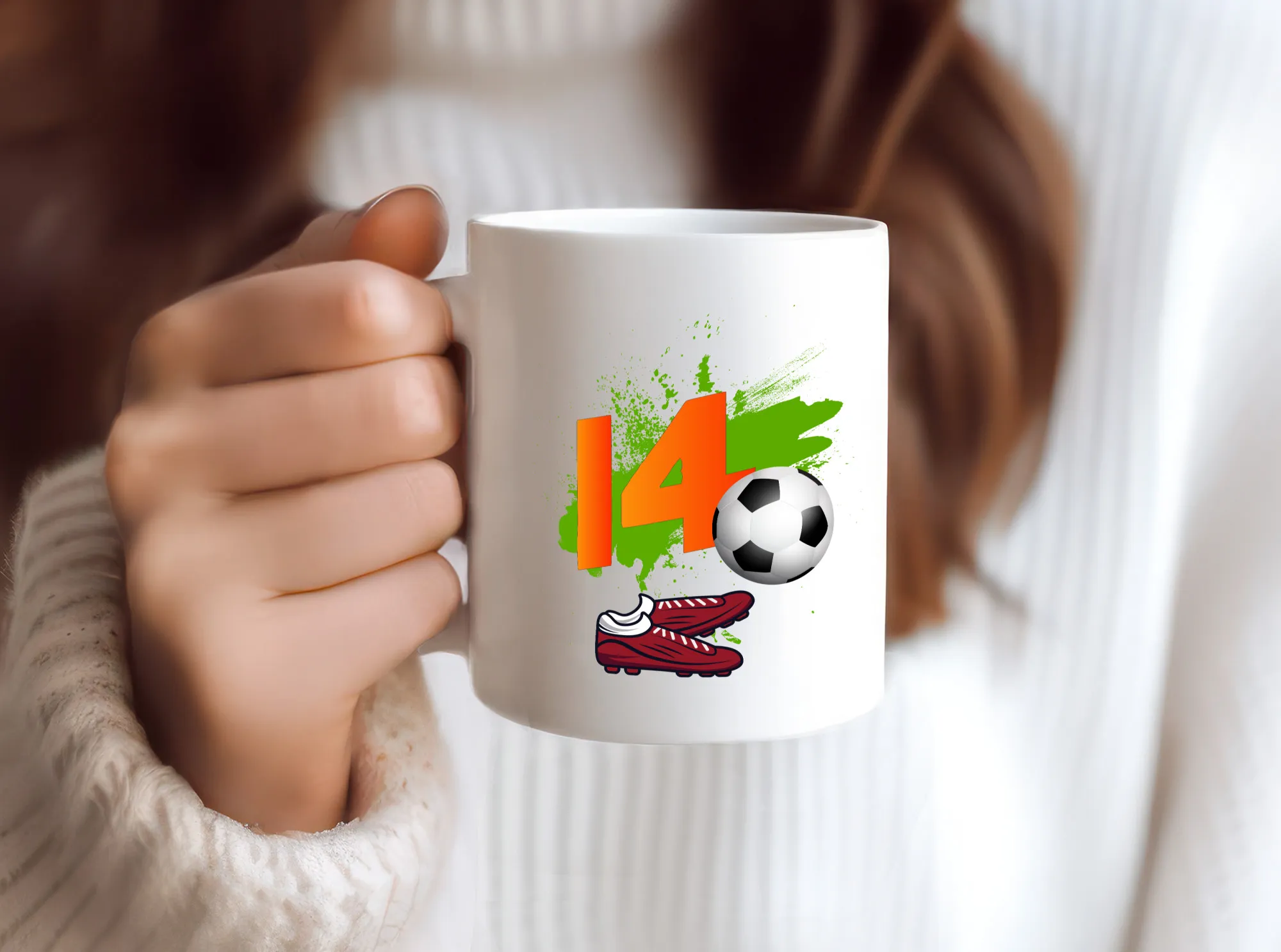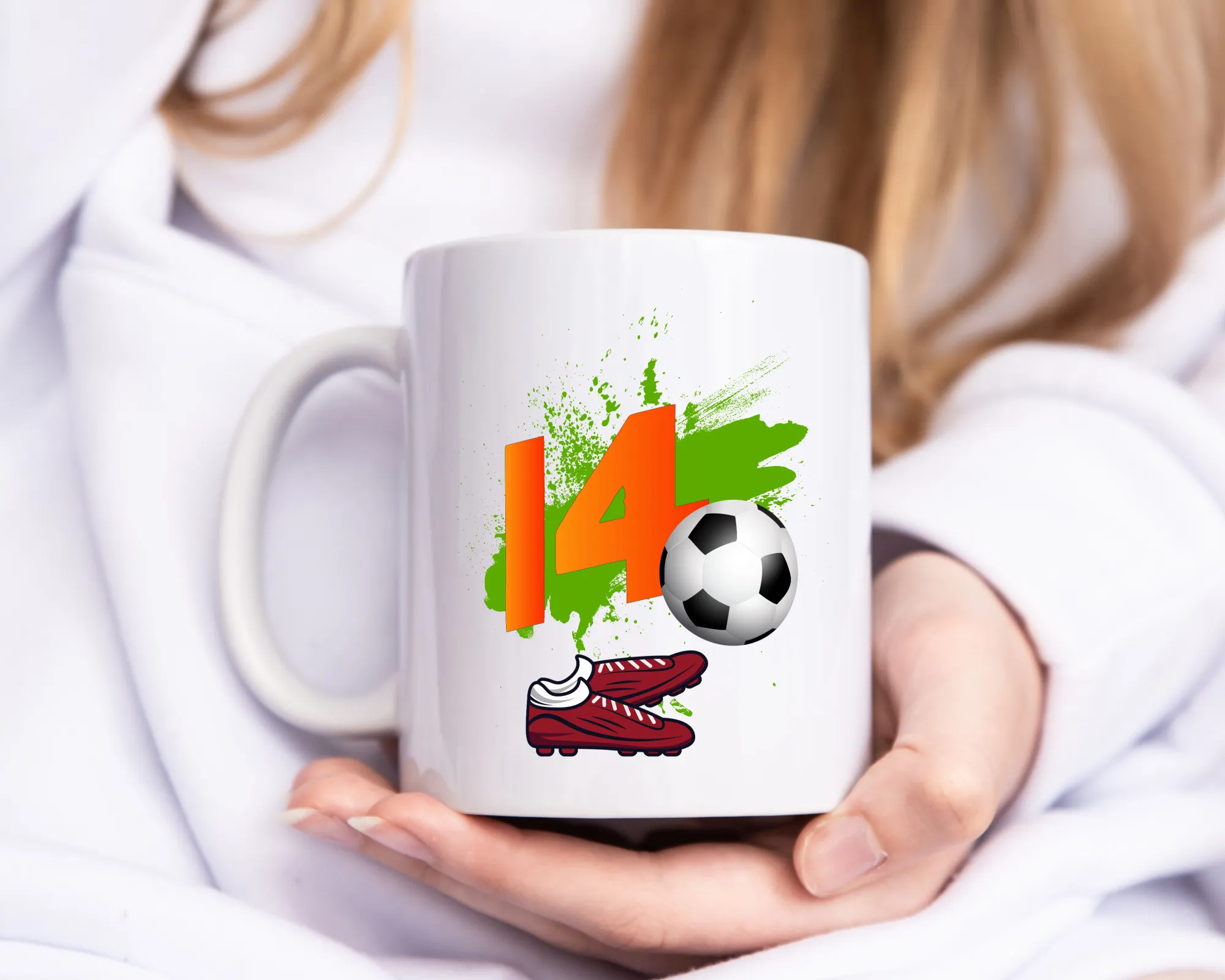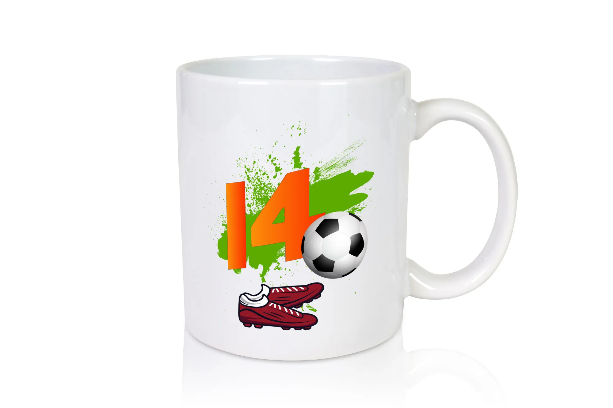 14. Geburtstag | Jungen Fußball | Fußballspieler – Tasse Weiß – Kaffeetasse / Geschenk / Familie