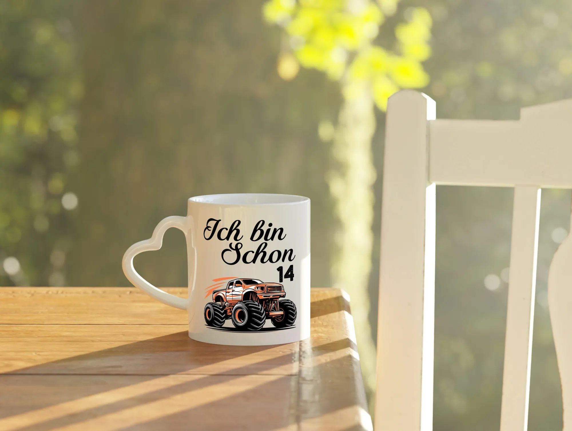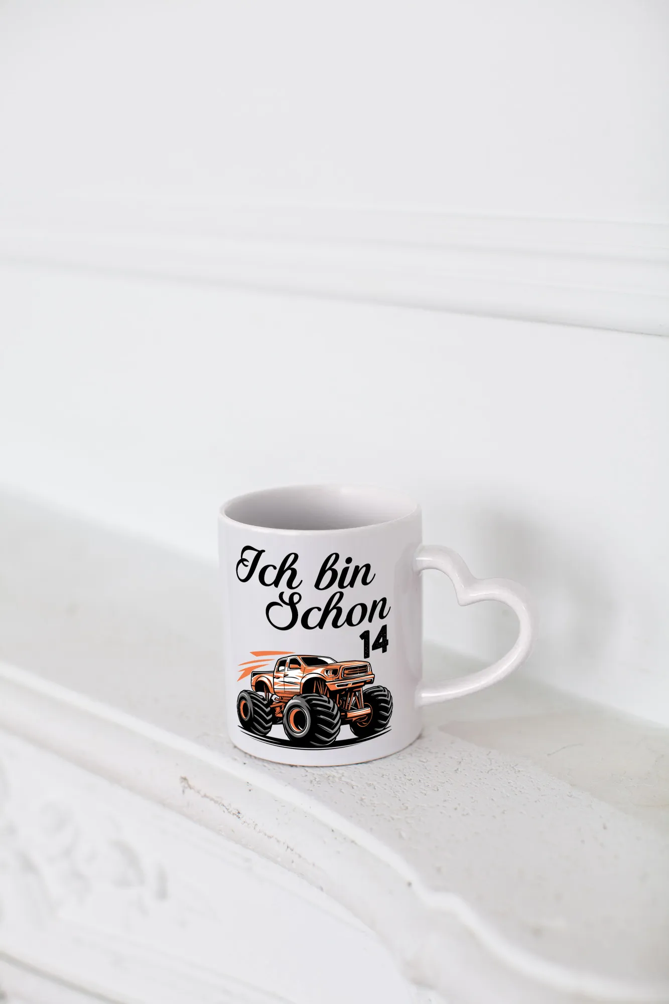 14. Geburtstag | Monster truck | 14 Jahre – Herzhenkel Tasse – Kaffeetasse / Geschenk / Familie