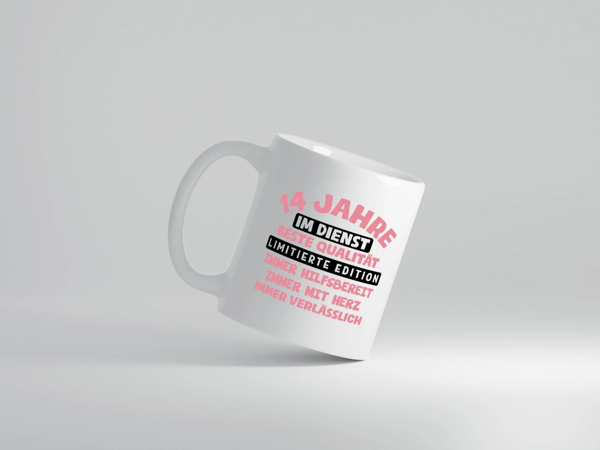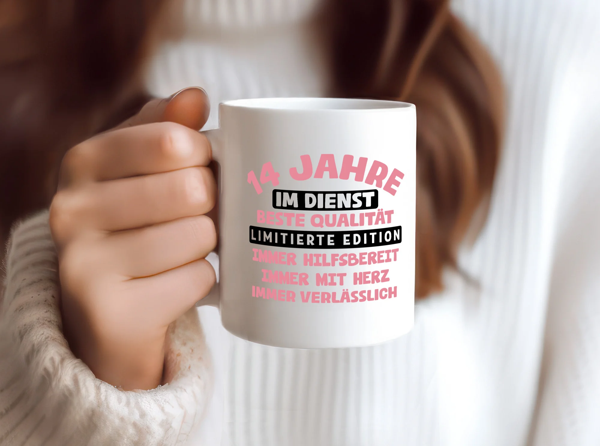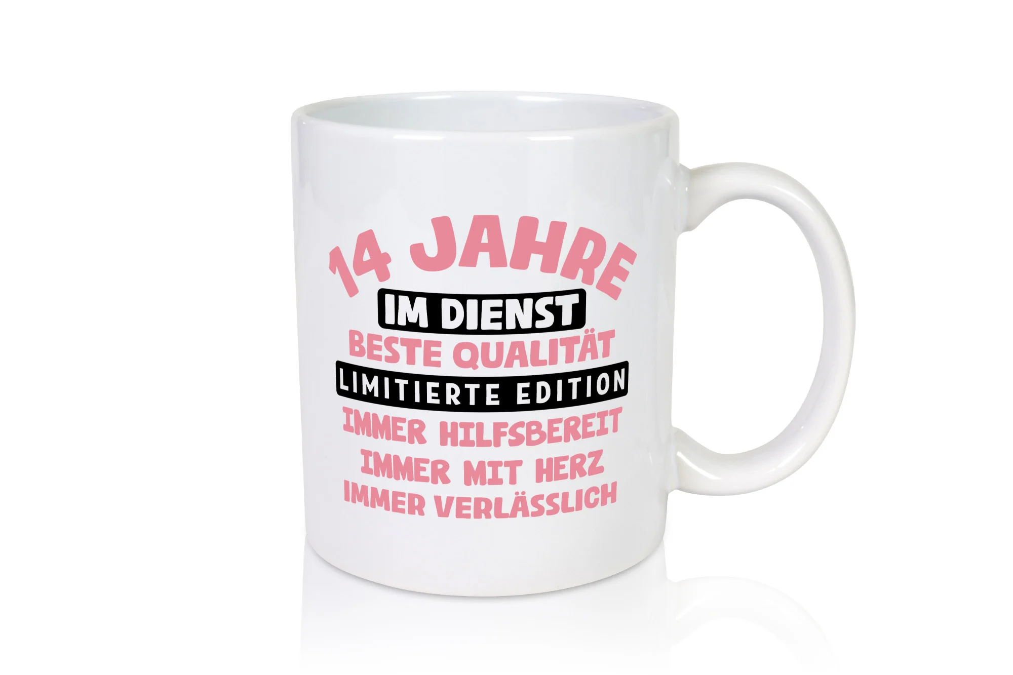 14 Jahre im Dienst | Jubiläum | Arbeit v11 – Tasse Weiß – Kaffeetasse / Geschenk / Familie