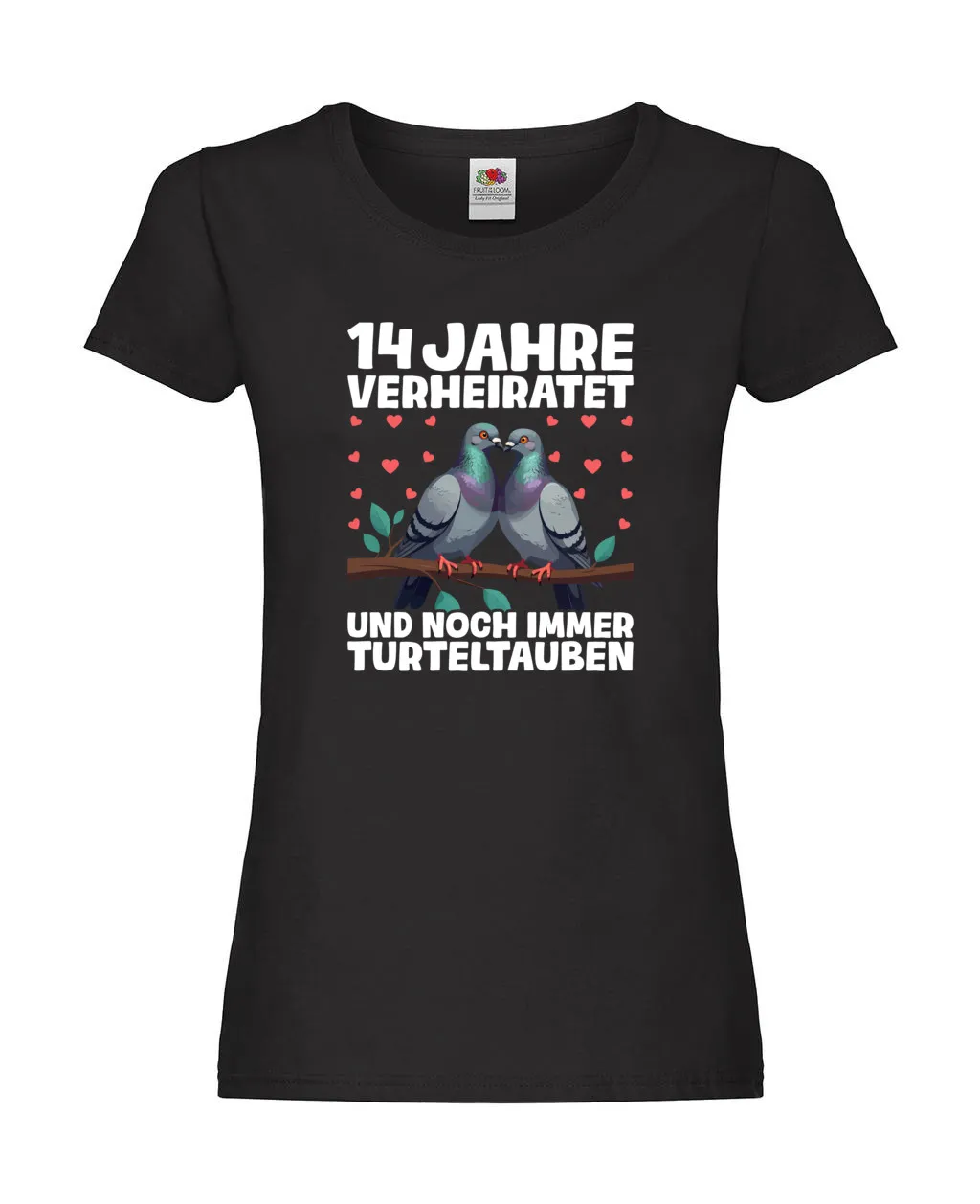 14 Jahre verheiratet | Turteltauben | Ehe | Ehepaar Damen Shirt Schwarz