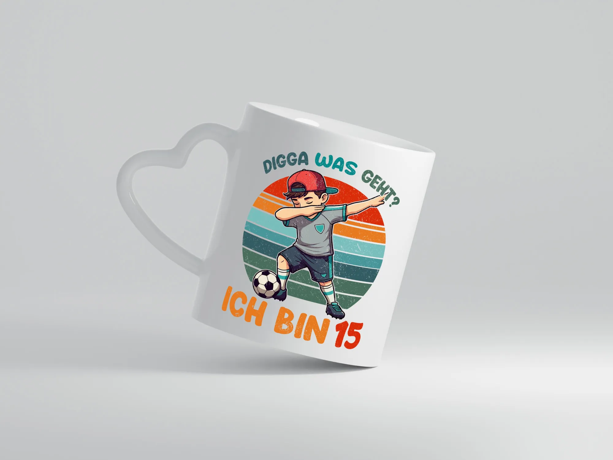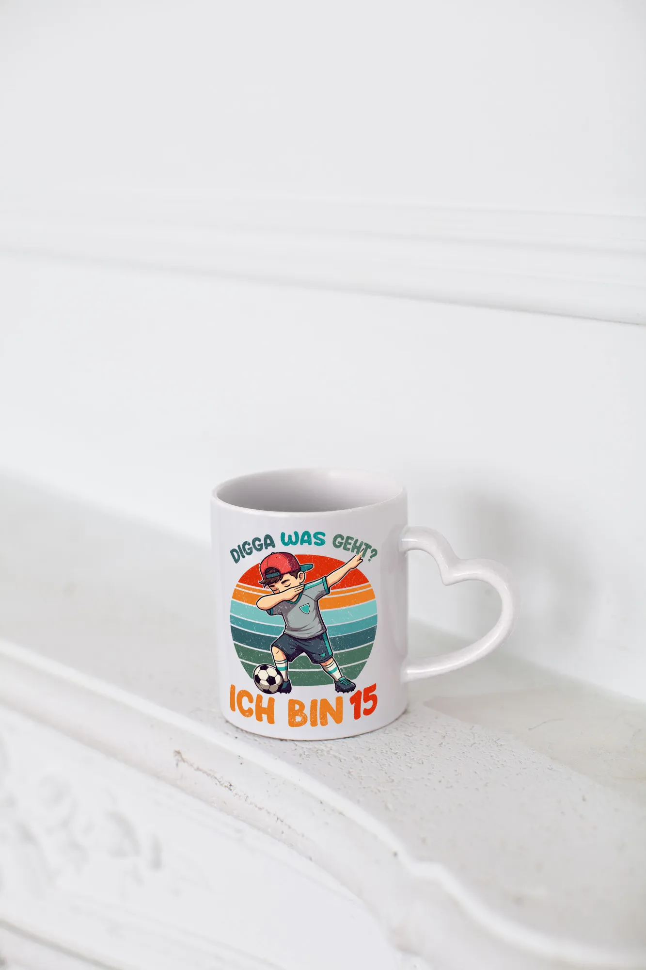 15. Geburtstag | 15 Jahre | digga ich bin 15 | Dabbing – Herzhenkel Tasse – Kaffeetasse / Geschenk / Familie