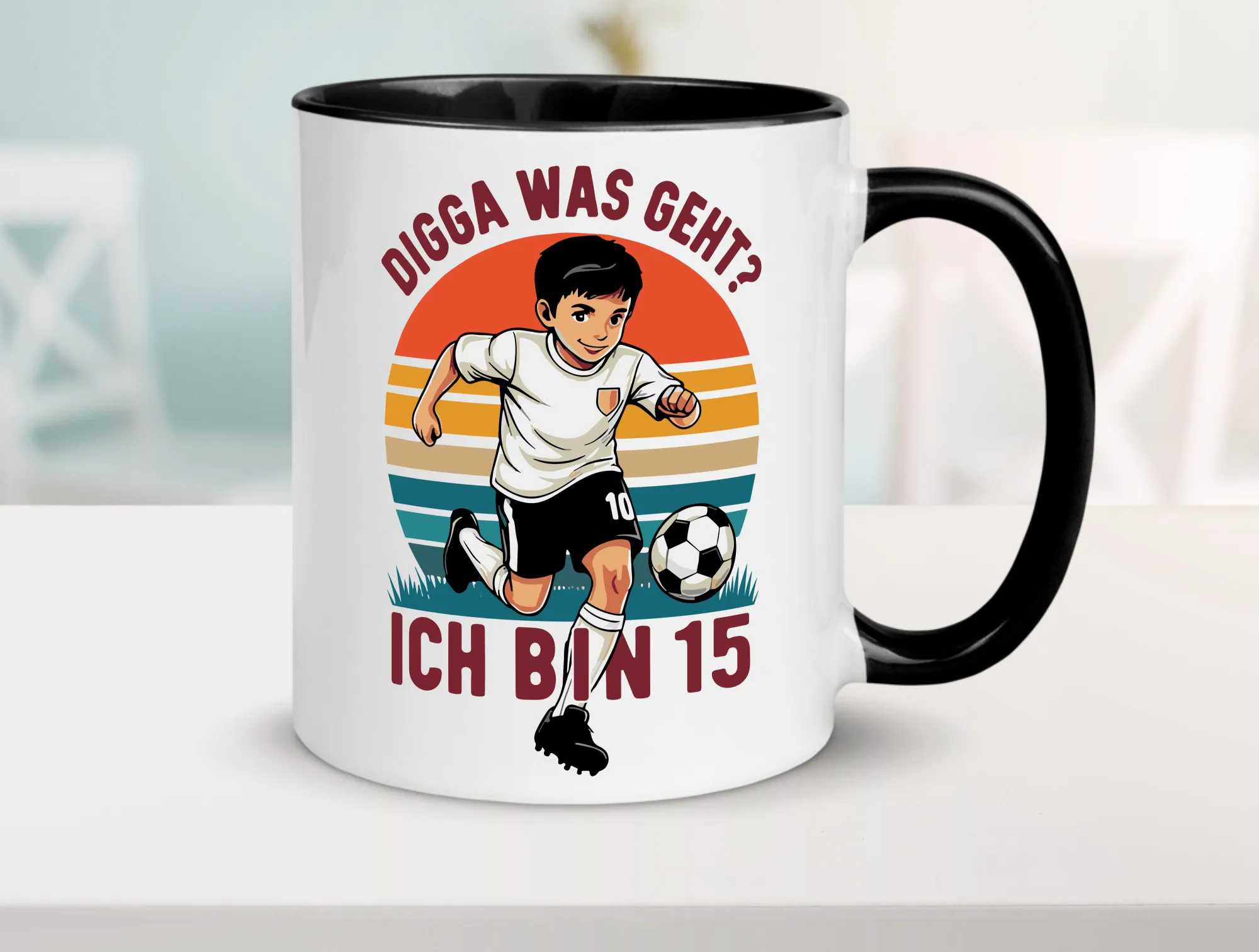 15 Geburtstag | 15 Jahre | Digga was geht ab | Fußball Farbige Tasse – Kaffeetasse / Geschenk / Familie