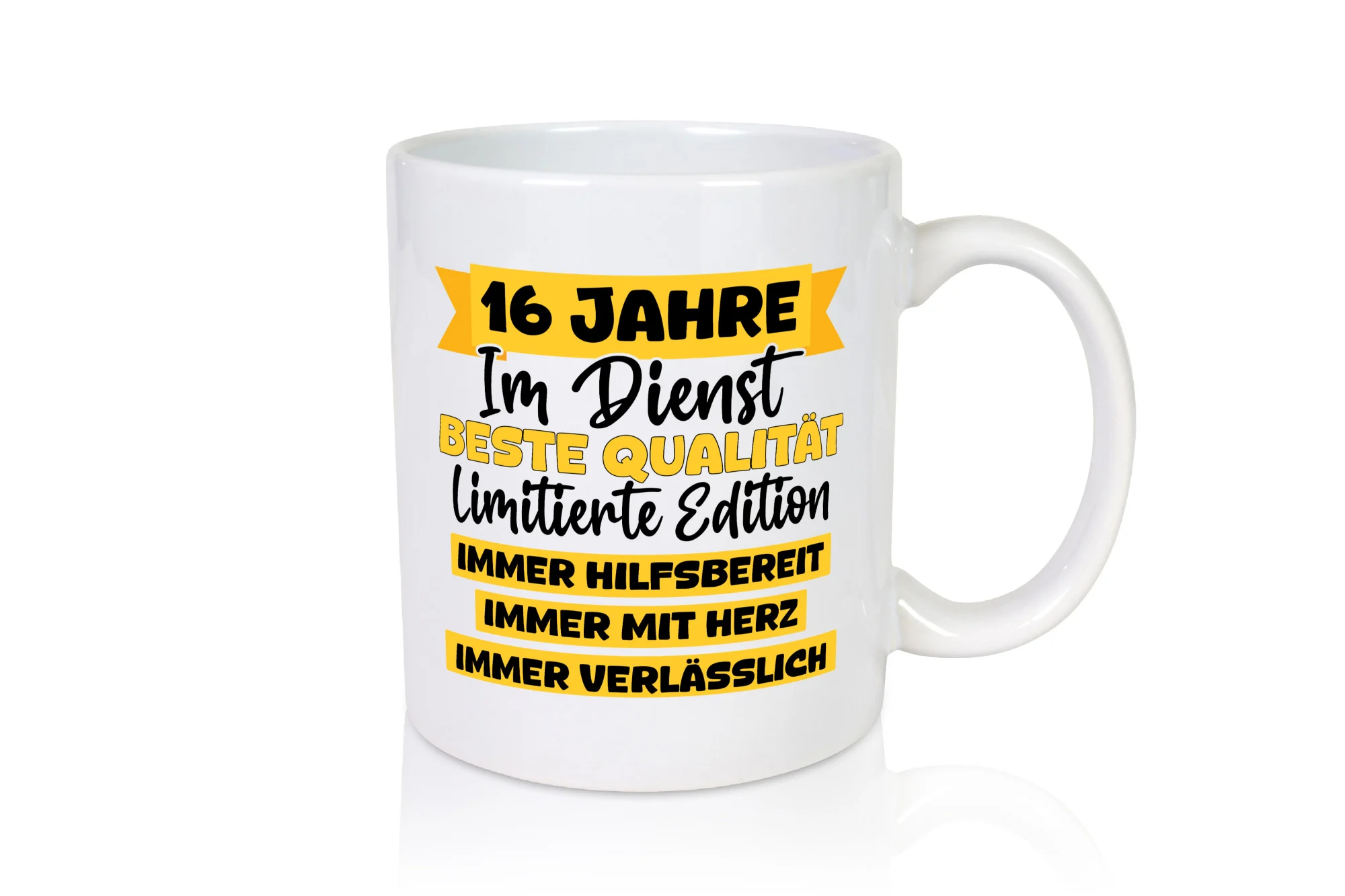 16 Jahre im Dienst | Jubiläum | Arbeit v8 – Tasse Weiß – Kaffeetasse / Geschenk / Familie