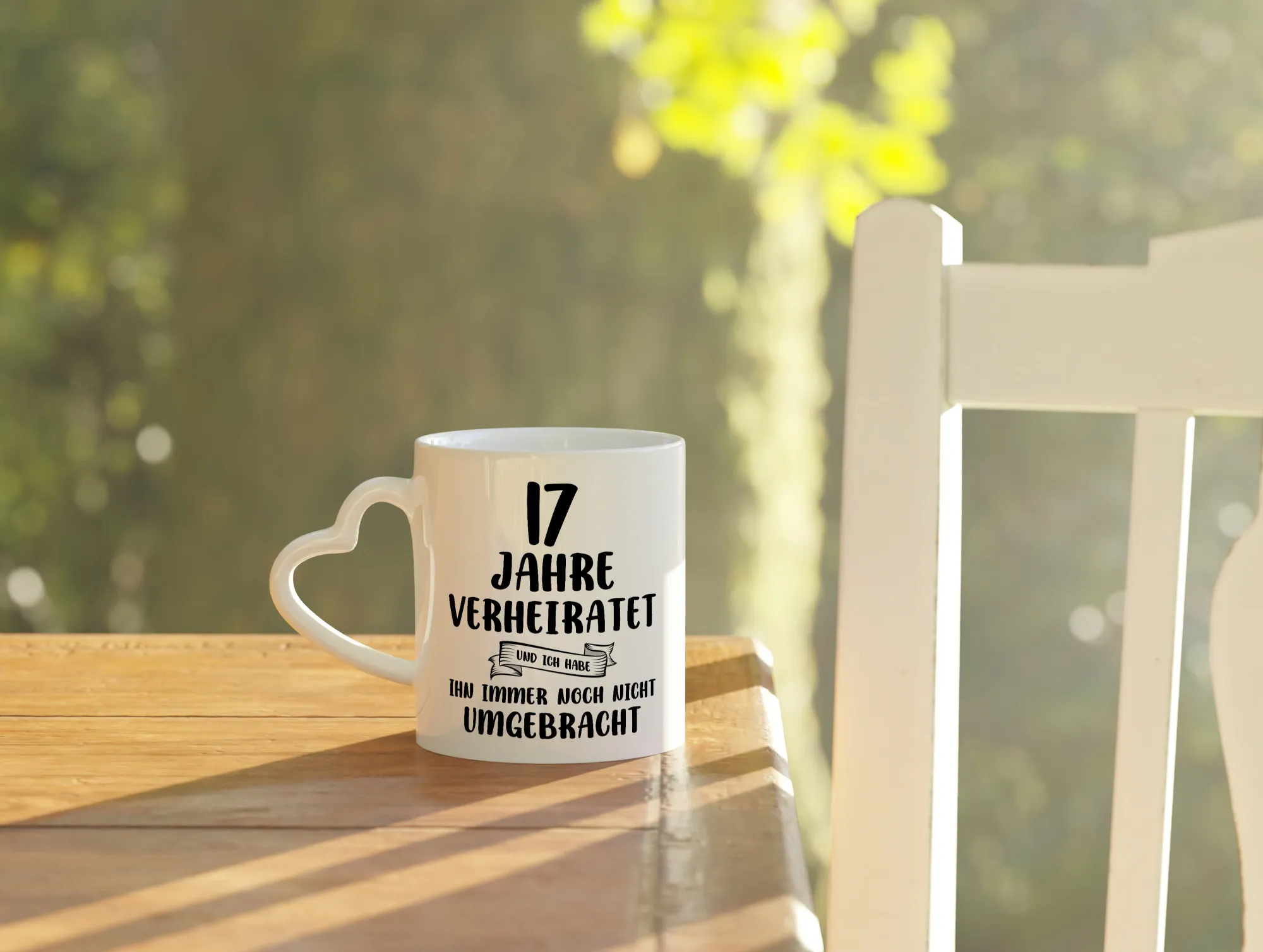 17 Jahre Verheiratet, immer noch am Leben! – Herzhenkel Tasse – Kaffeetasse / Geschenk / Familie