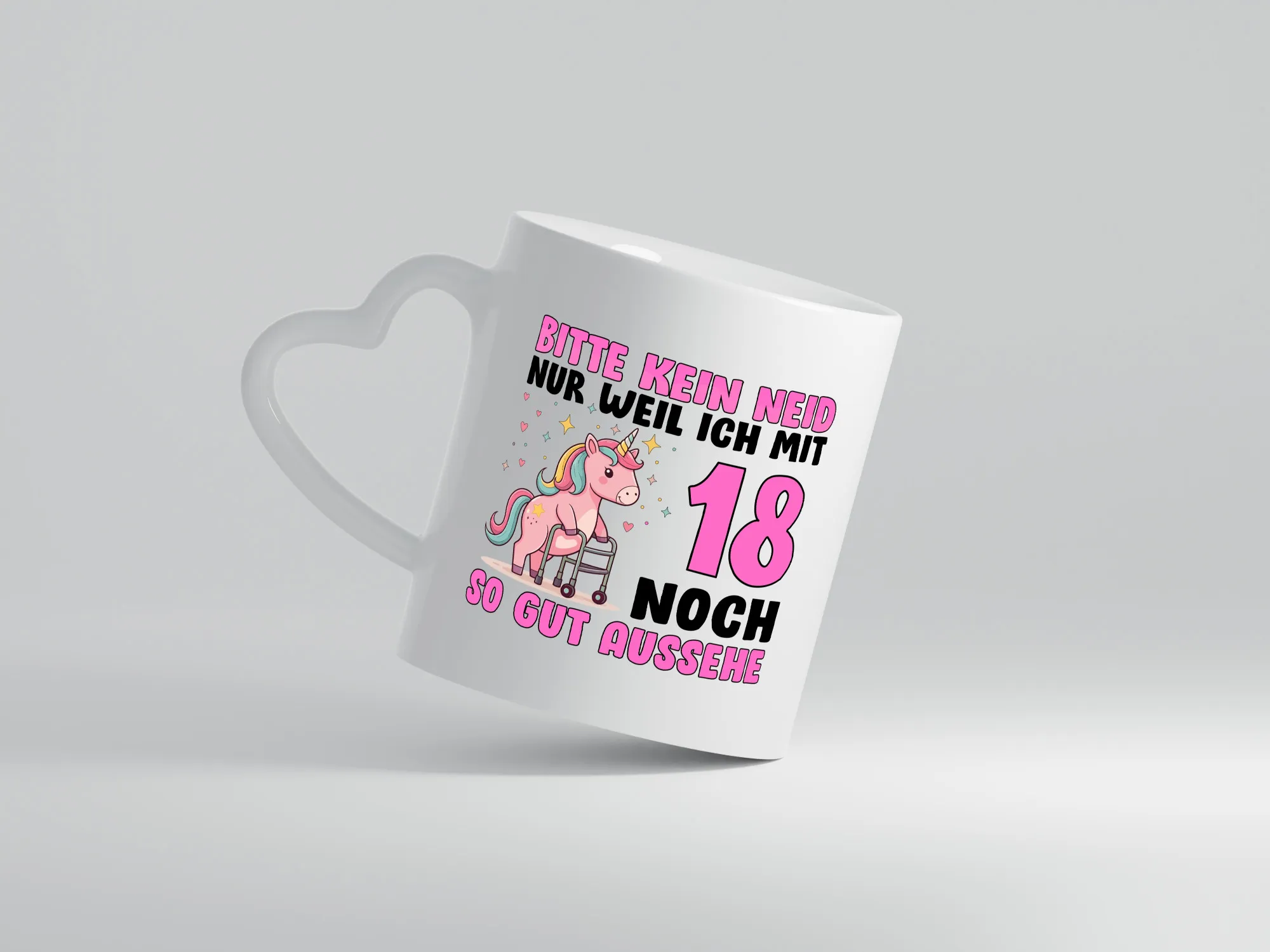 18. Geburtstag | 18 Jahre | Mit 18 noch so gut aussehen | – Herzhenkel Tasse – Kaffeetasse / Geschenk / Familie