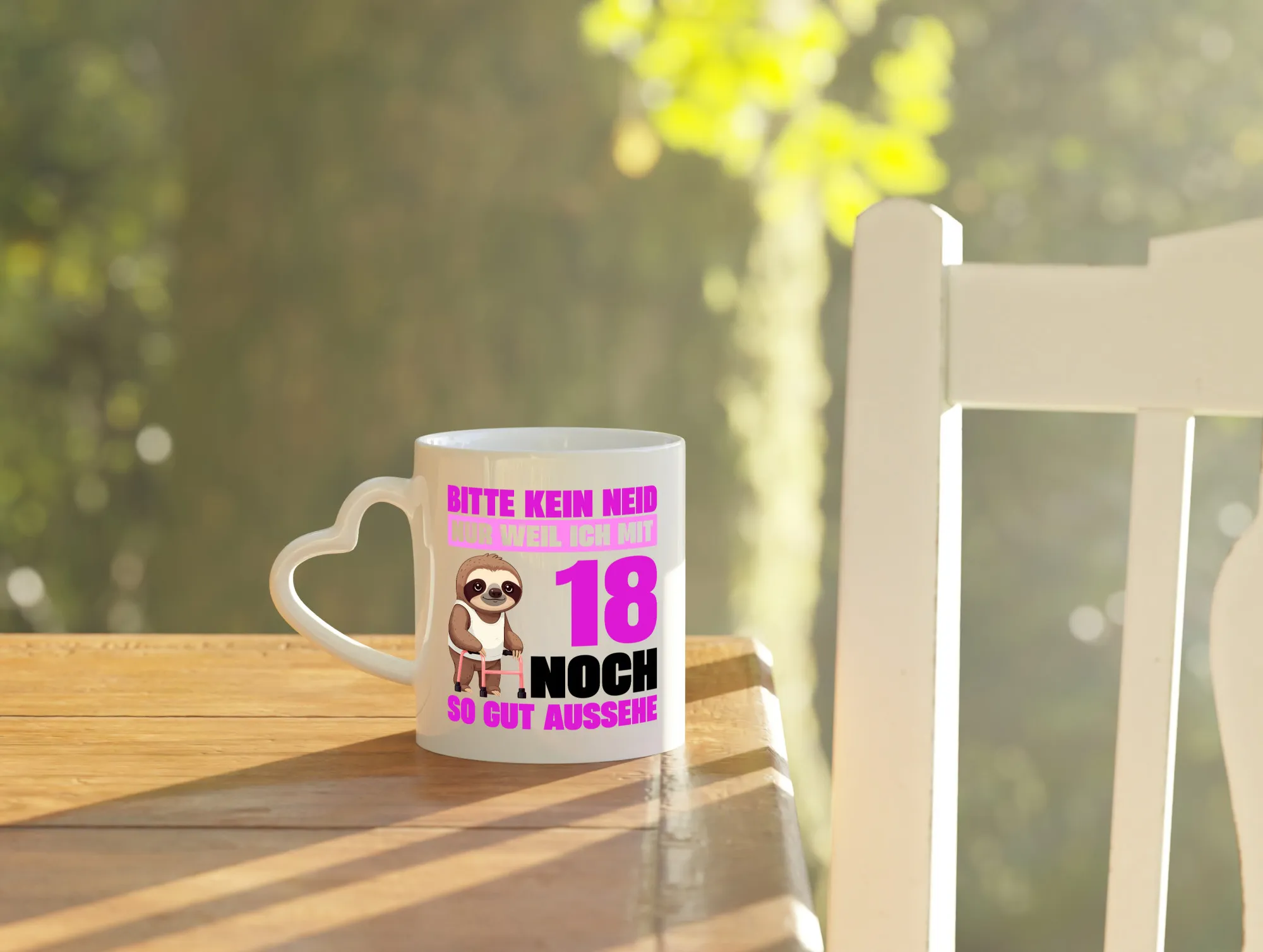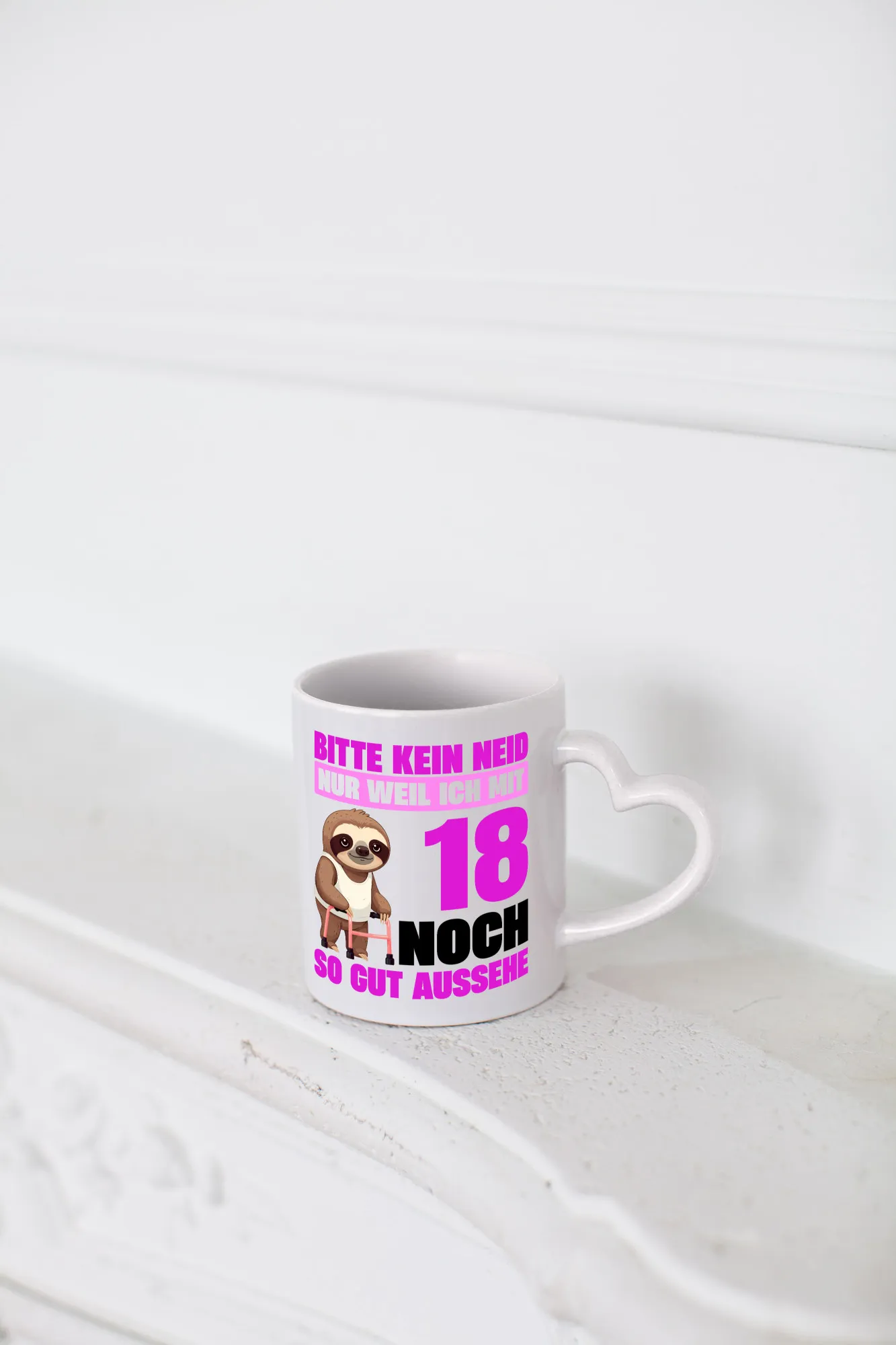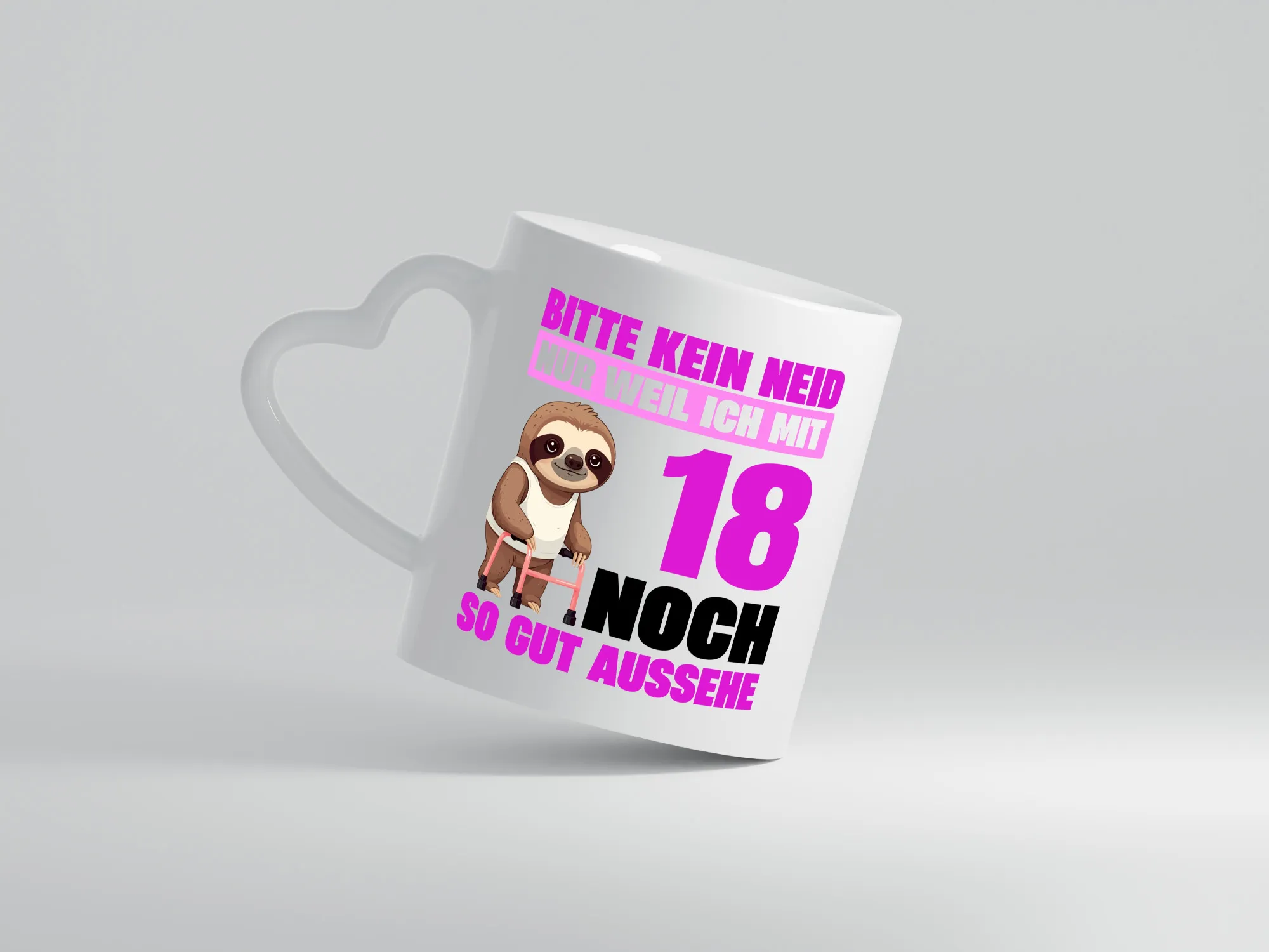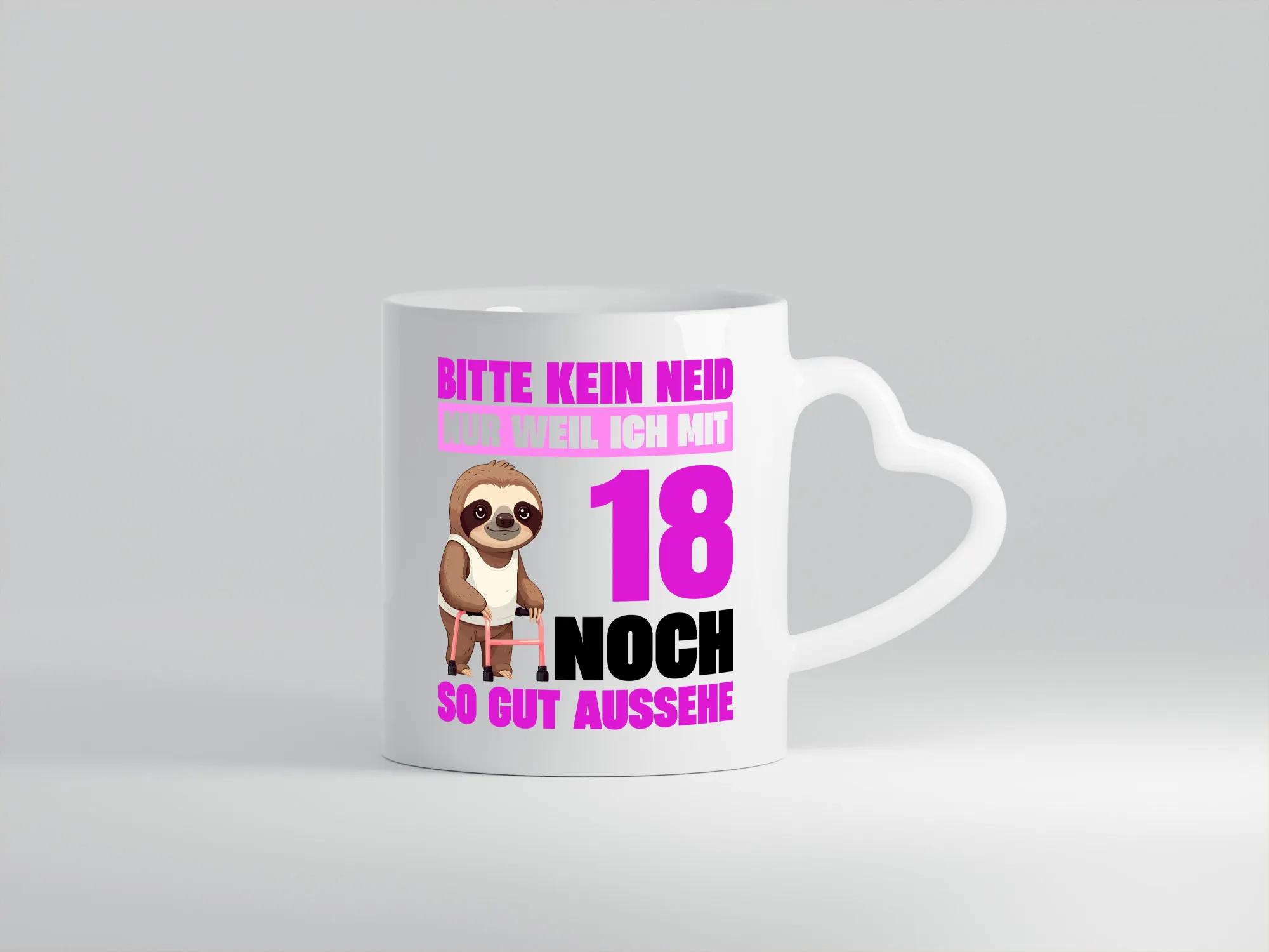 18. Geburtstag | Bitte kein neid | Faultier | 18 Jahre – Herzhenkel Tasse – Kaffeetasse / Geschenk / Familie