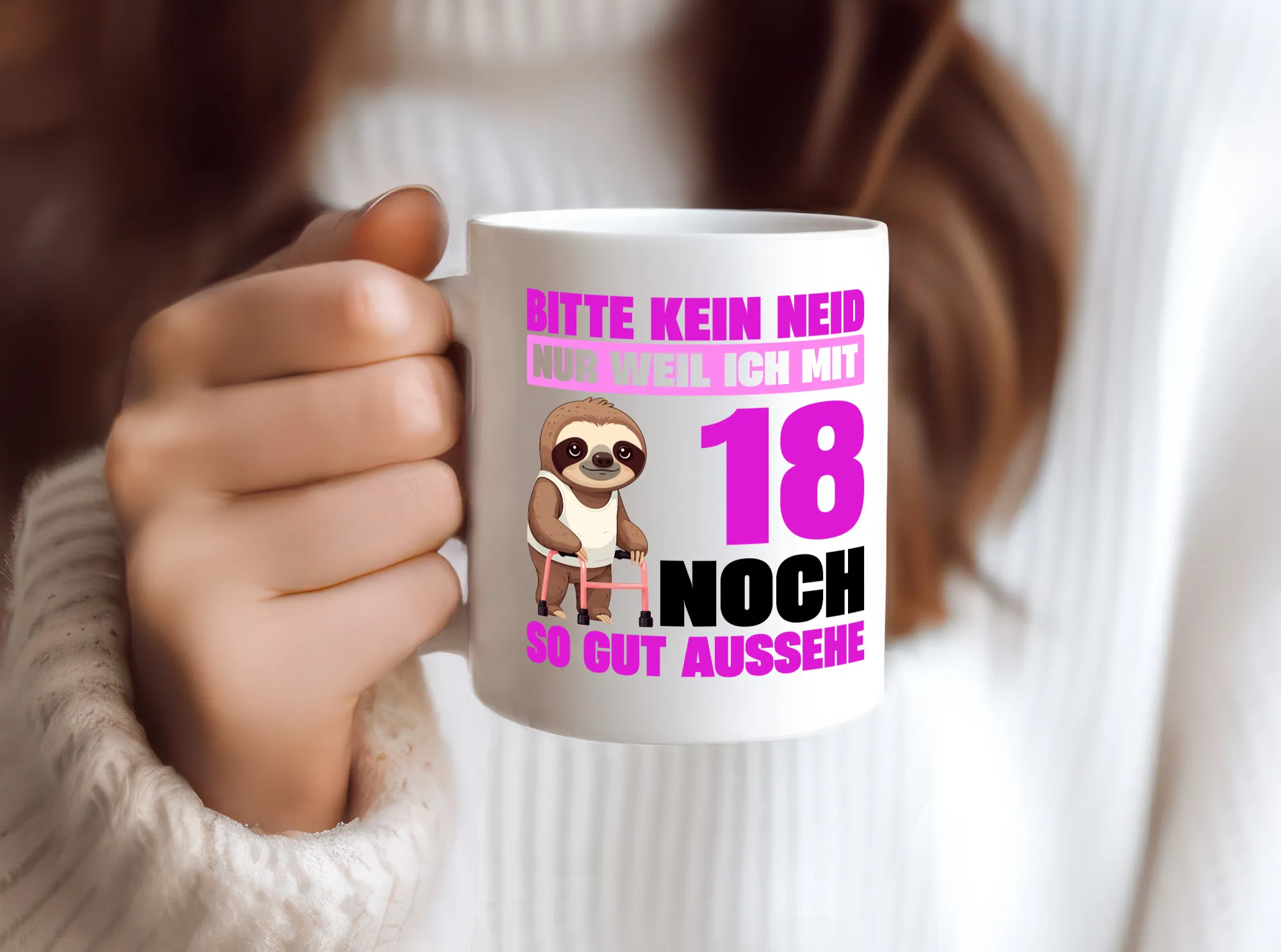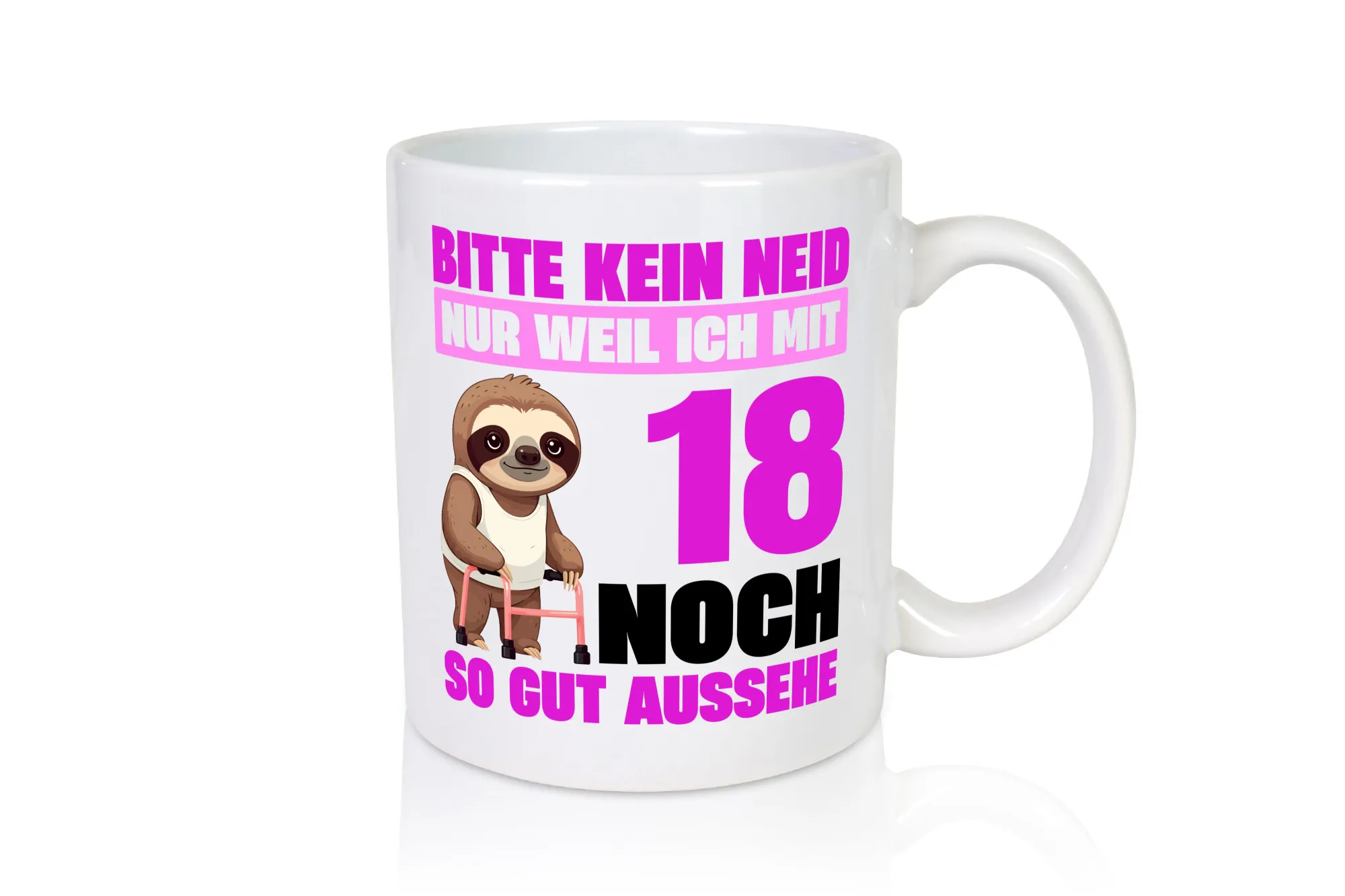 18. Geburtstag | Bitte kein neid | Faultier | 18 Jahre – Tasse Weiß – Kaffeetasse / Geschenk / Familie