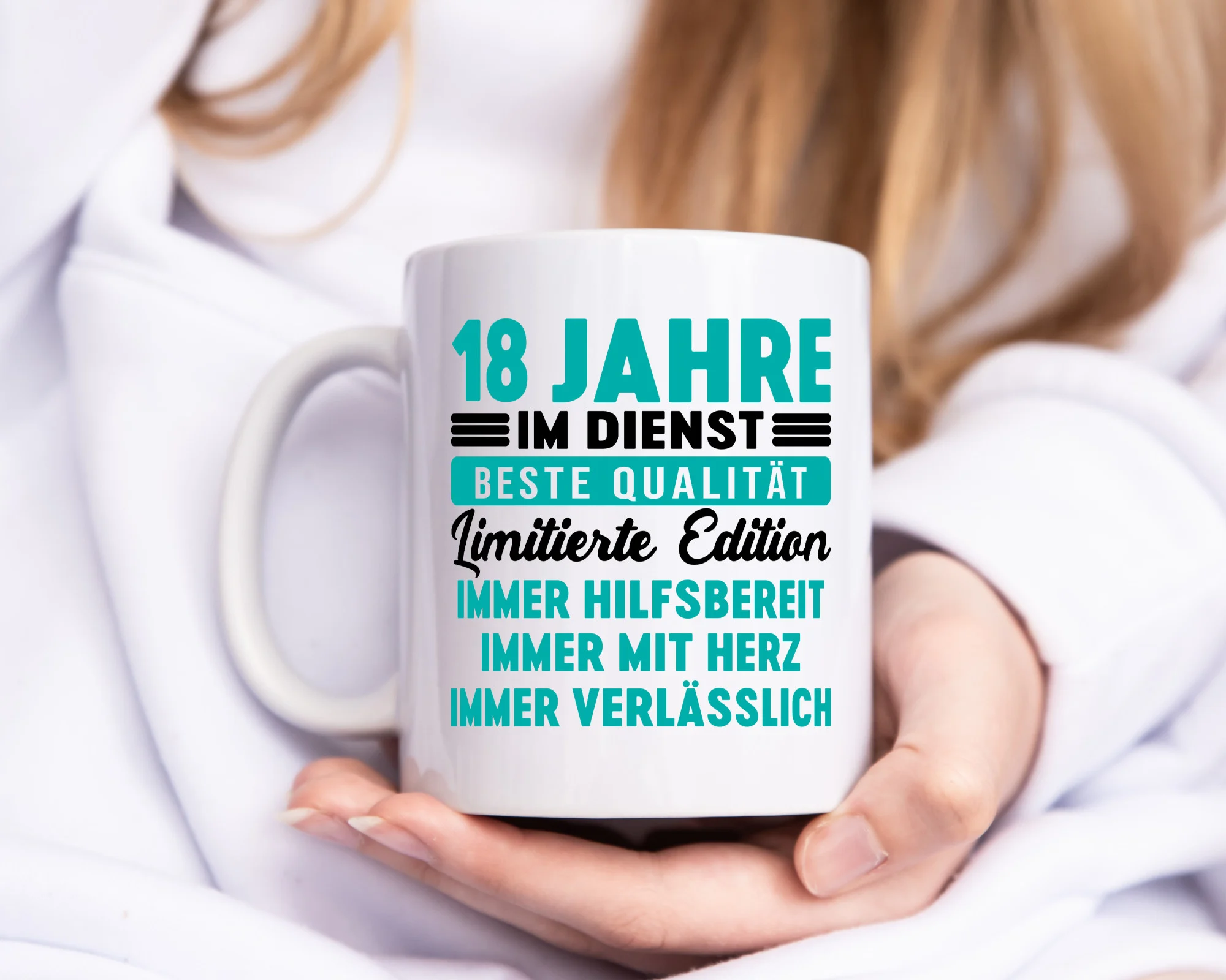 18 Jahre im Dienst | Jubiläum | Arbeit v5 – Tasse Weiß – Kaffeetasse / Geschenk / Familie